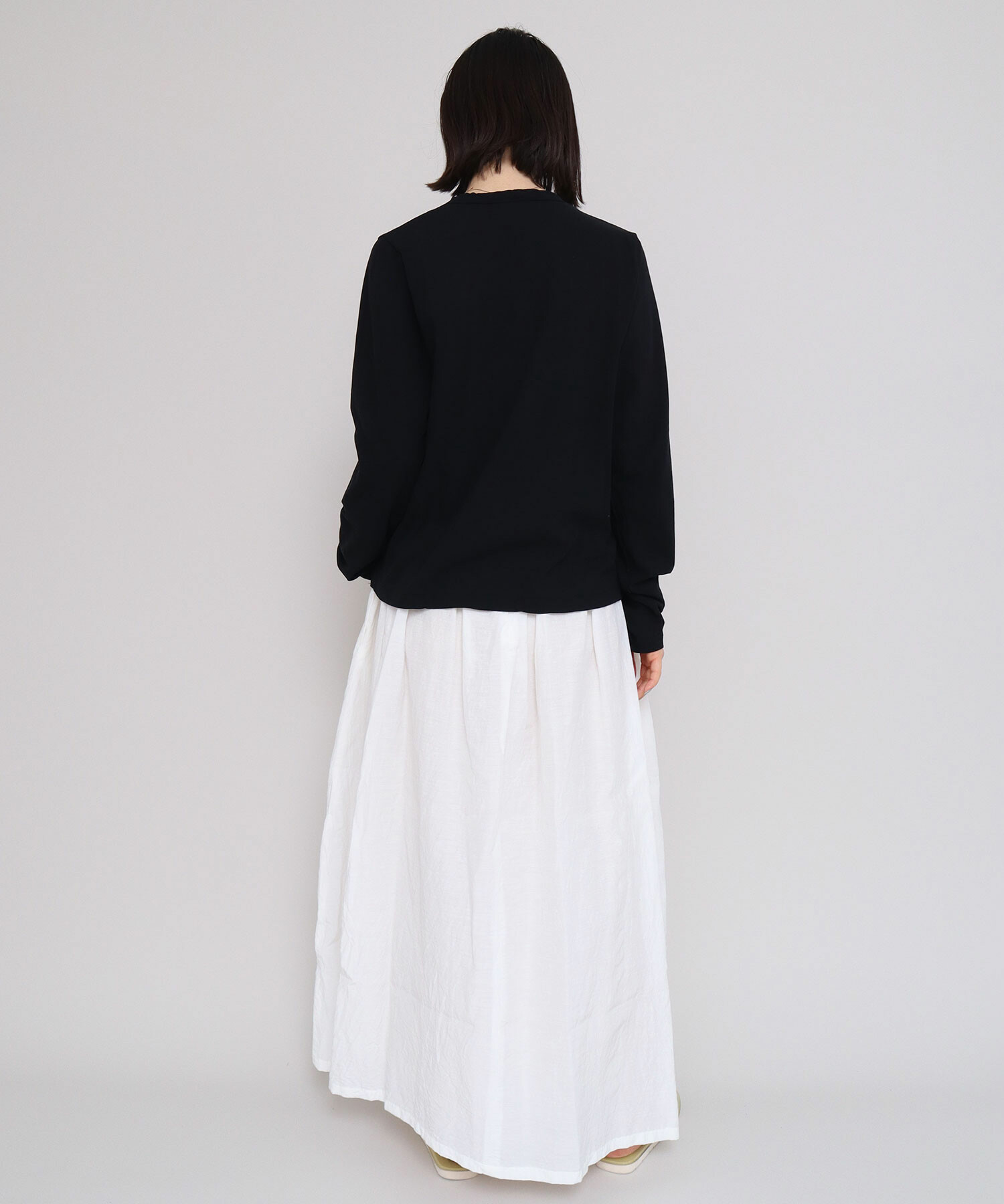 ・この製品は素材の組成上糸引きや、ひきつれがおこりやすくなっています。時計、バッグなど突起物の引っかけや、着用着脱時にはご注意下さい。この製品は独特の風合いを出す為に製品洗いをしています。一枚一枚の色味、風合い、サイズ等も微妙に違いますが、他の製品では味わえない雰囲気をお楽しみ下さい。