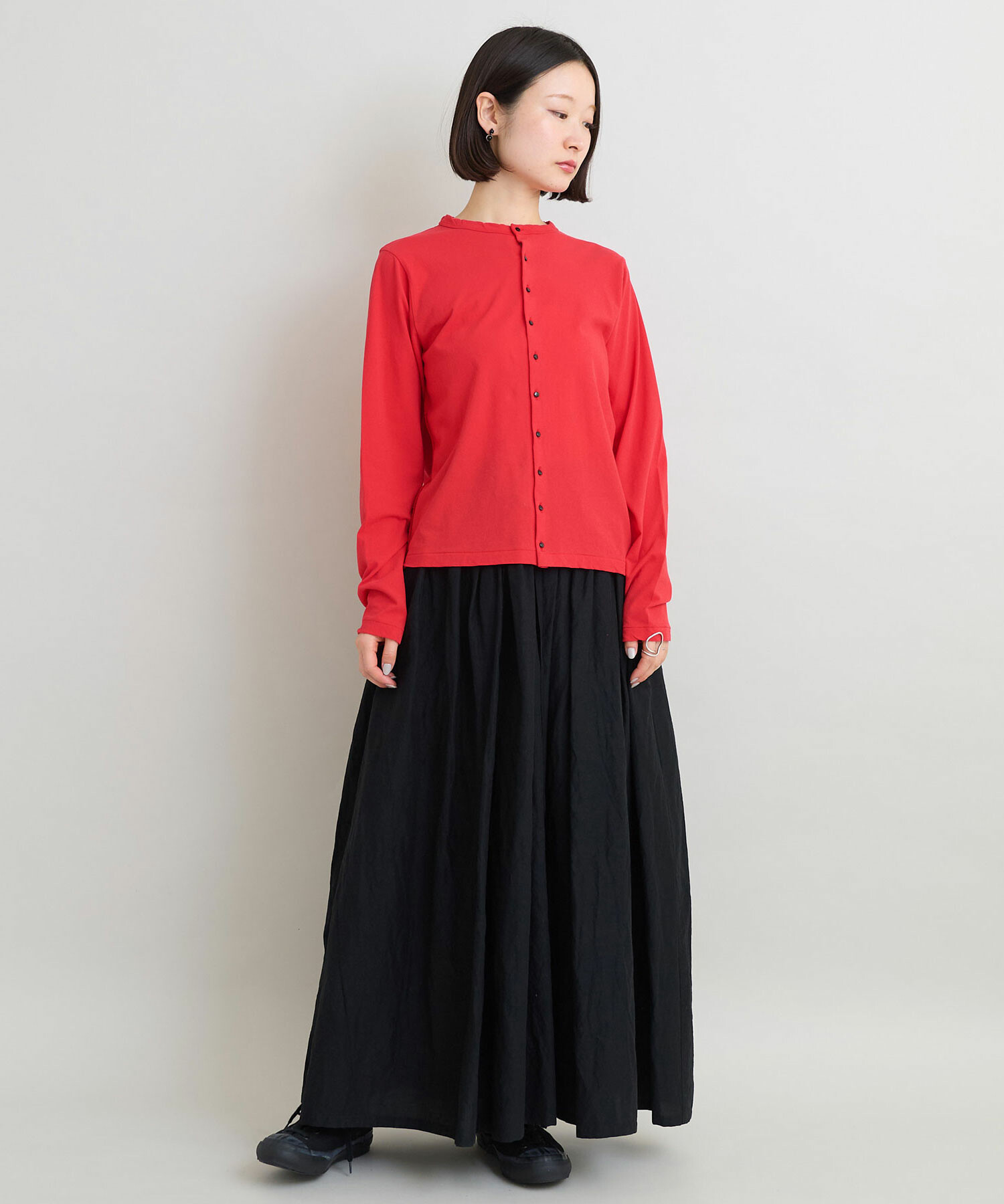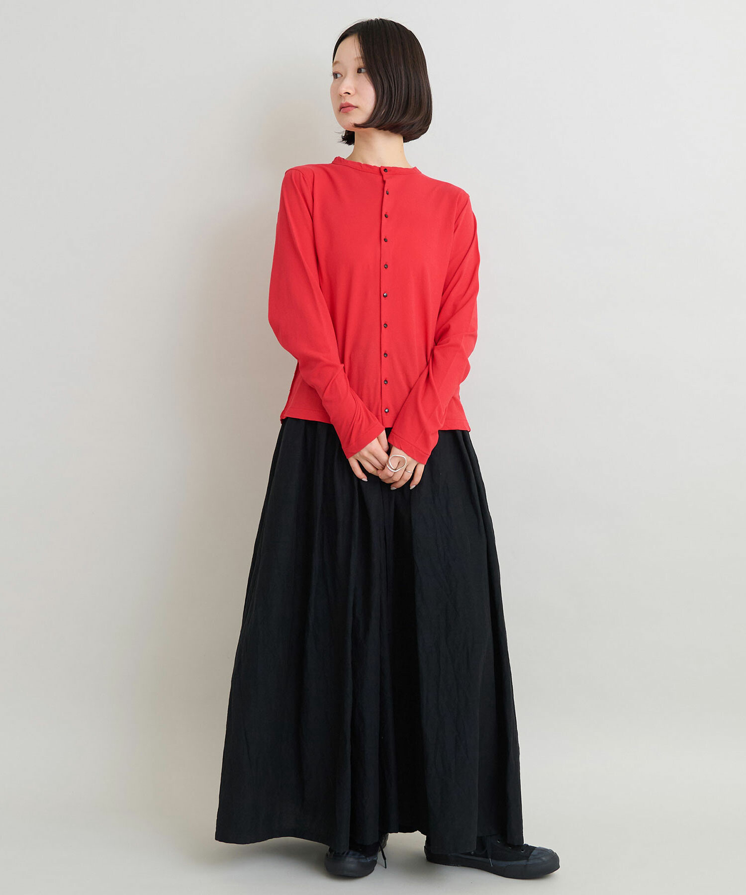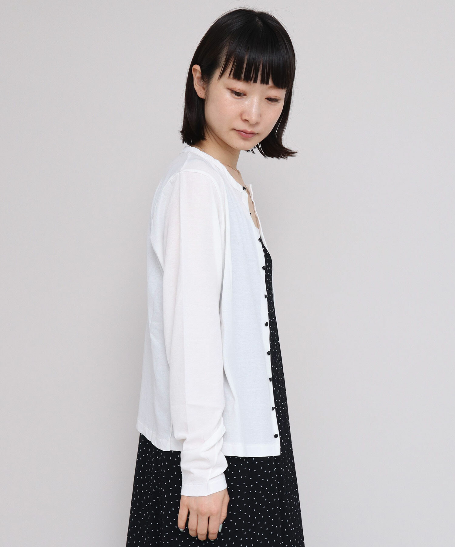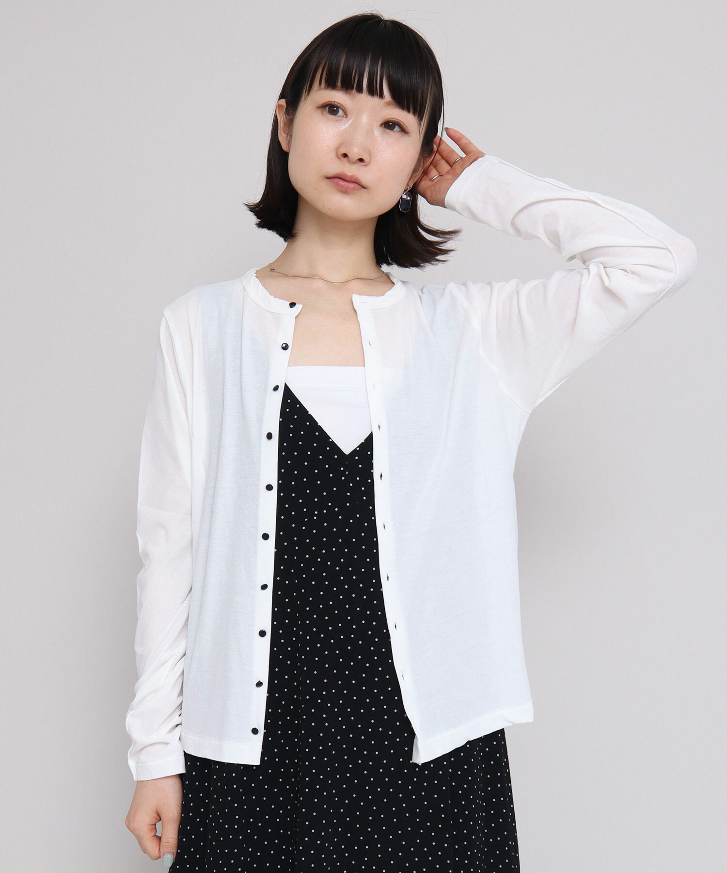 吸水性の良い素材なので、汗ばむ季節にぴったりのカーディガン。