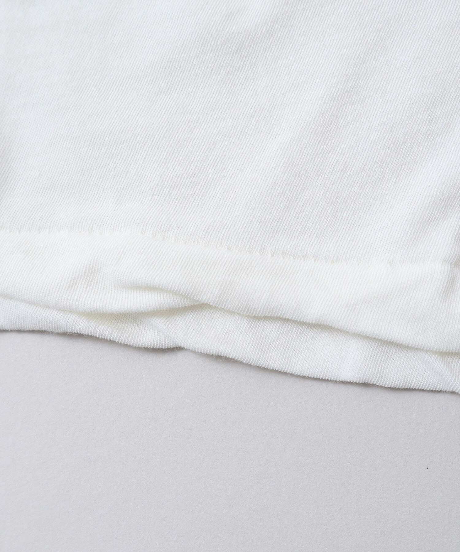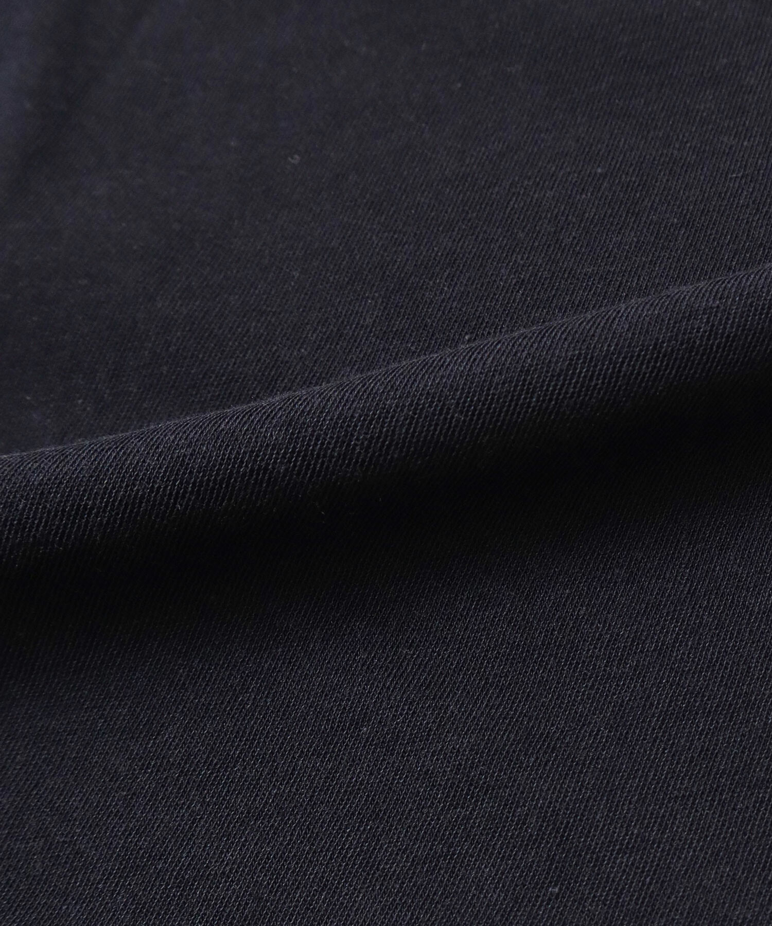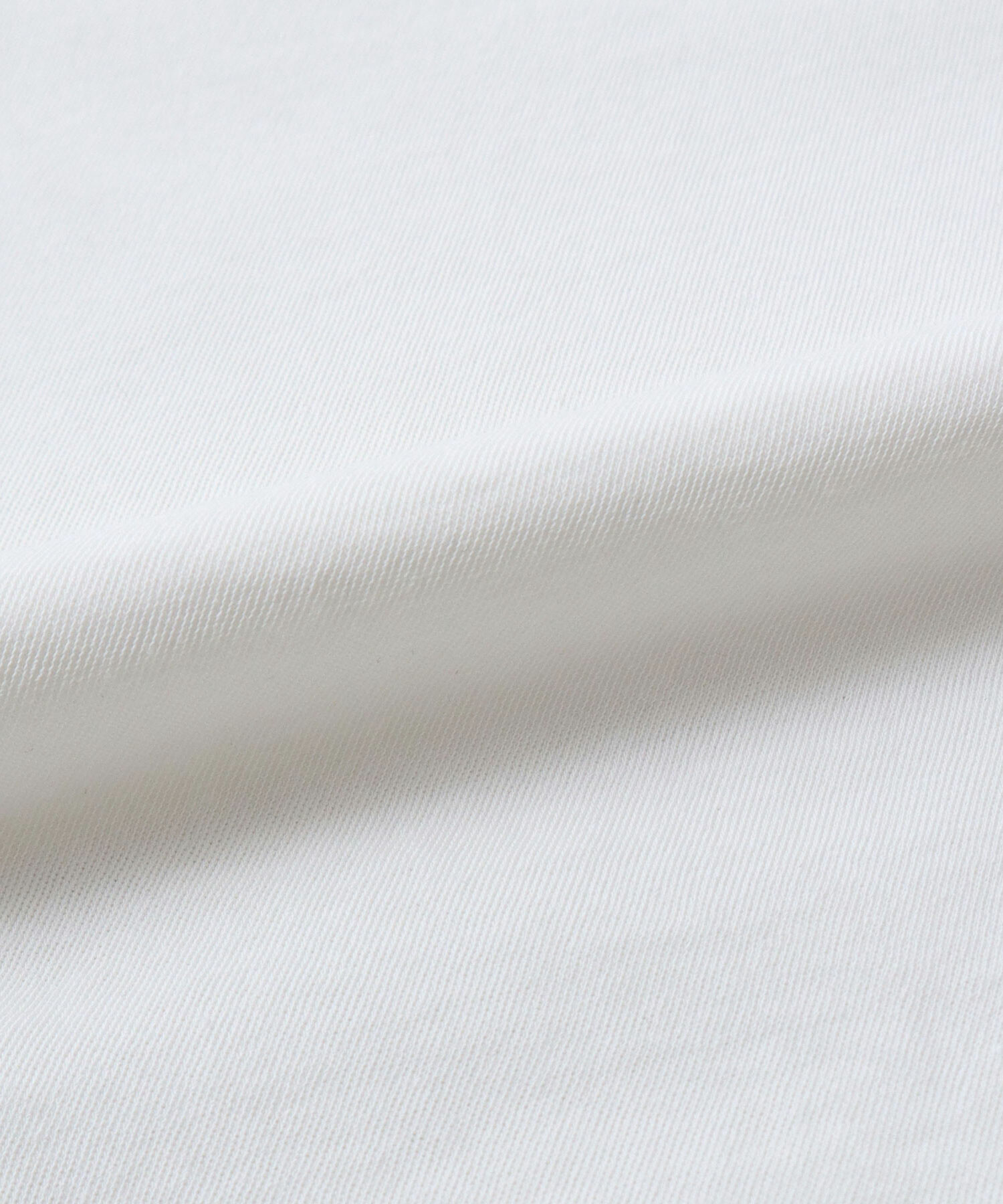 バーナーで表面を焼き、毛羽を取り除いた綿100%の糸を丁寧に編みたてたGV天竺を使用。
