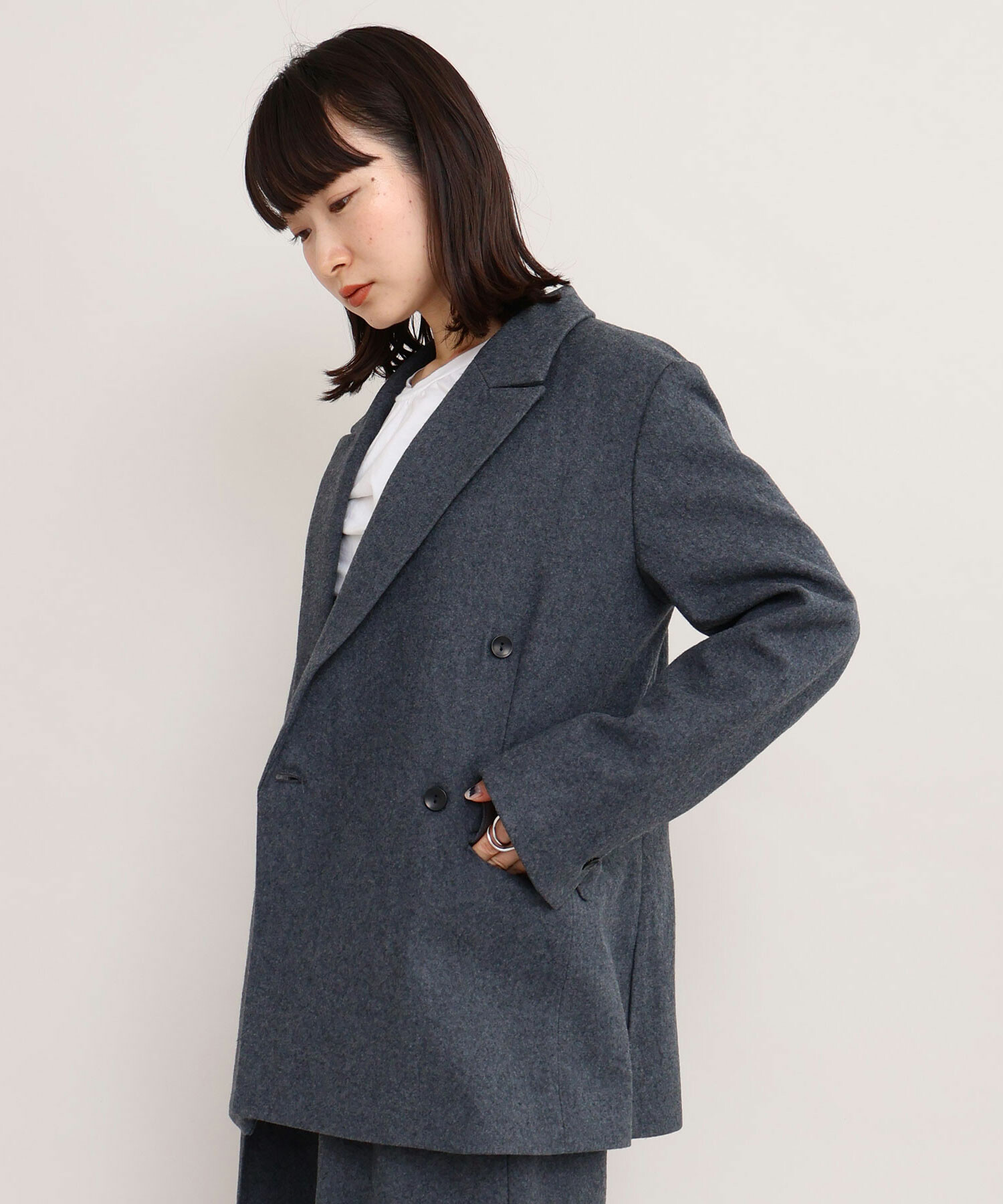 セットアップで合わせた時に、よりハンサムな印象になるよう意識してデザインしました。