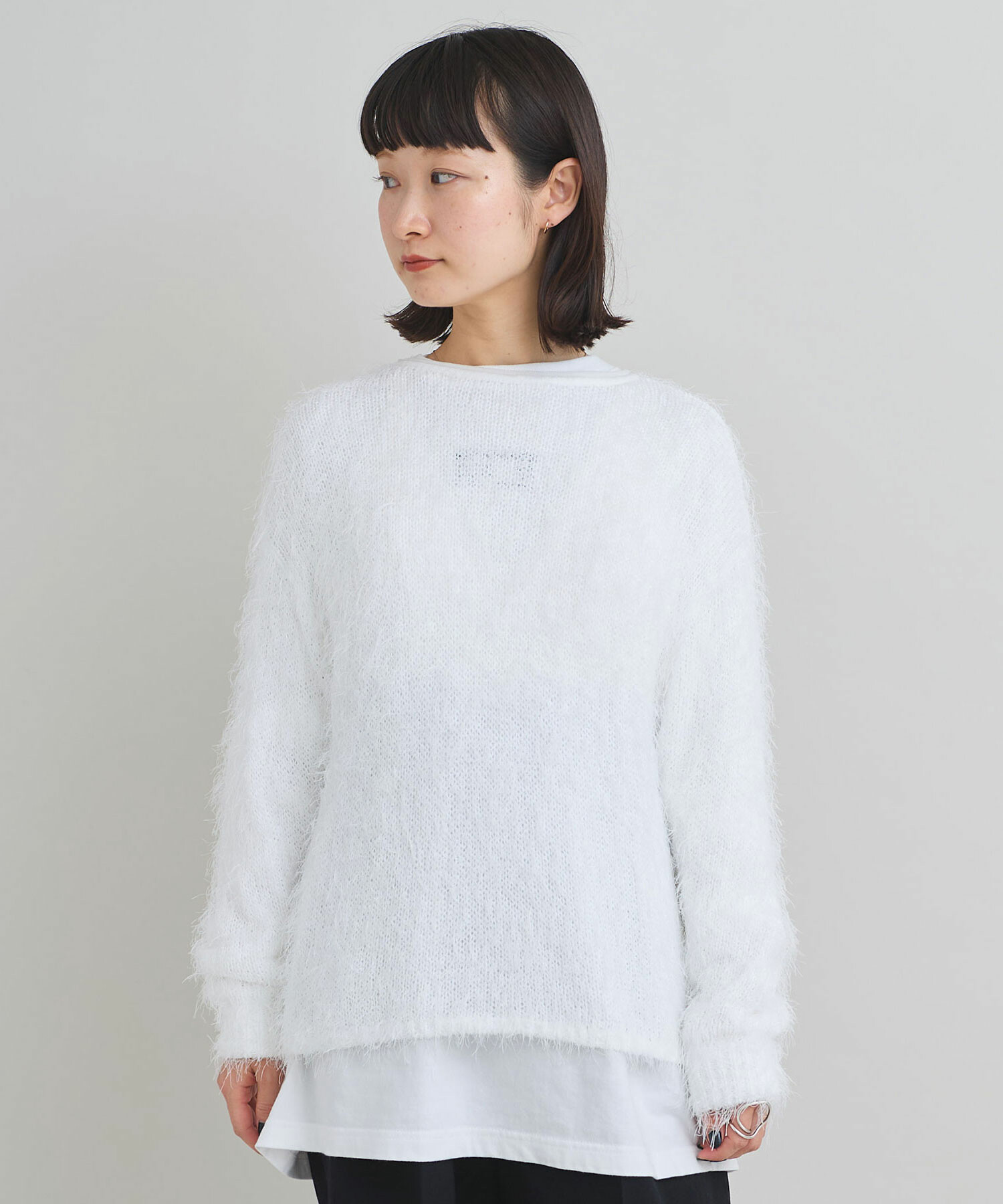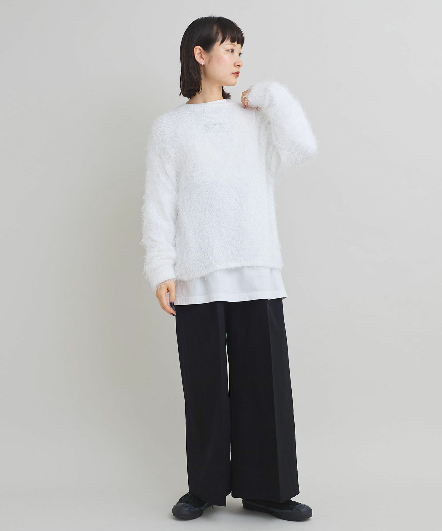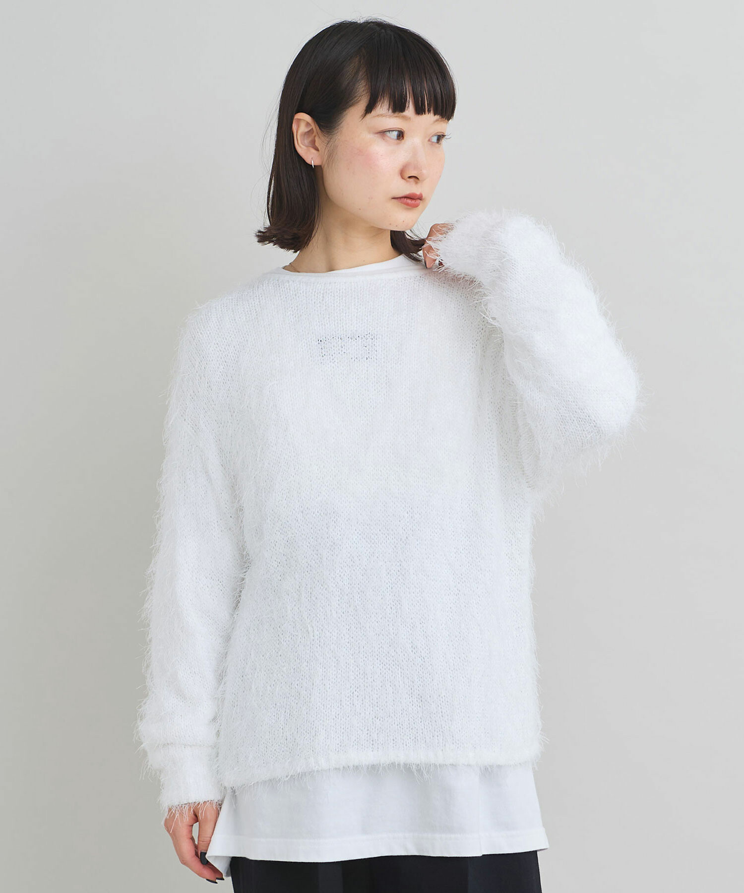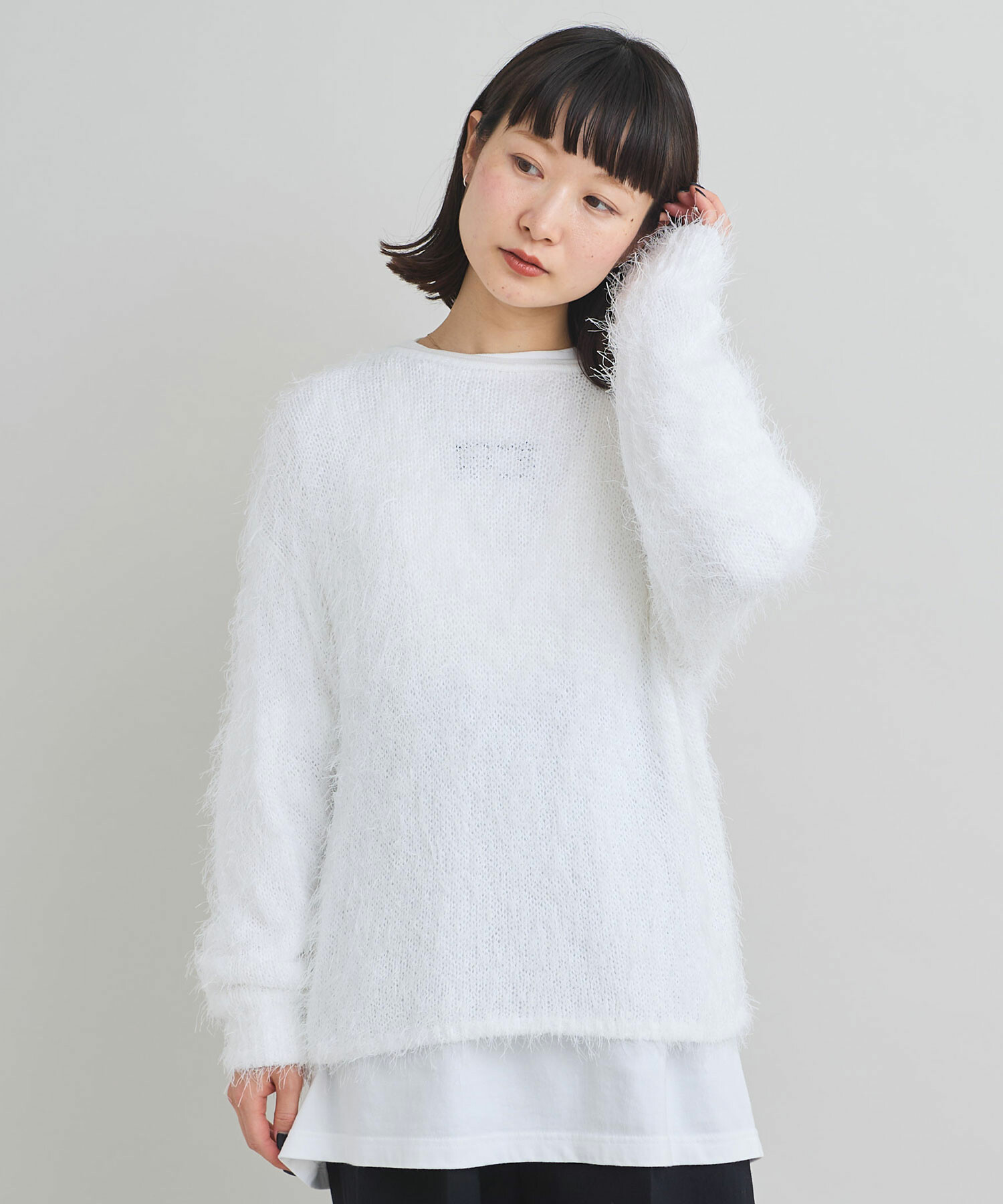 特徴的な糸の存在感を活かし、シンプルなデザインの長袖プルオーバーに仕上げました。