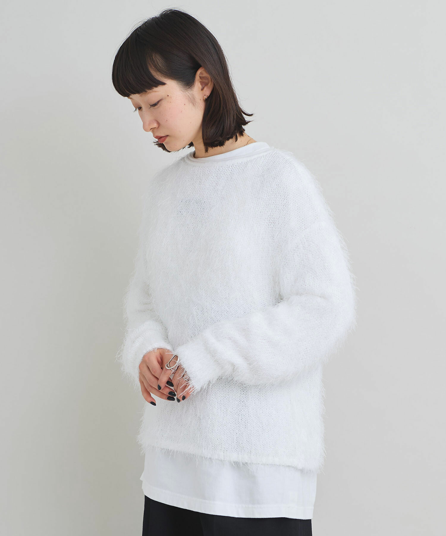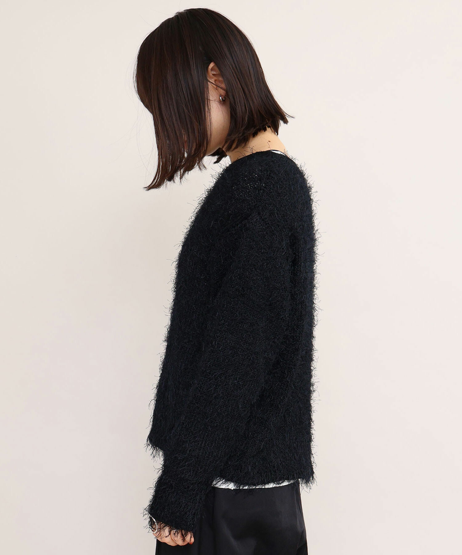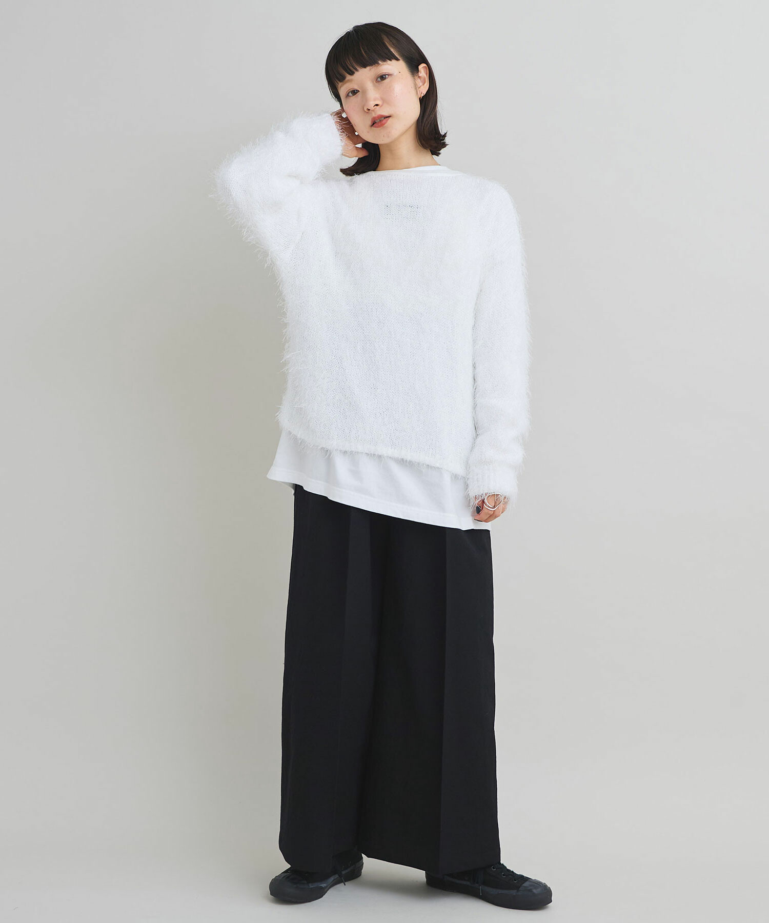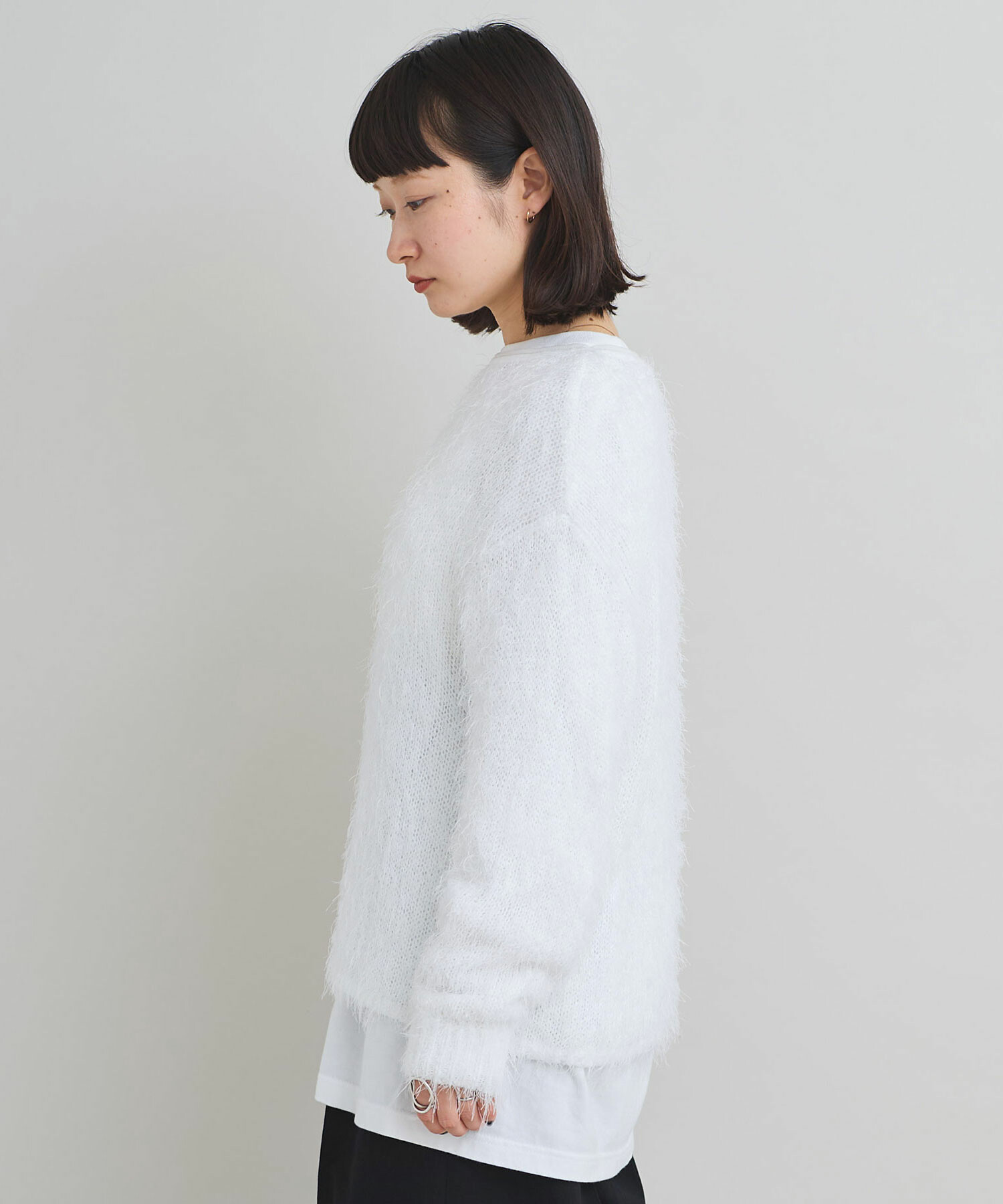 特徴的な糸の存在感を活かし、シンプルなデザインの長袖プルオーバーに仕上げました。