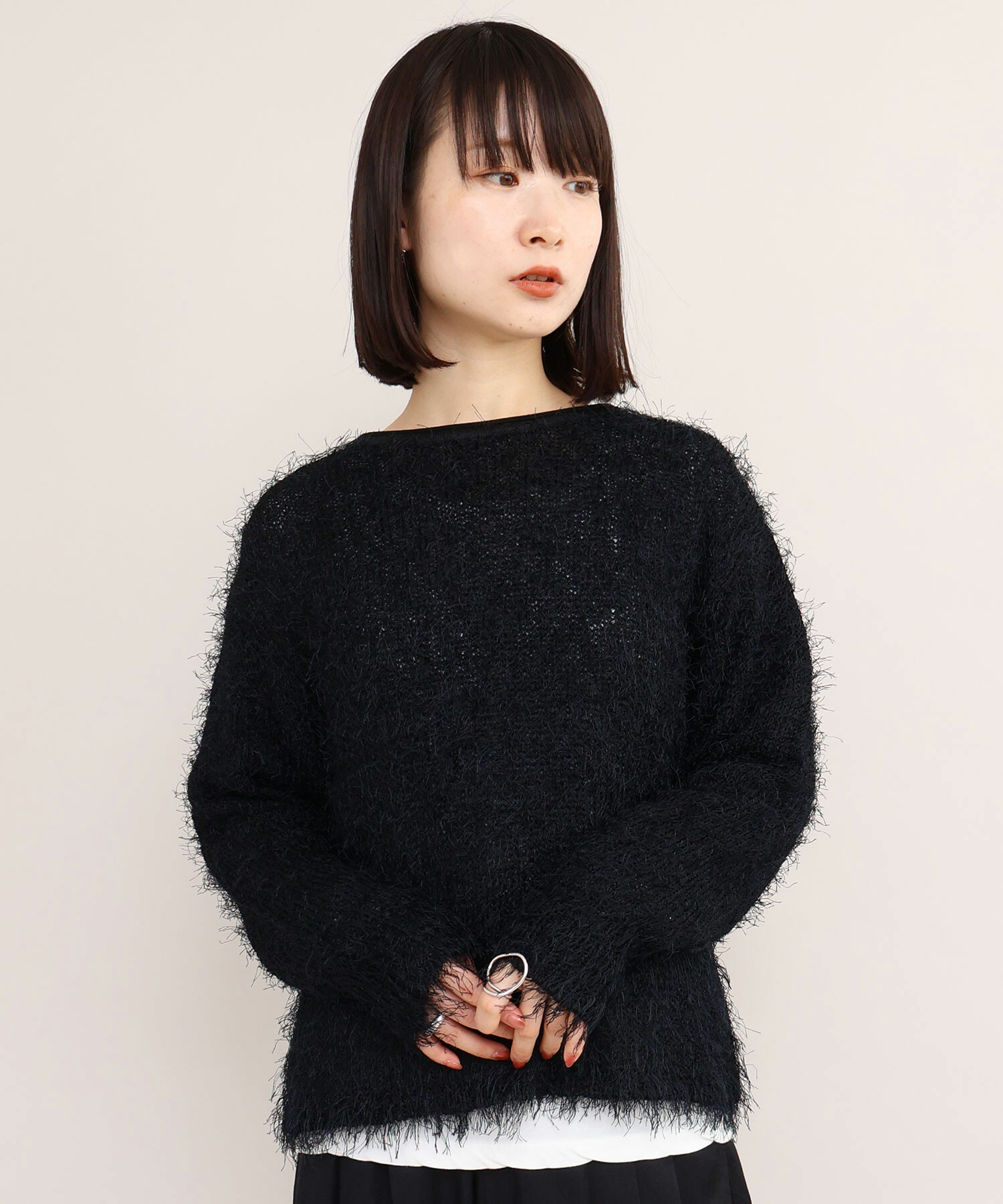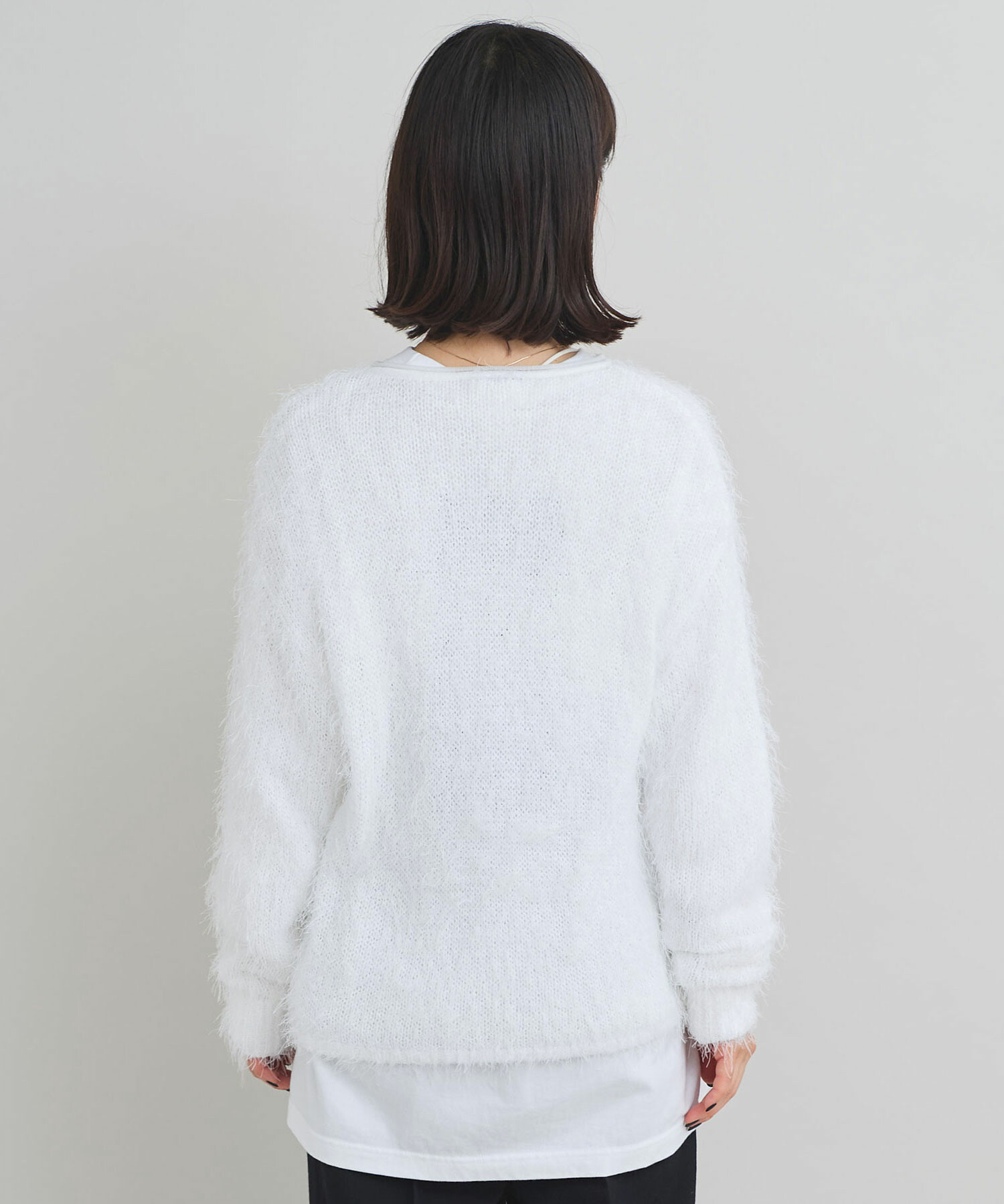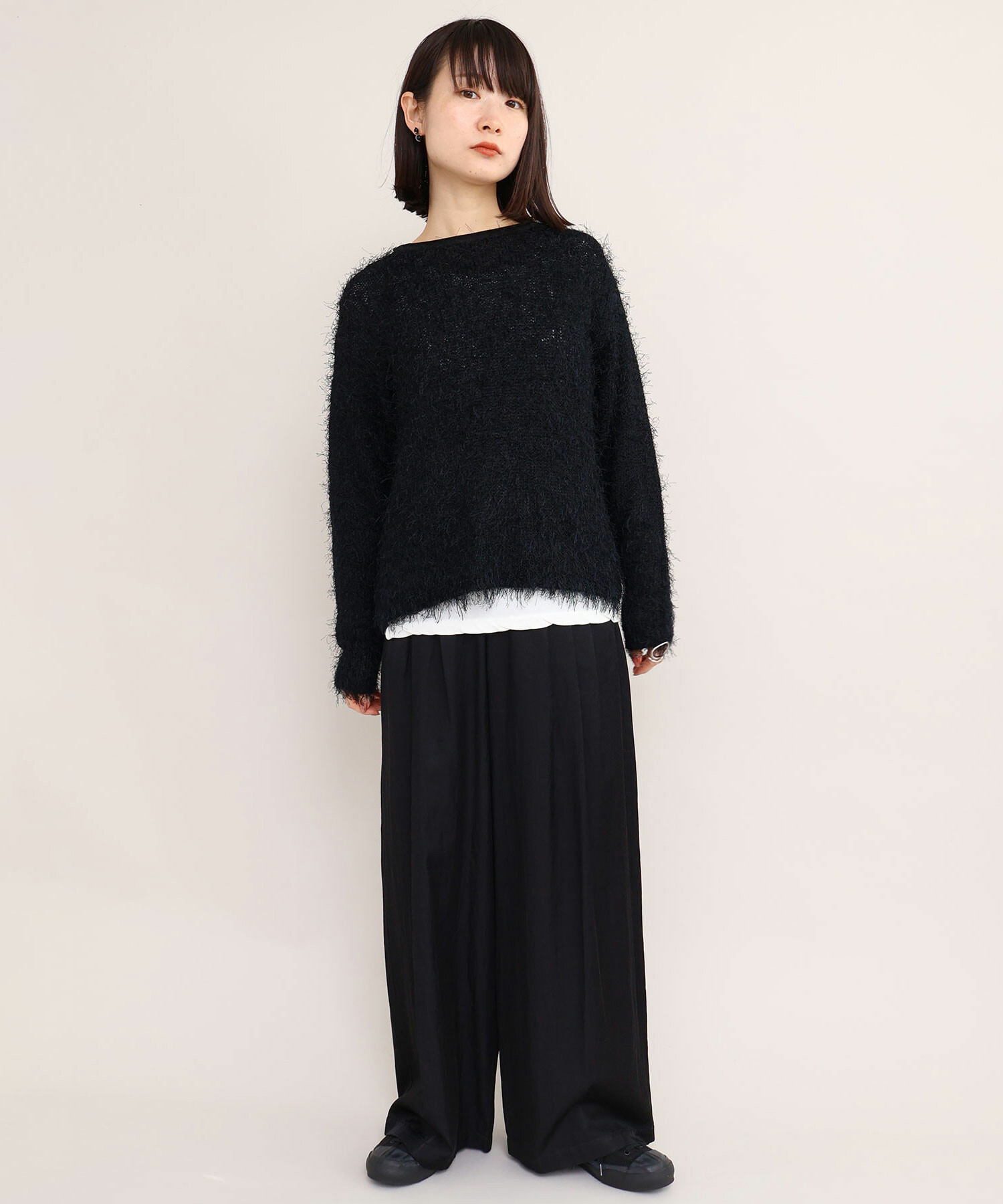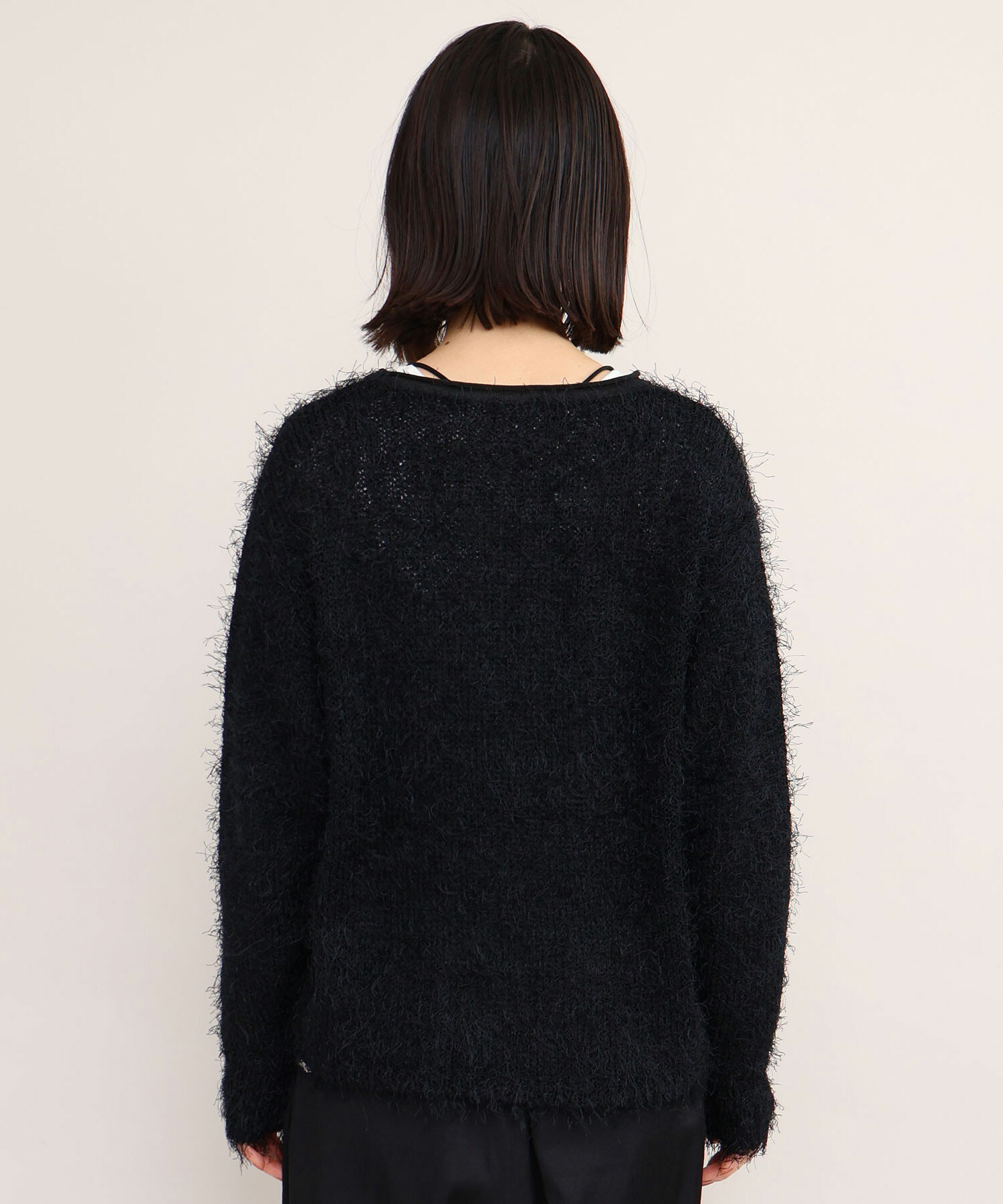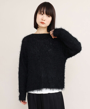 プルオーバーはローゲージニットらしく、ニット目を大きく編み上げ、ルーズな編み地で仕上げています。