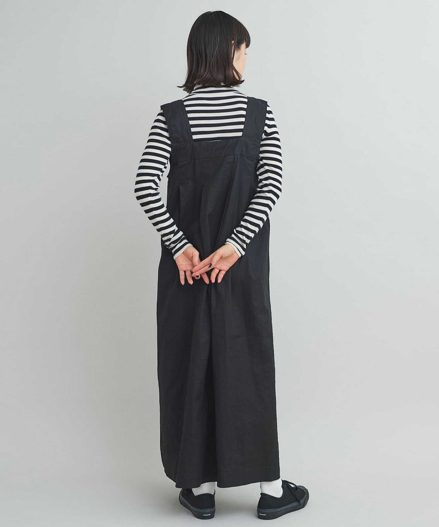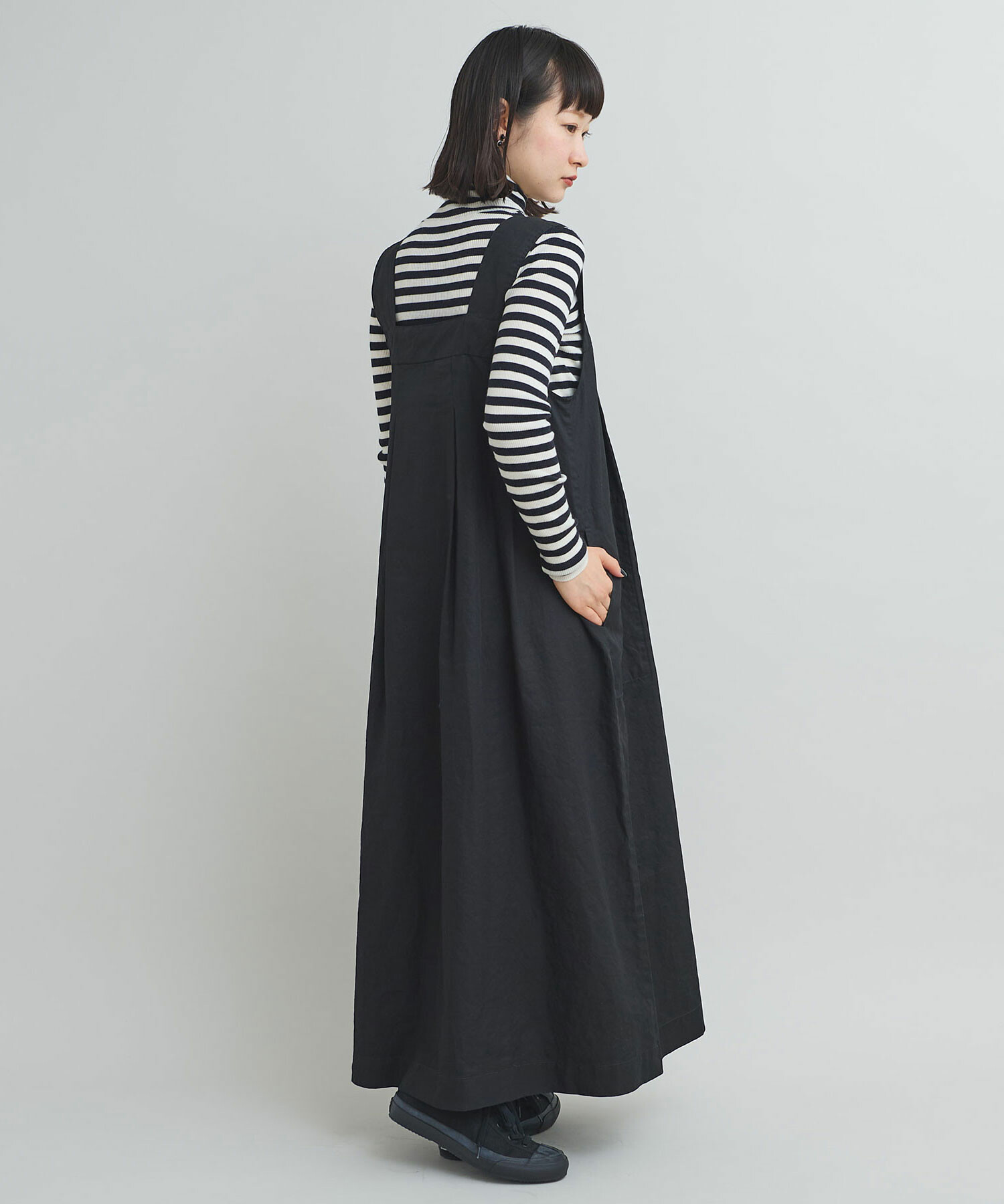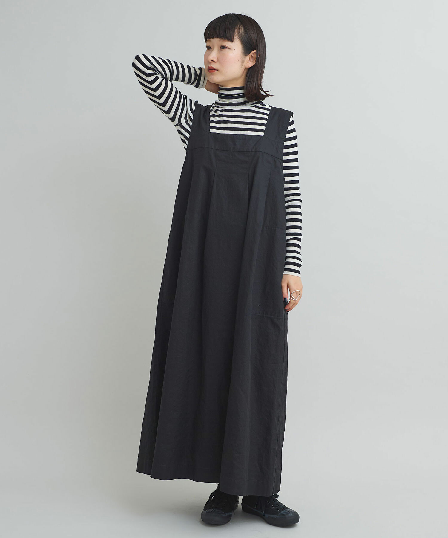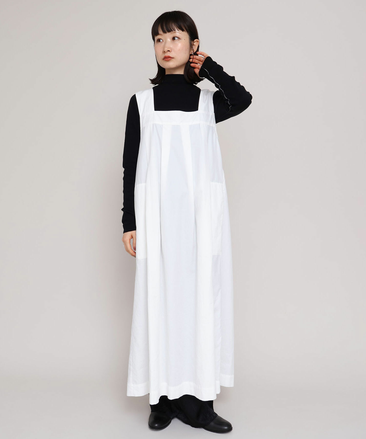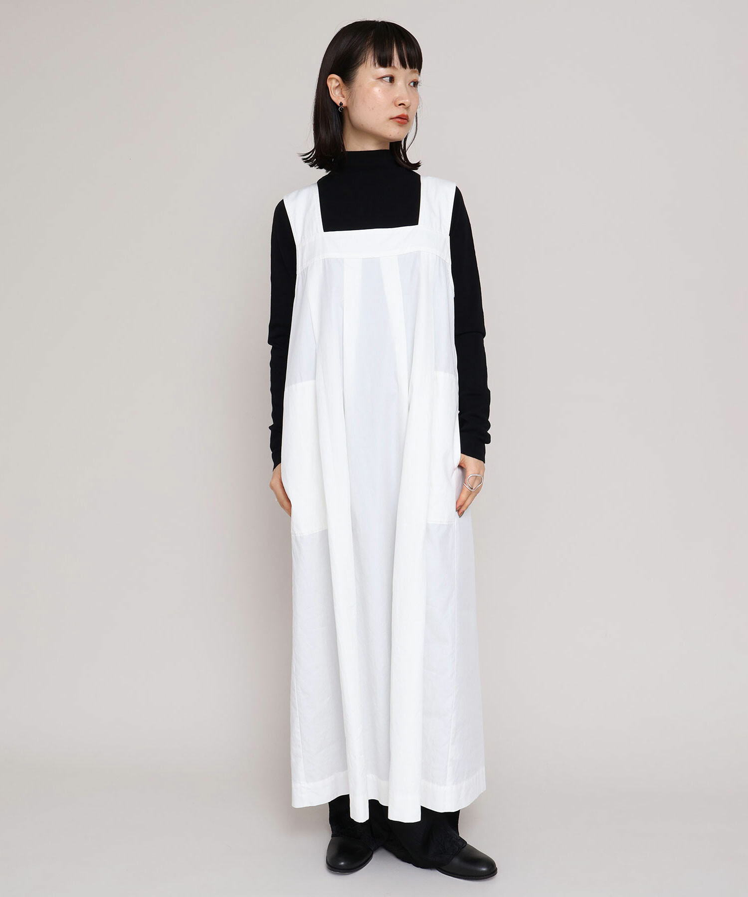 重ね着しやすい万能なノースリデザインワンピース。