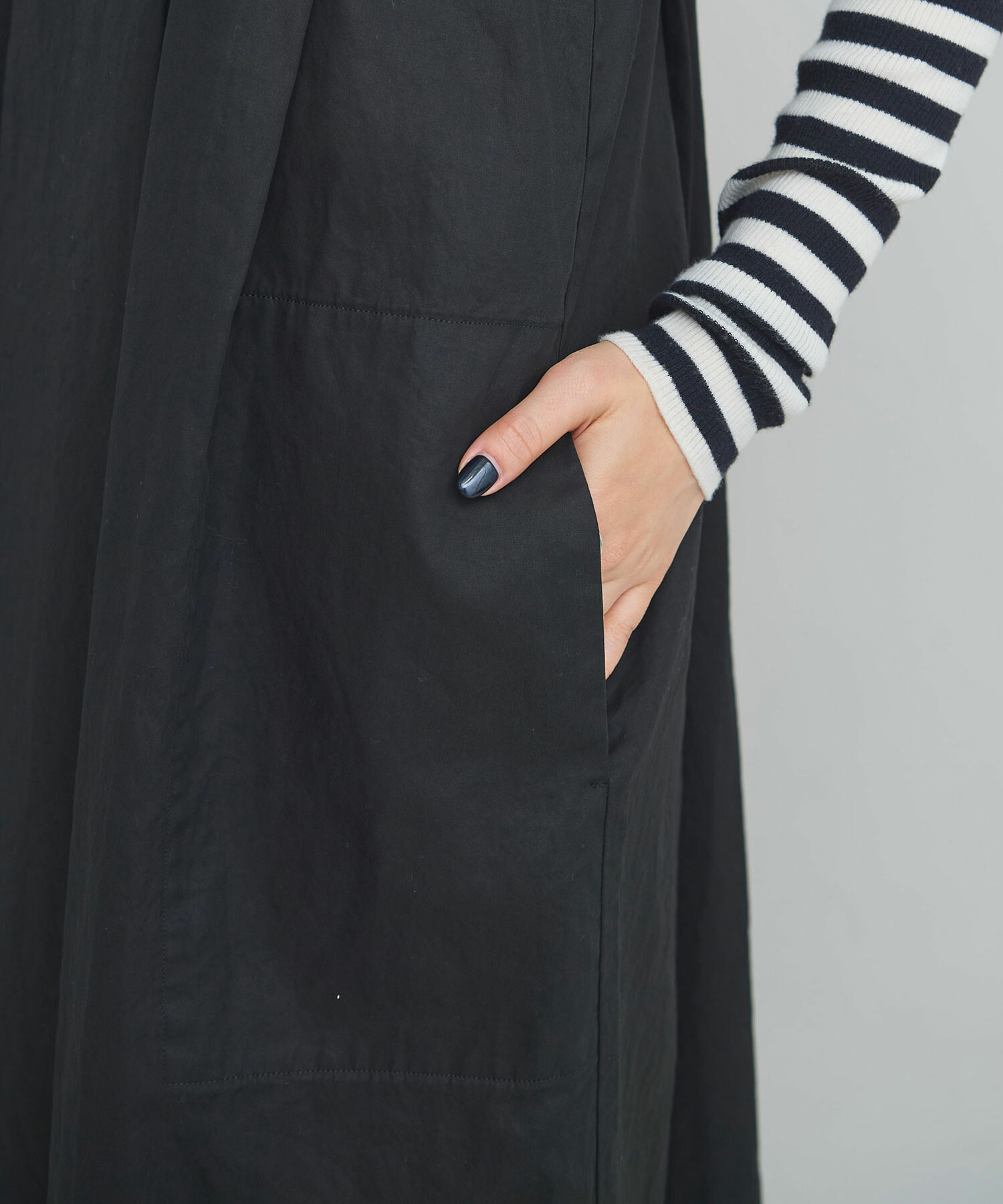 しっかりとした生地なのでポケットに物を入れてもシルエットを崩すことなく、機能的に使っていただけます。