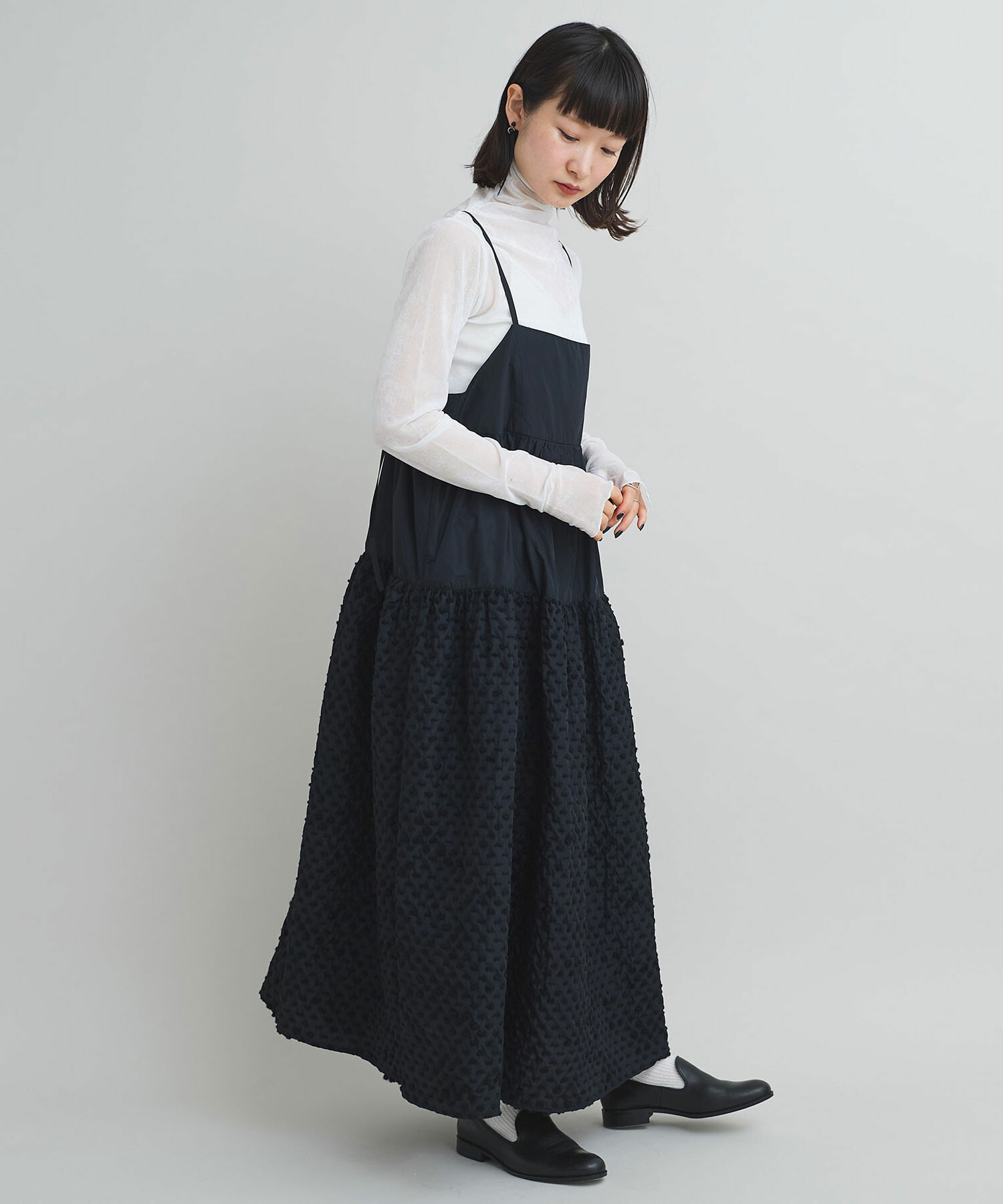 特別感あるキャミワンピースは合わせるインナー次第でデイリーにもフォーマルにも対応できるアイテム。