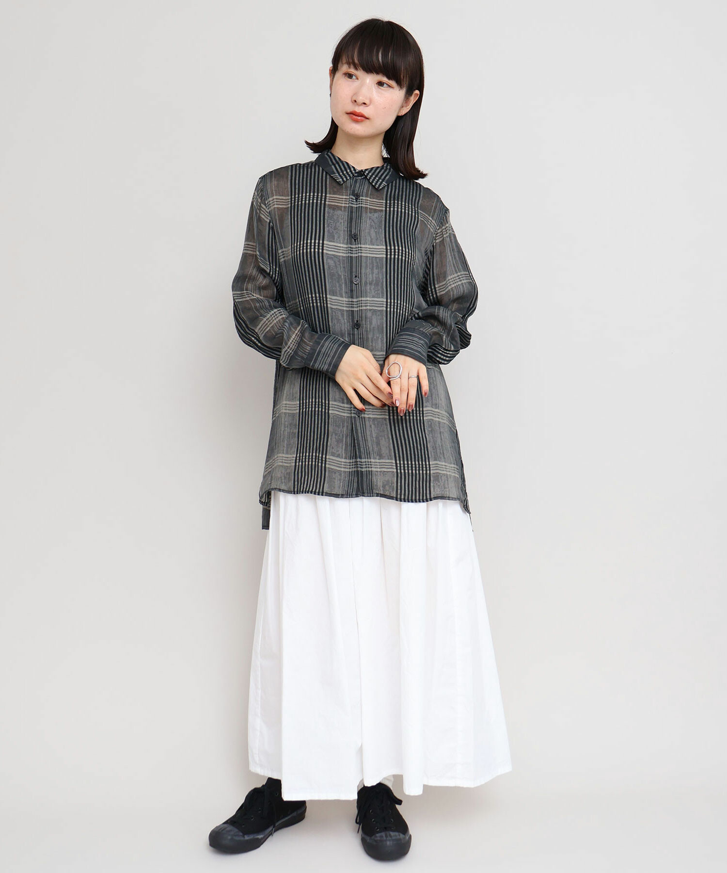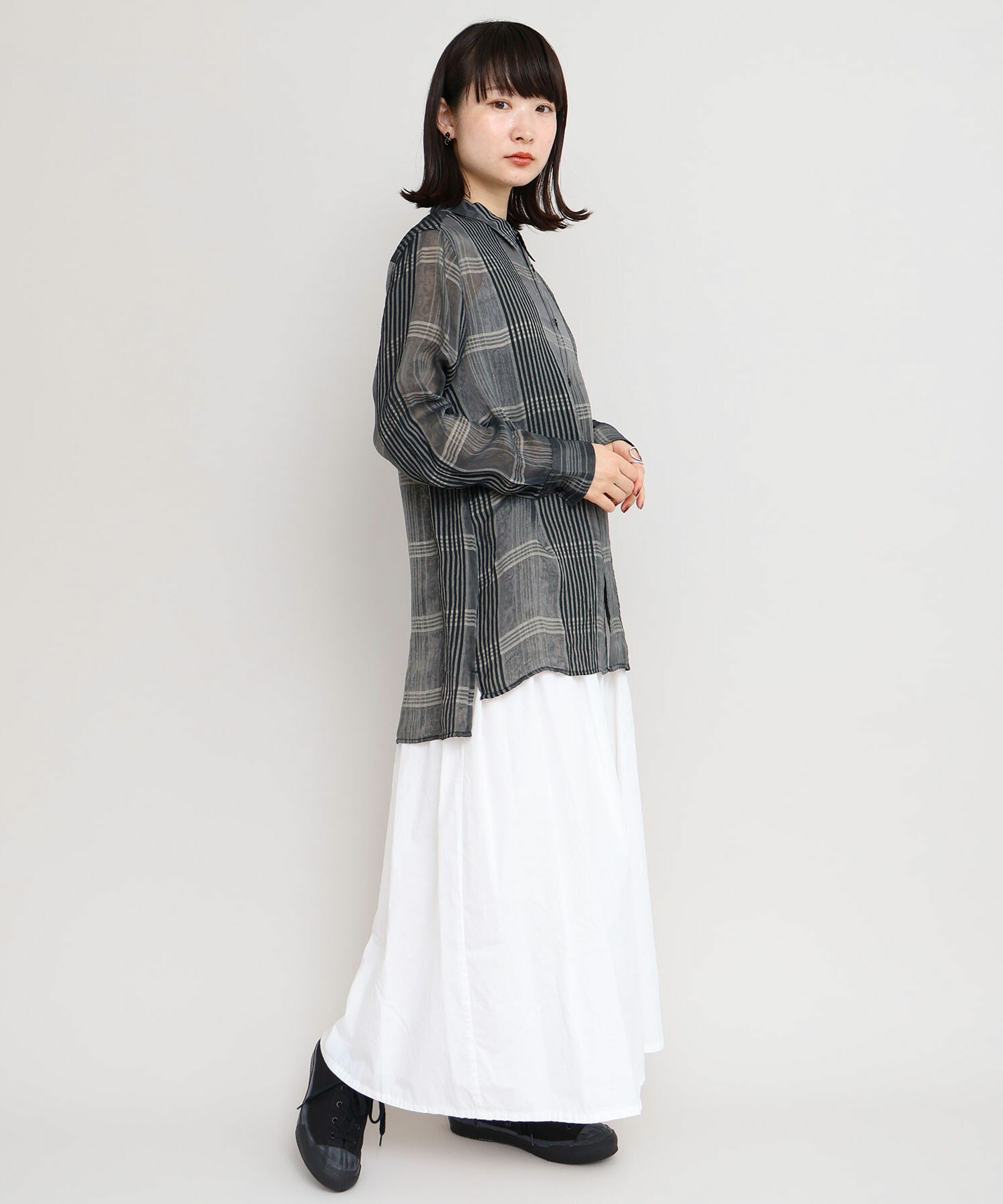 さりげないシャドーチェックで大人でも着やすい印象に仕上がりました。