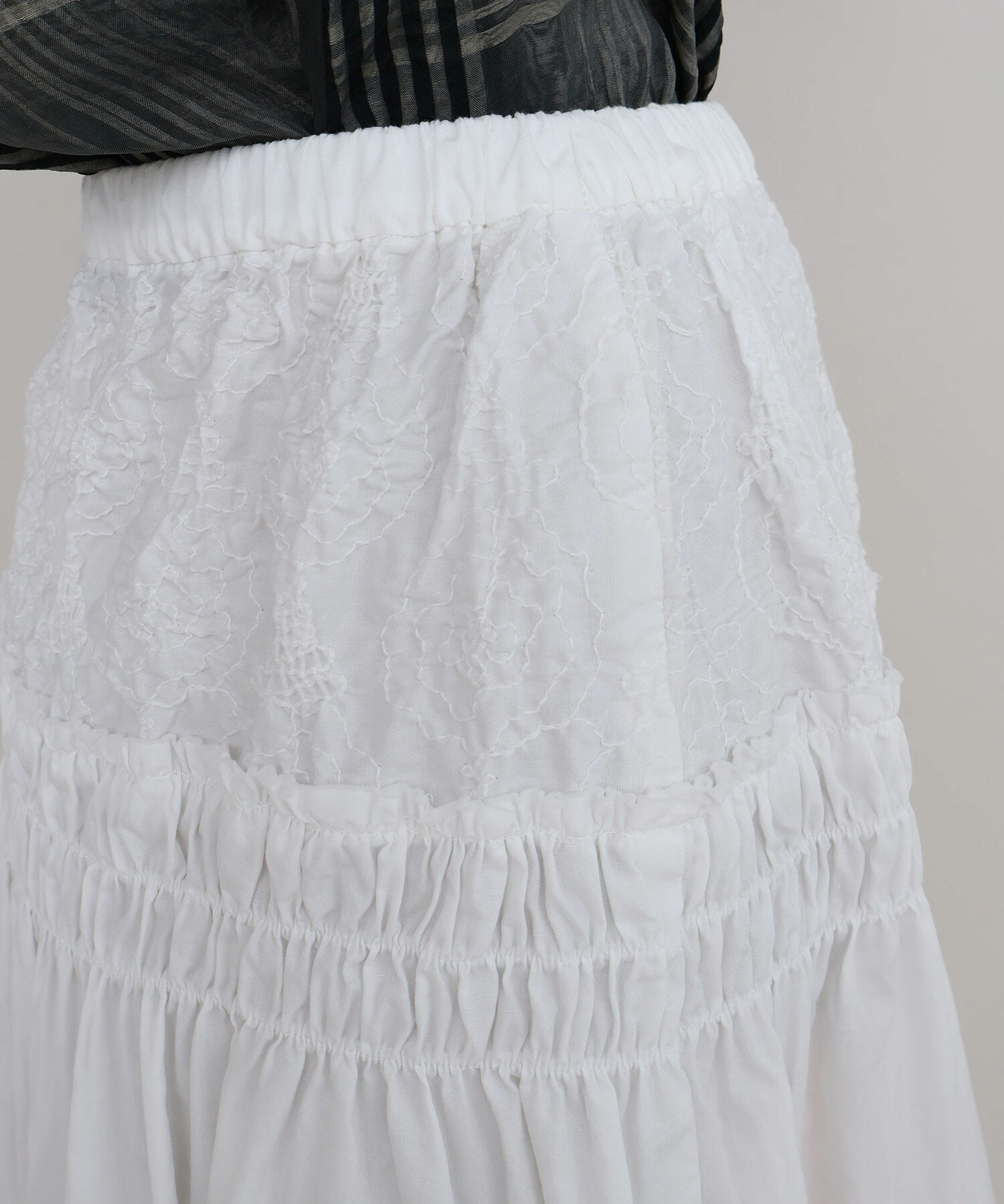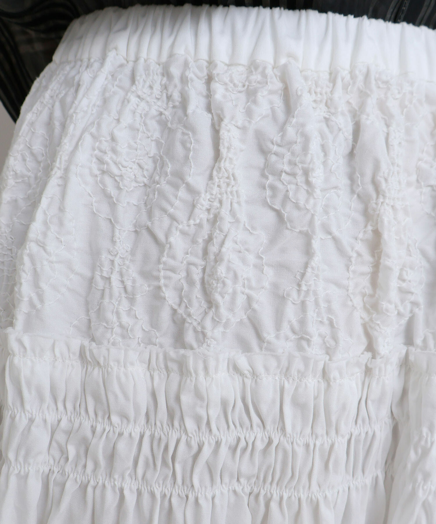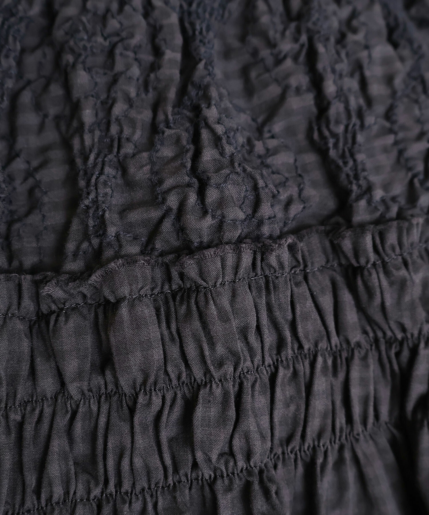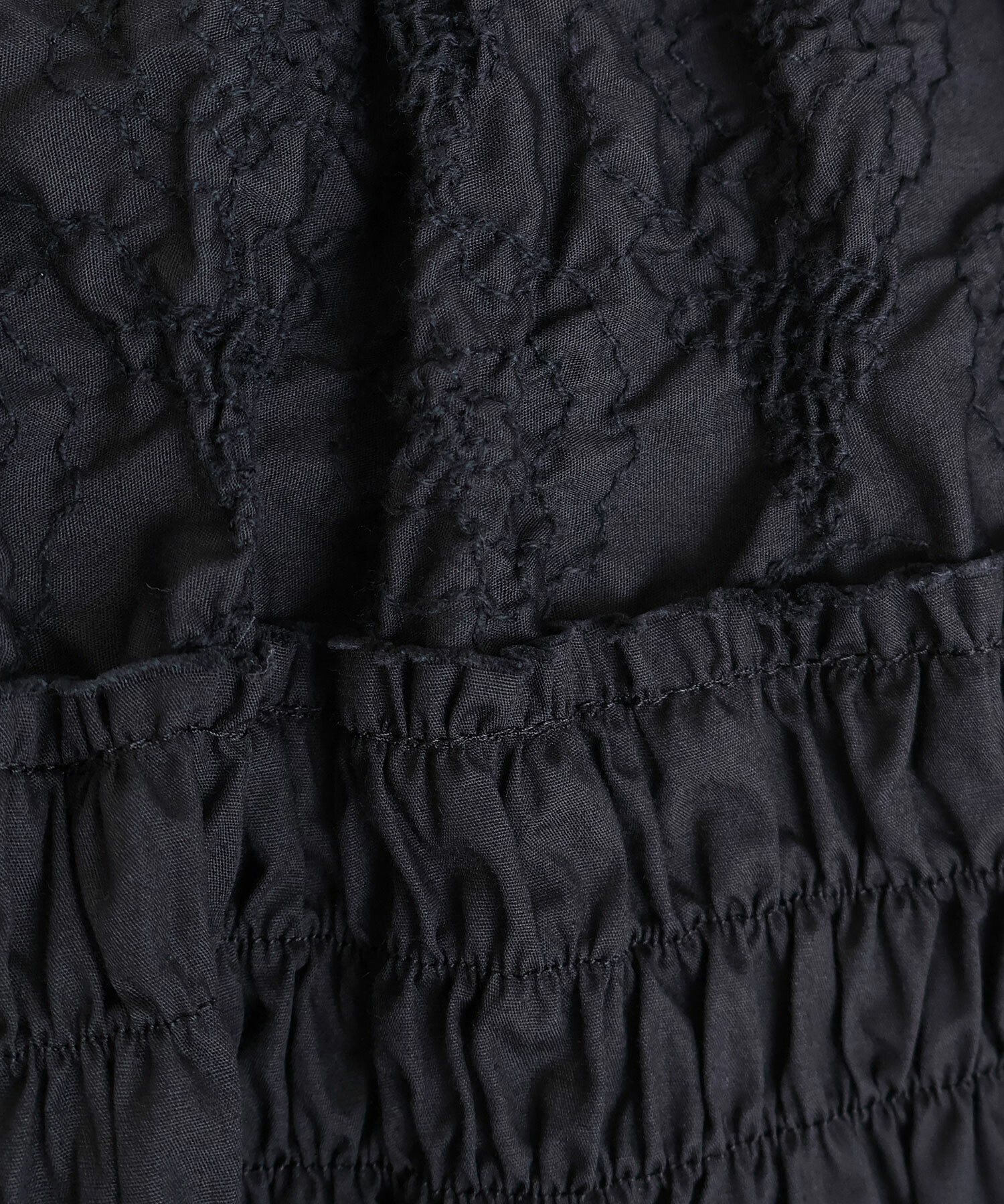 刺繍のぽこぽこ感とギャザーたっぷりのボリューム感が特徴的です。