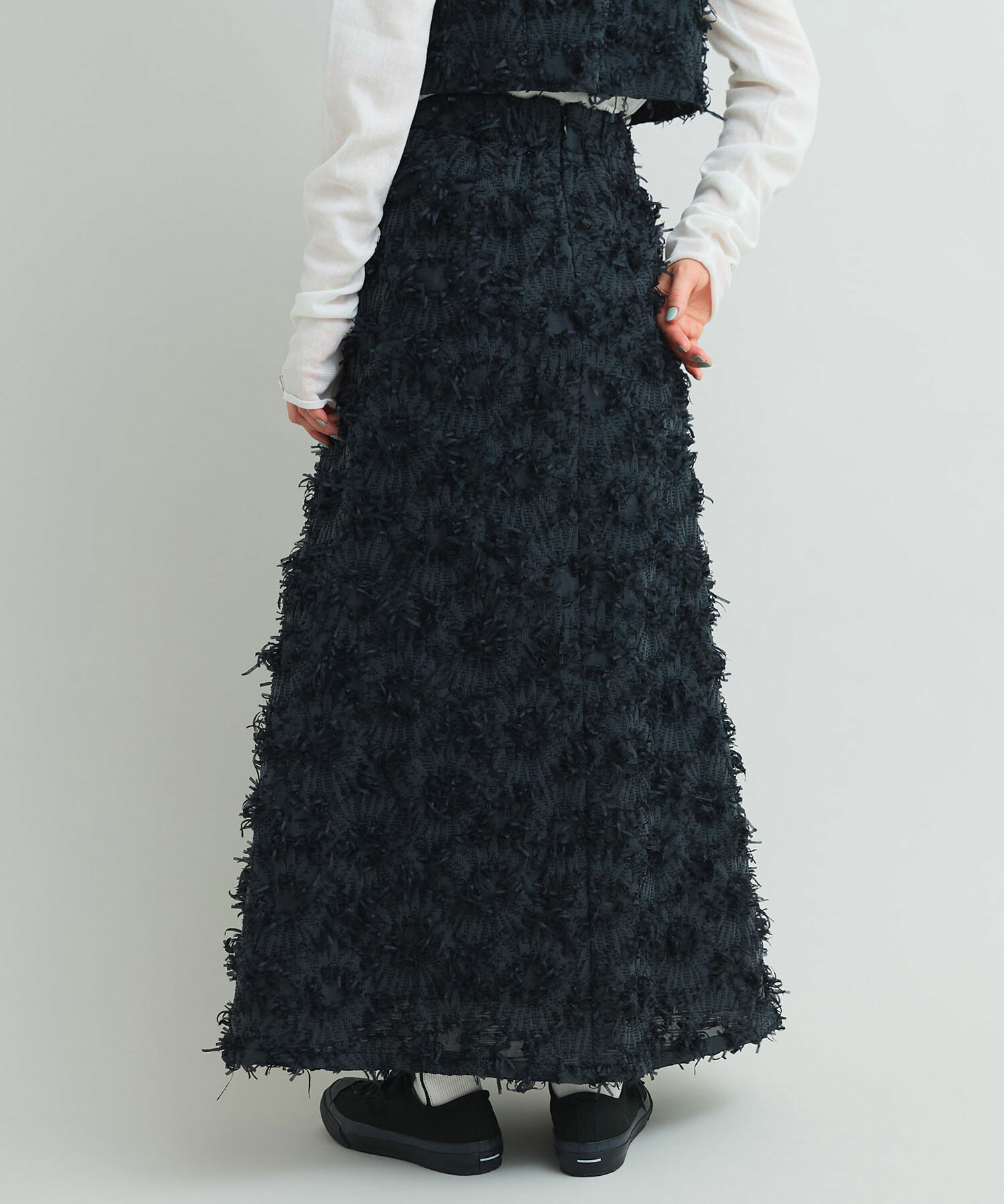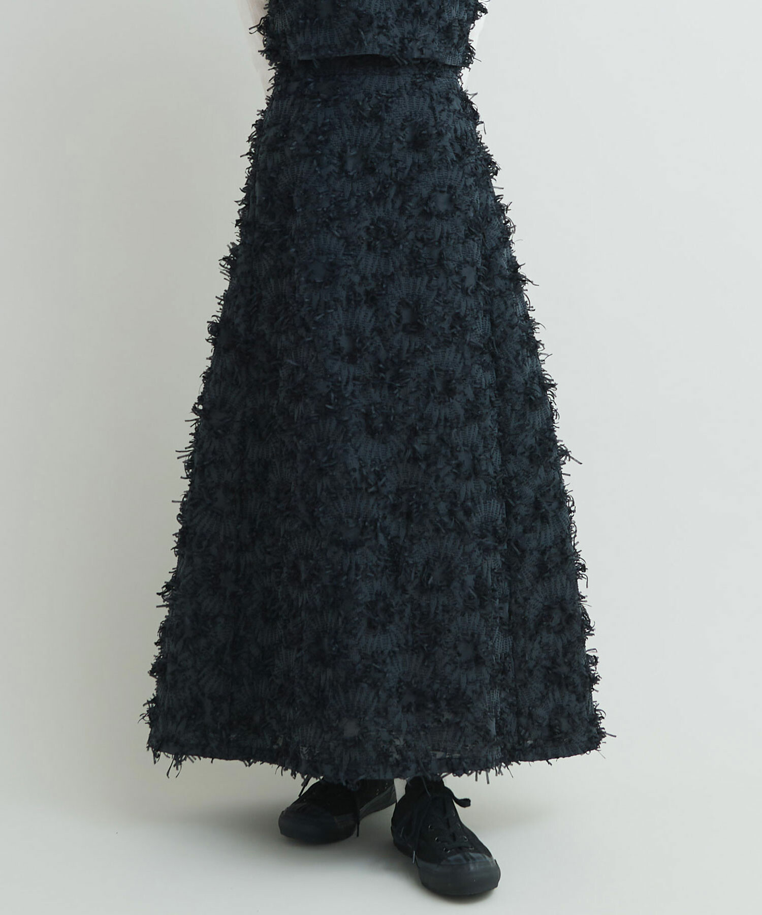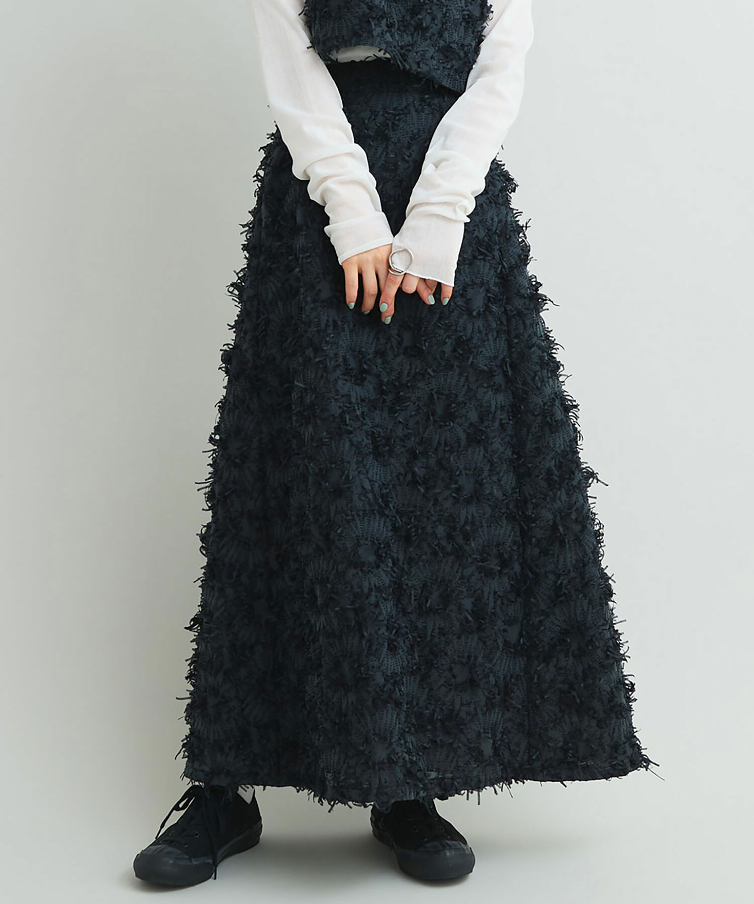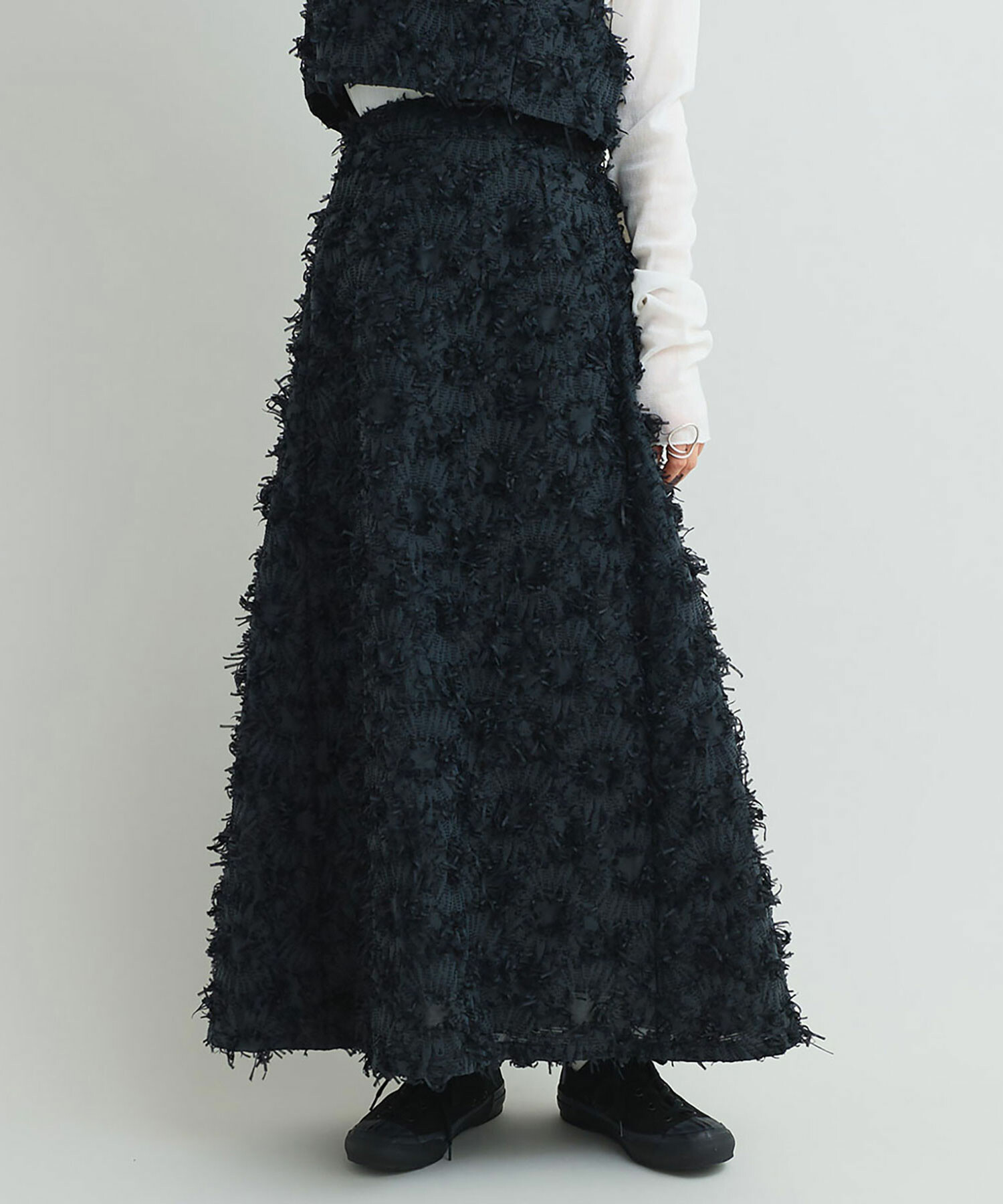 存在感溢れるロング丈のAラインシルエットスカート。