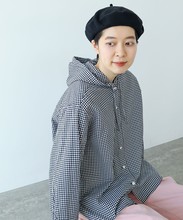 ○無地/ストライプ/ギンガムチェック マグワッシャーフードシャツ