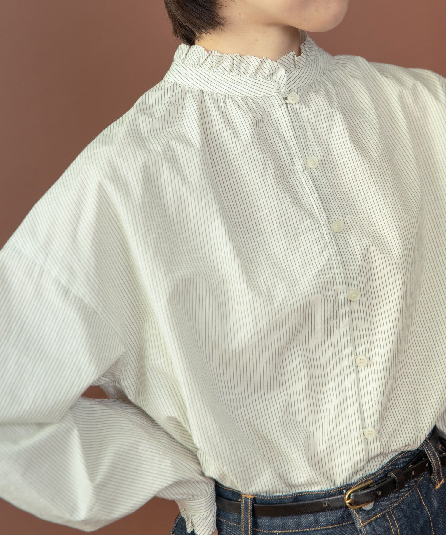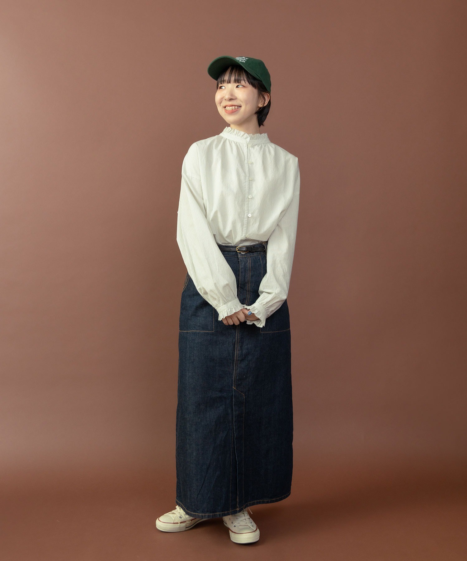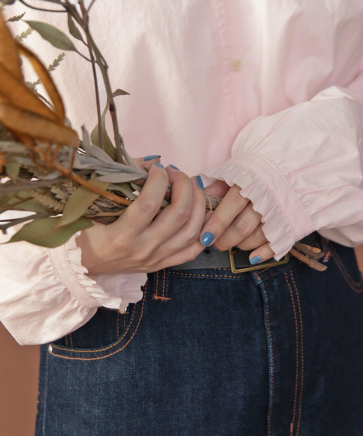 クラシックな印象のループボタンホールは、前を開けて羽織った時にもさりげないポイントに。かわいいだけではなくメンズライクなアイテムに合わせても馴染みの良いPAR ICIらしいこだわりです。デニムやカーゴパンツを合わせれば、丁度良い甘さ加減のカジュアルスタイルに。チノやデニムなど硬めの素材のロングスカートと合わせても、上品ながらもどこかカレッジな雰囲気に。