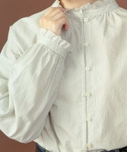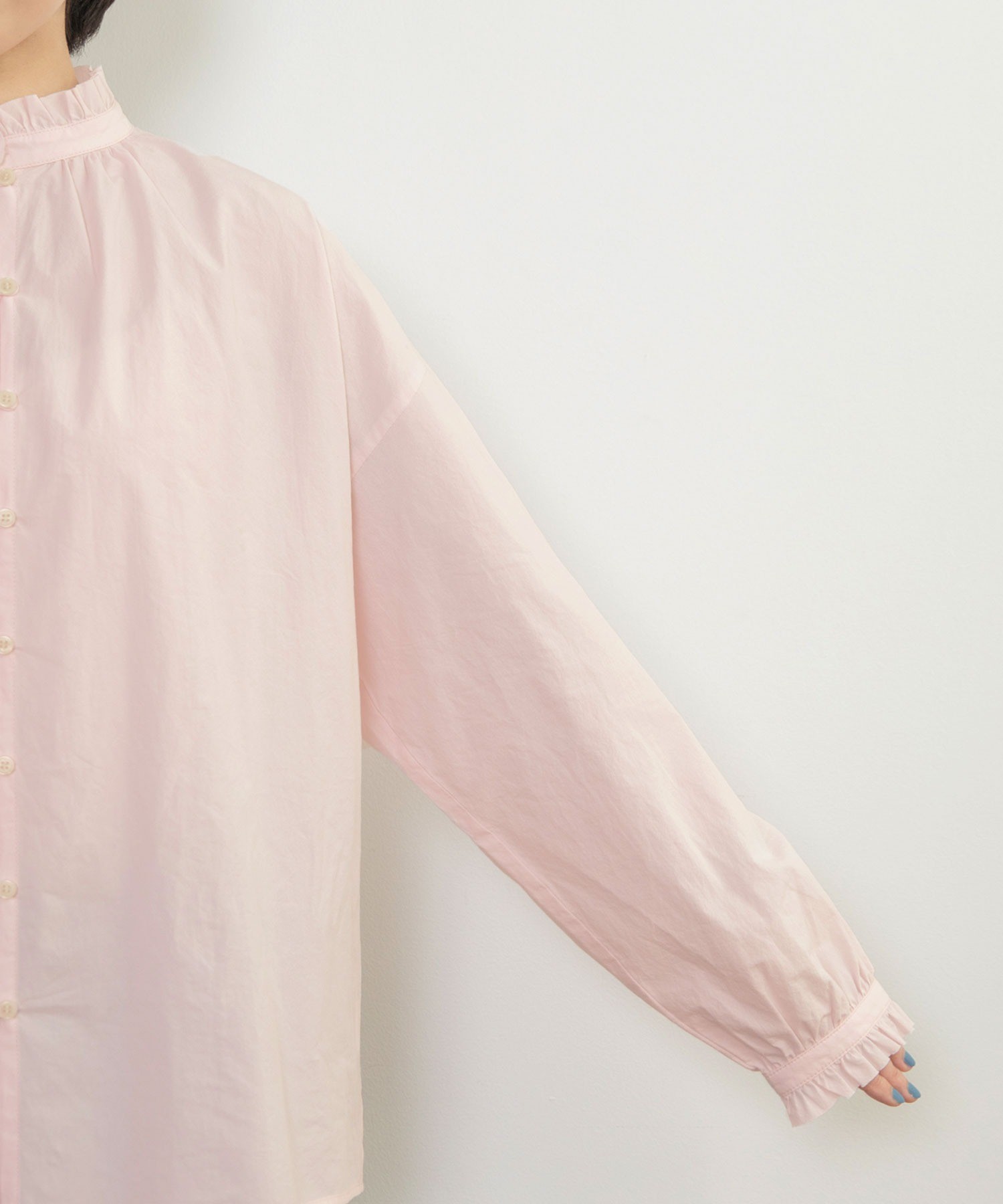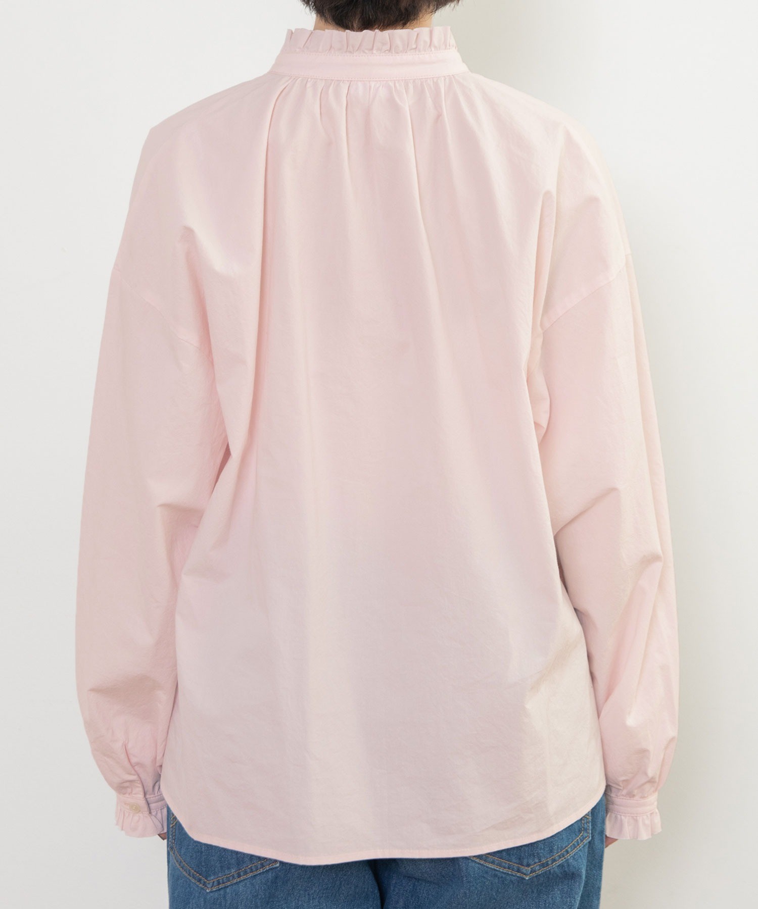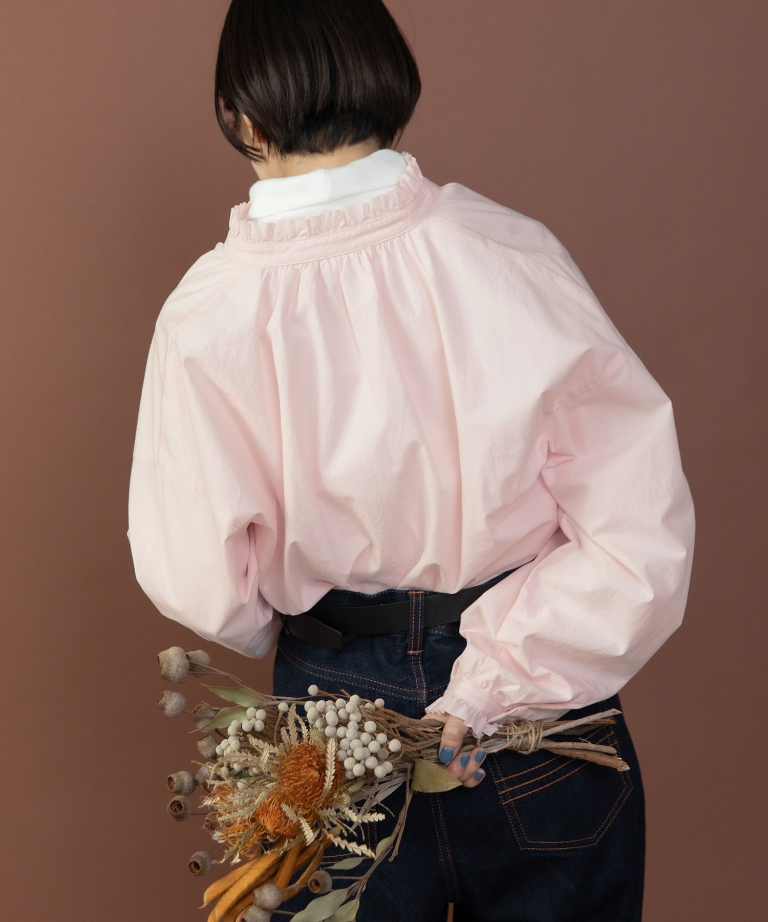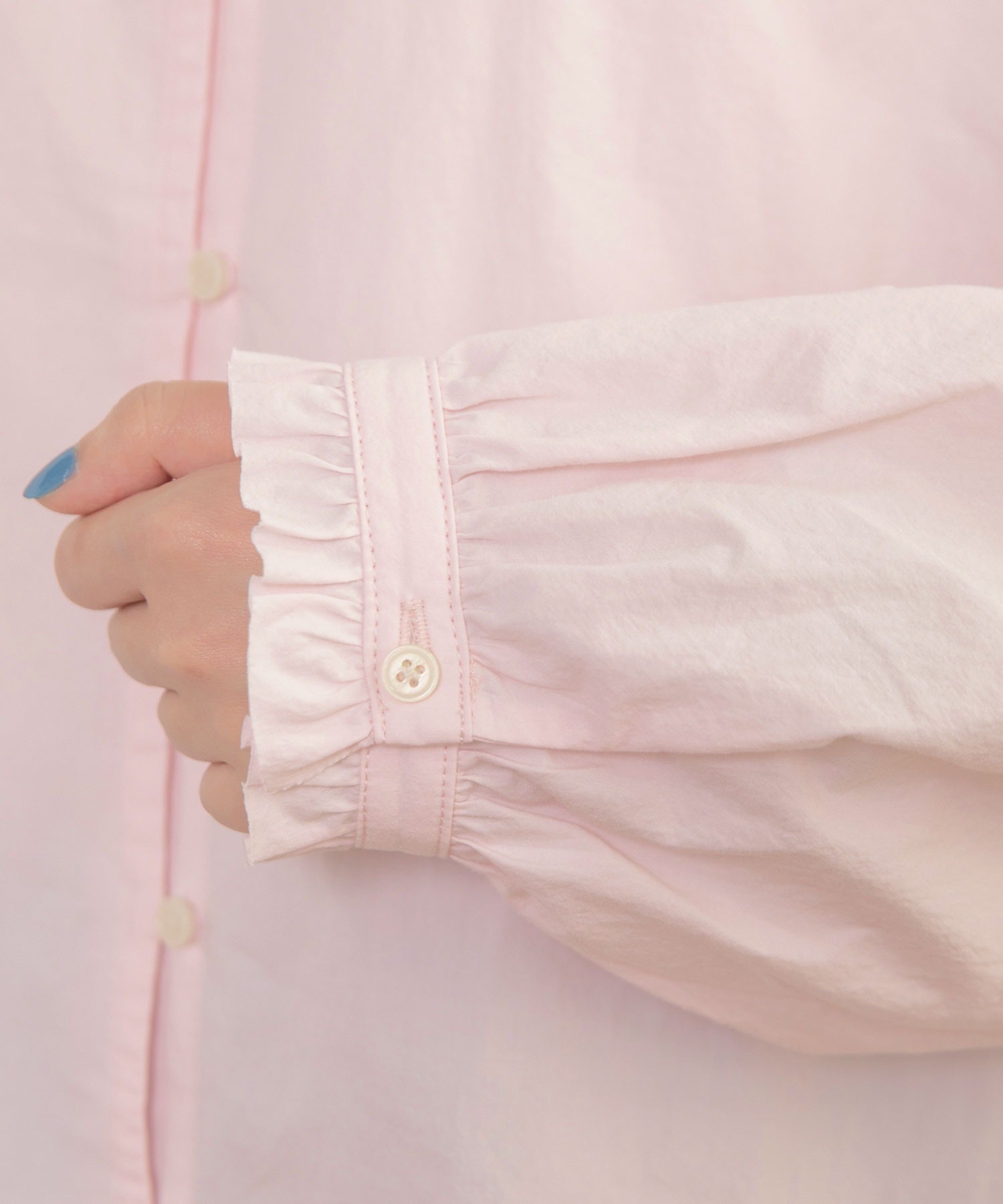 クラシックな印象のループボタンホールは、前を開けて羽織った時にもさりげないポイントに。かわいいだけではなくメンズライクなアイテムに合わせても馴染みの良いPAR ICIらしいこだわりです。デニムやカーゴパンツを合わせれば、丁度良い甘さ加減のカジュアルスタイルに。チノやデニムなど硬めの素材のロングスカートと合わせても、上品ながらもどこかカレッジな雰囲気に。