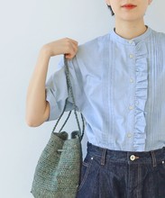 フロント部分に華やかなフリルを施した、クラシカルな雰囲気のコットンブラウス。