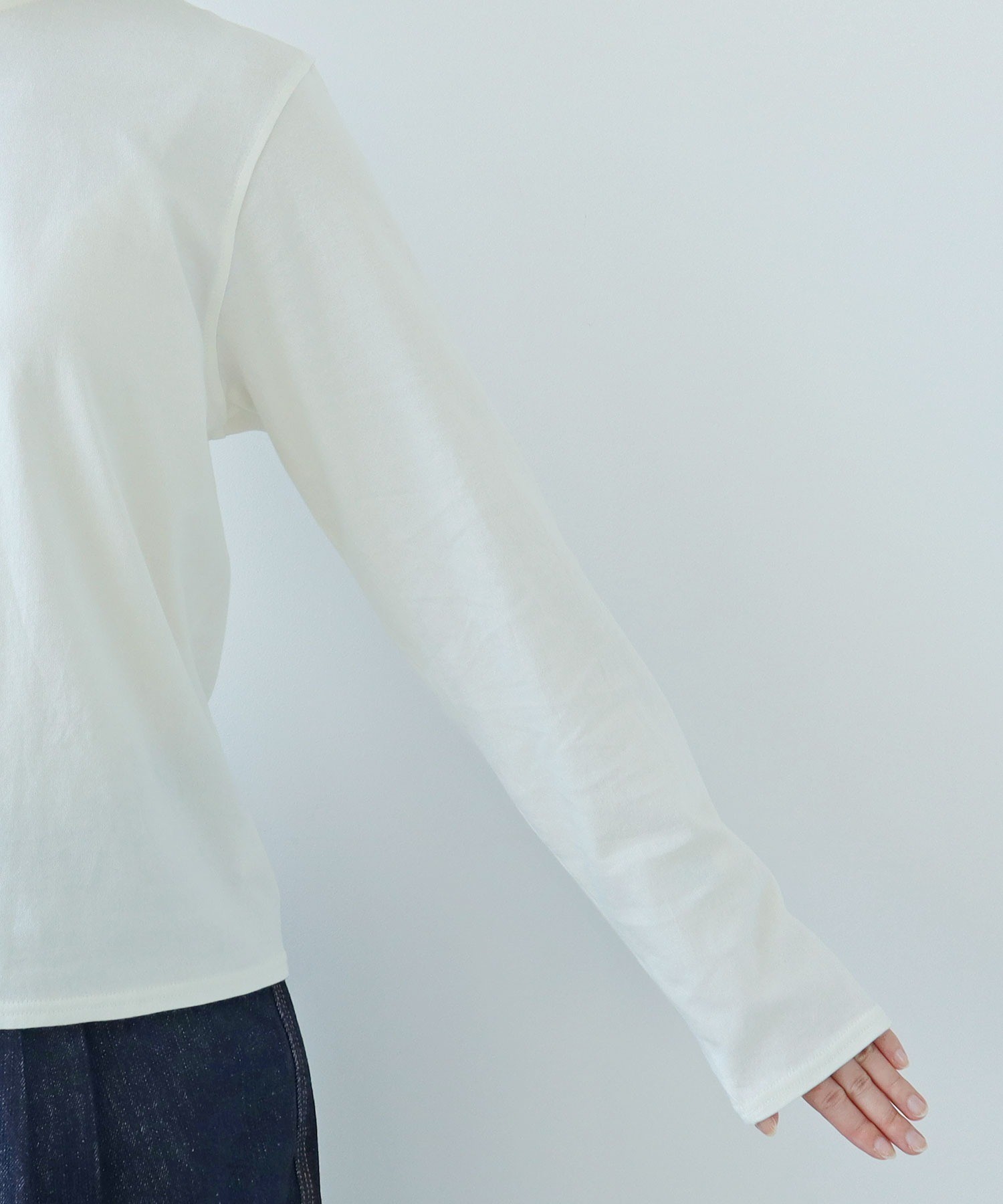 季節の変わり目から、ベストやシャツ、カーディガンとの軽いレイヤードスタイルを楽しめます。気温の低い日にはざっくりとしたニットやメンズライクなロゴスウェットのインナーに。ワードローブにあるとロングシーズン活躍する優秀アイテムです。