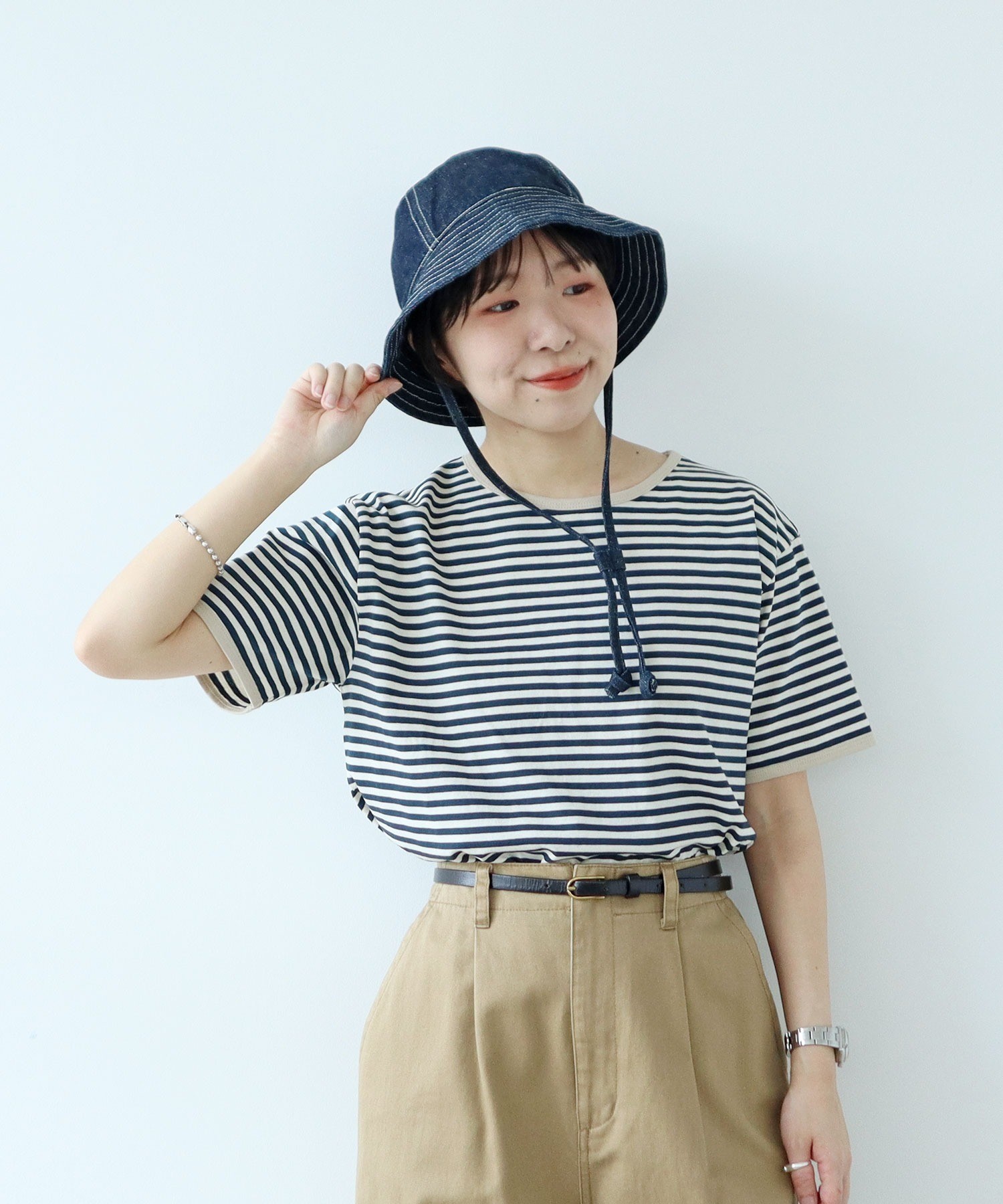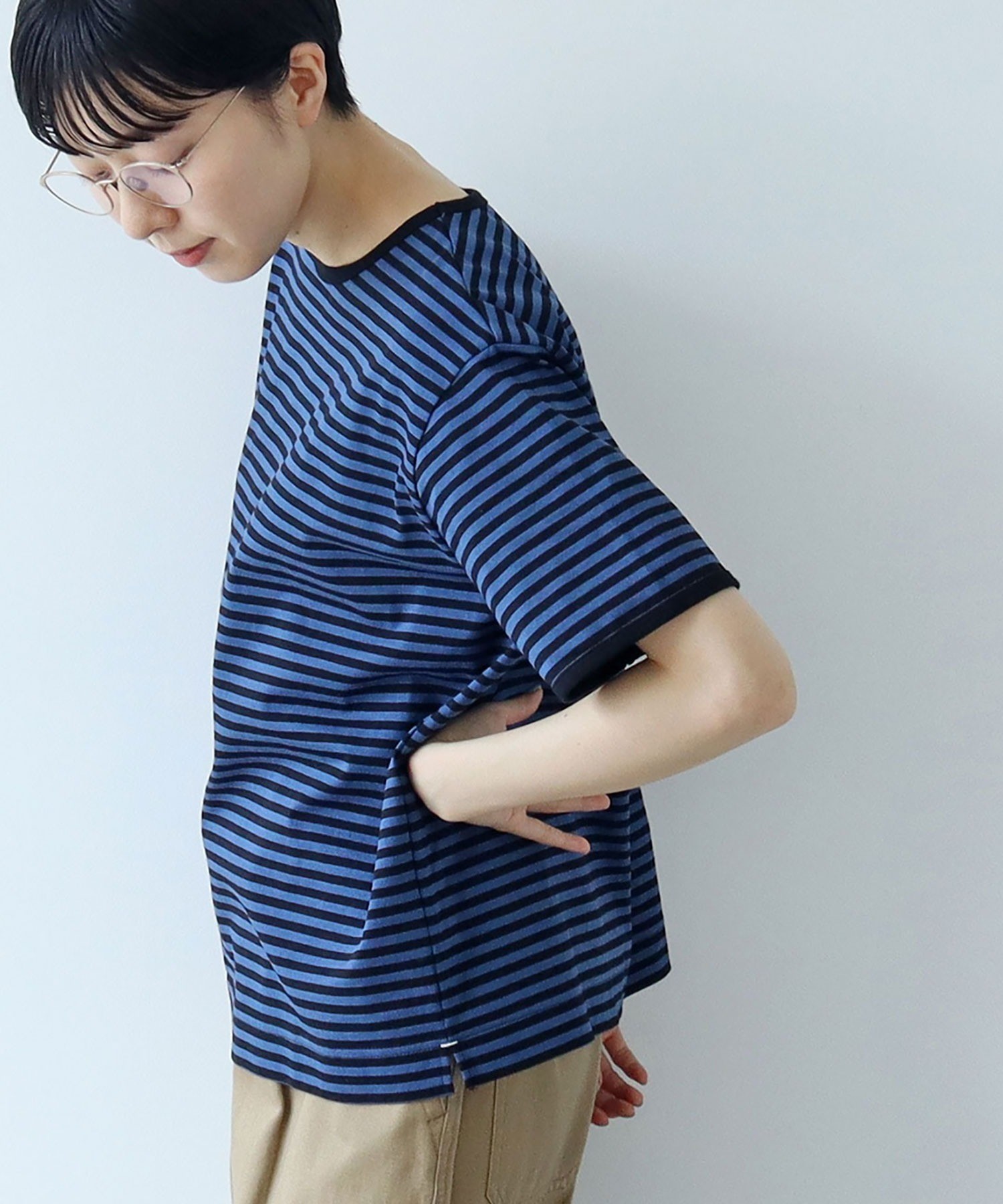マリンコーディネートには欠かせない定番のボーダーに、配色バインダーやスリット止まりのカンヌキなどちょっとしたエッセンスを加えたこだわりの一枚。デザイン性だけではなく、着用と洗濯を繰り返してもへたりにくいタフさが嬉しい、スタッフ人気も高いアイテムです。