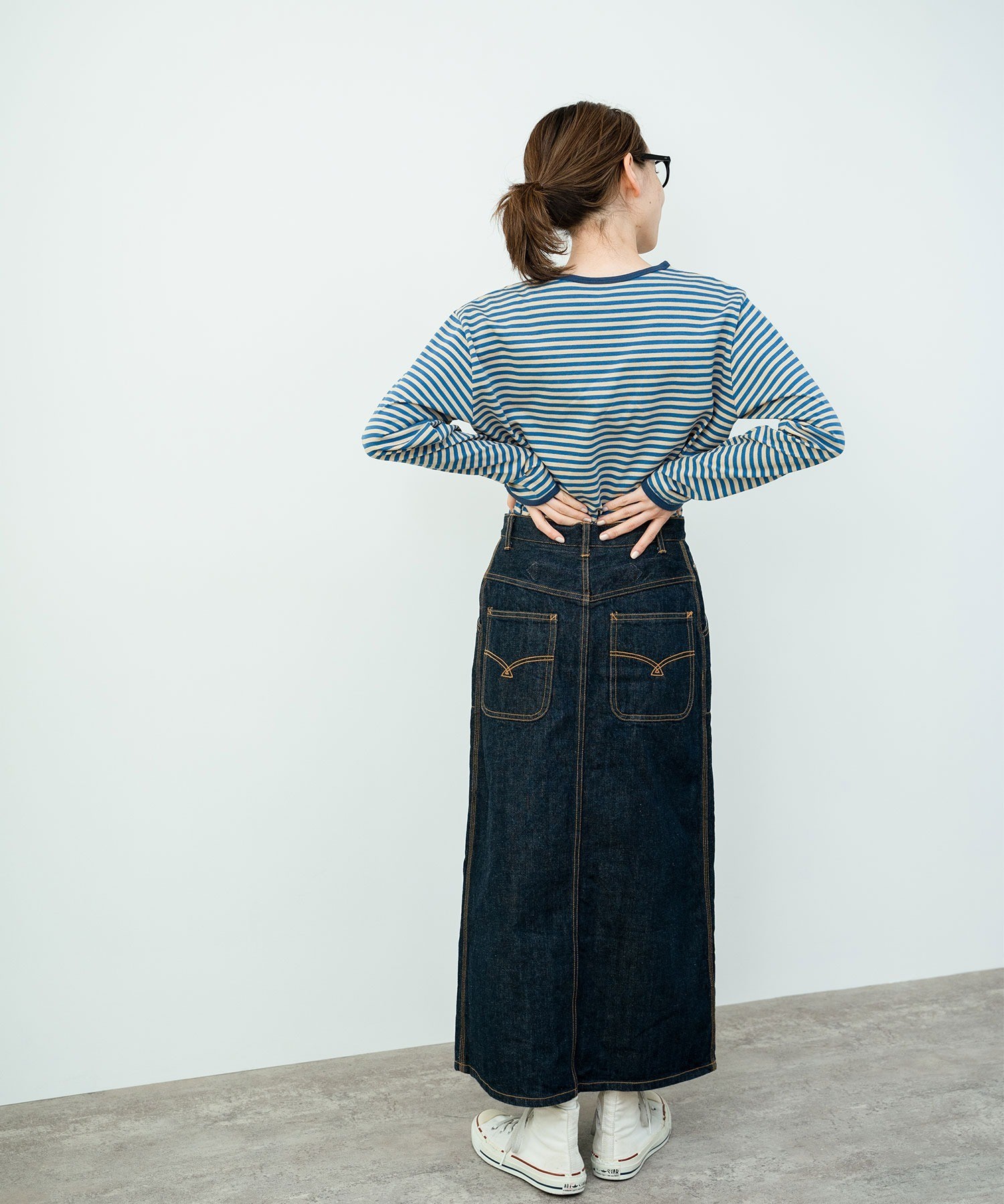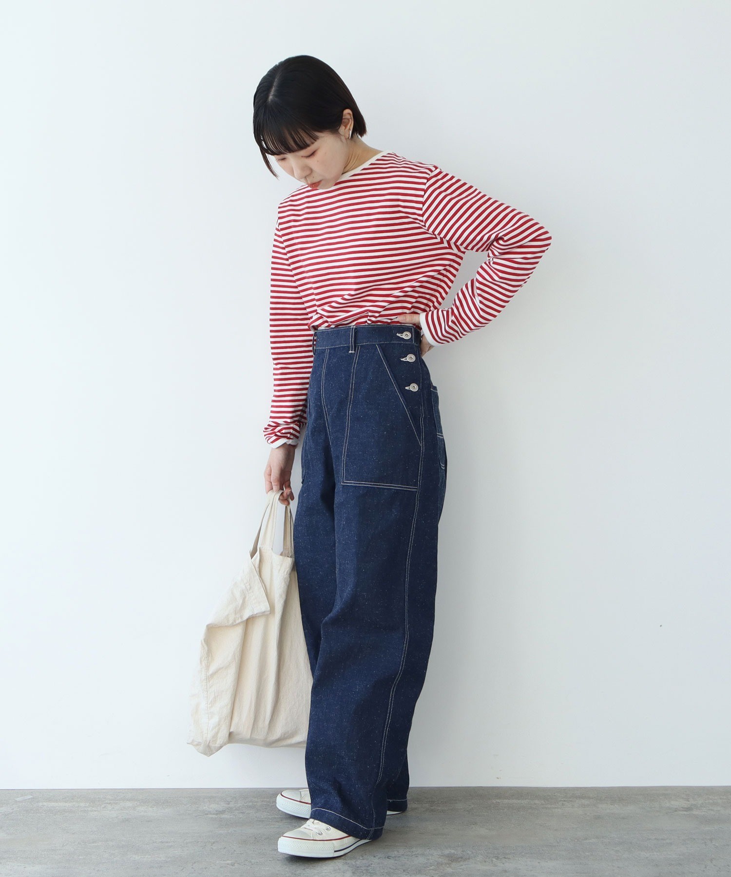マリンコーディネートには欠かせない定番のボーダーに、配色バインダーやスリット止まりのカンヌキなどちょっとしたエッセンスを加えたこだわりの一枚。デザイン性だけではなく、着用と洗濯を繰り返してもへたりにくいタフさが嬉しい、スタッフ人気も高いアイテムです。