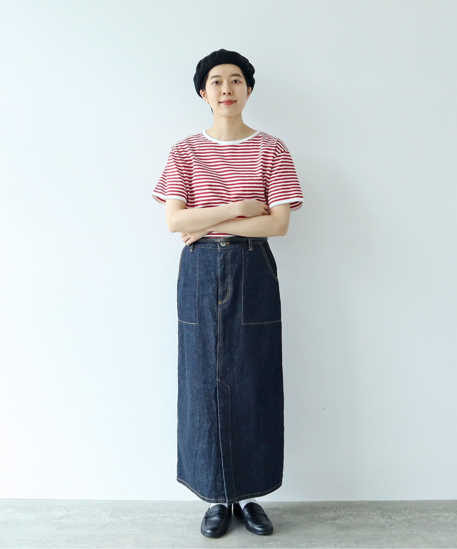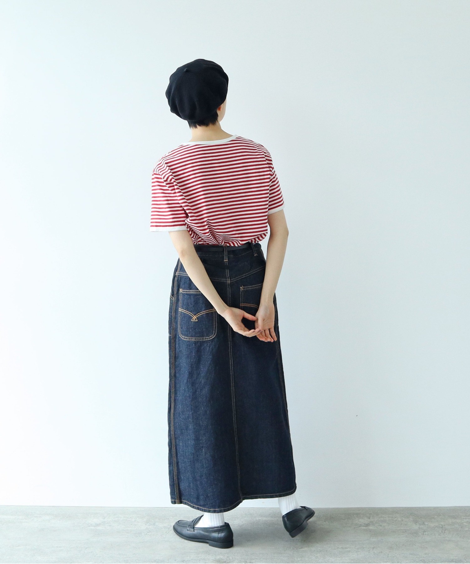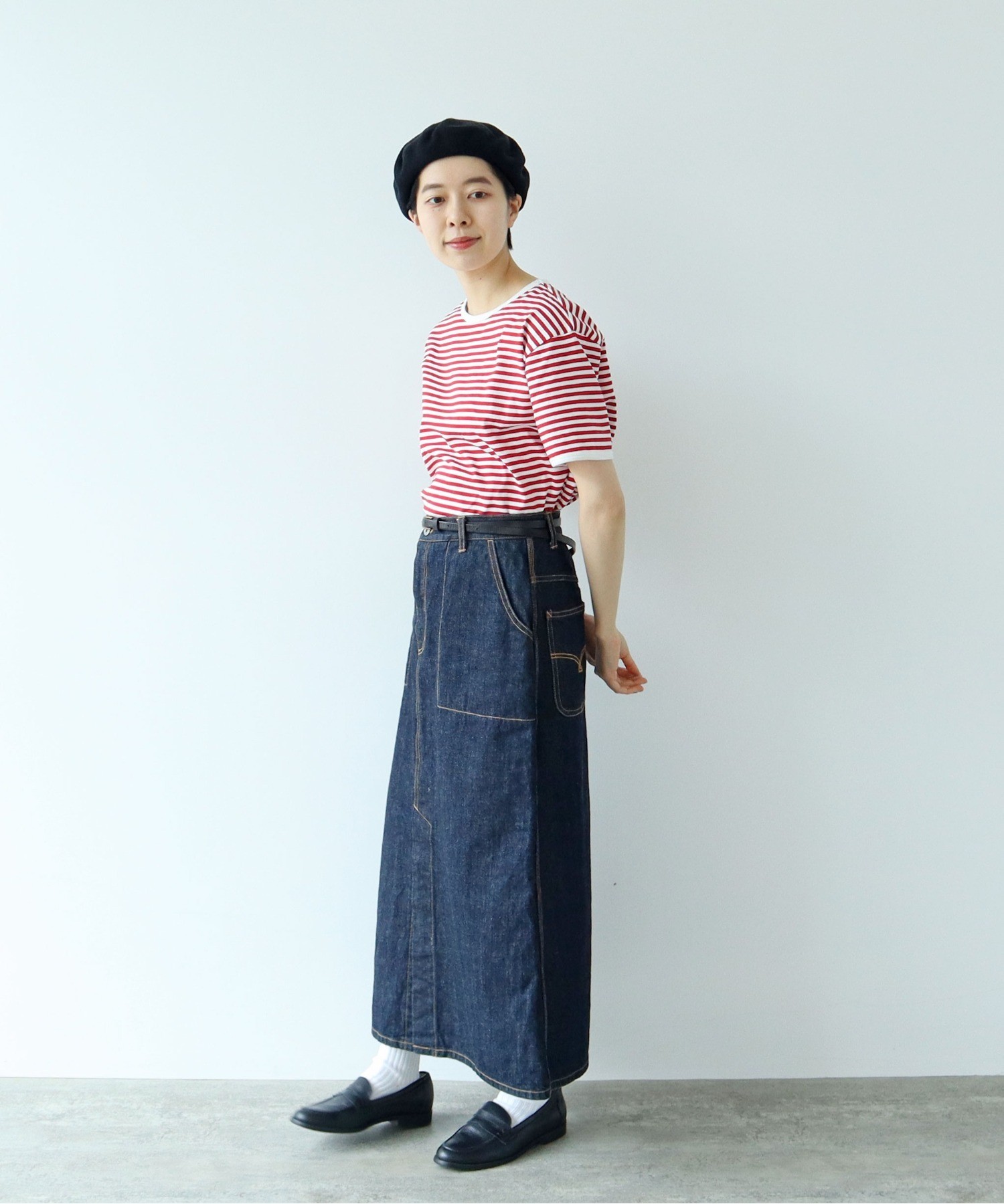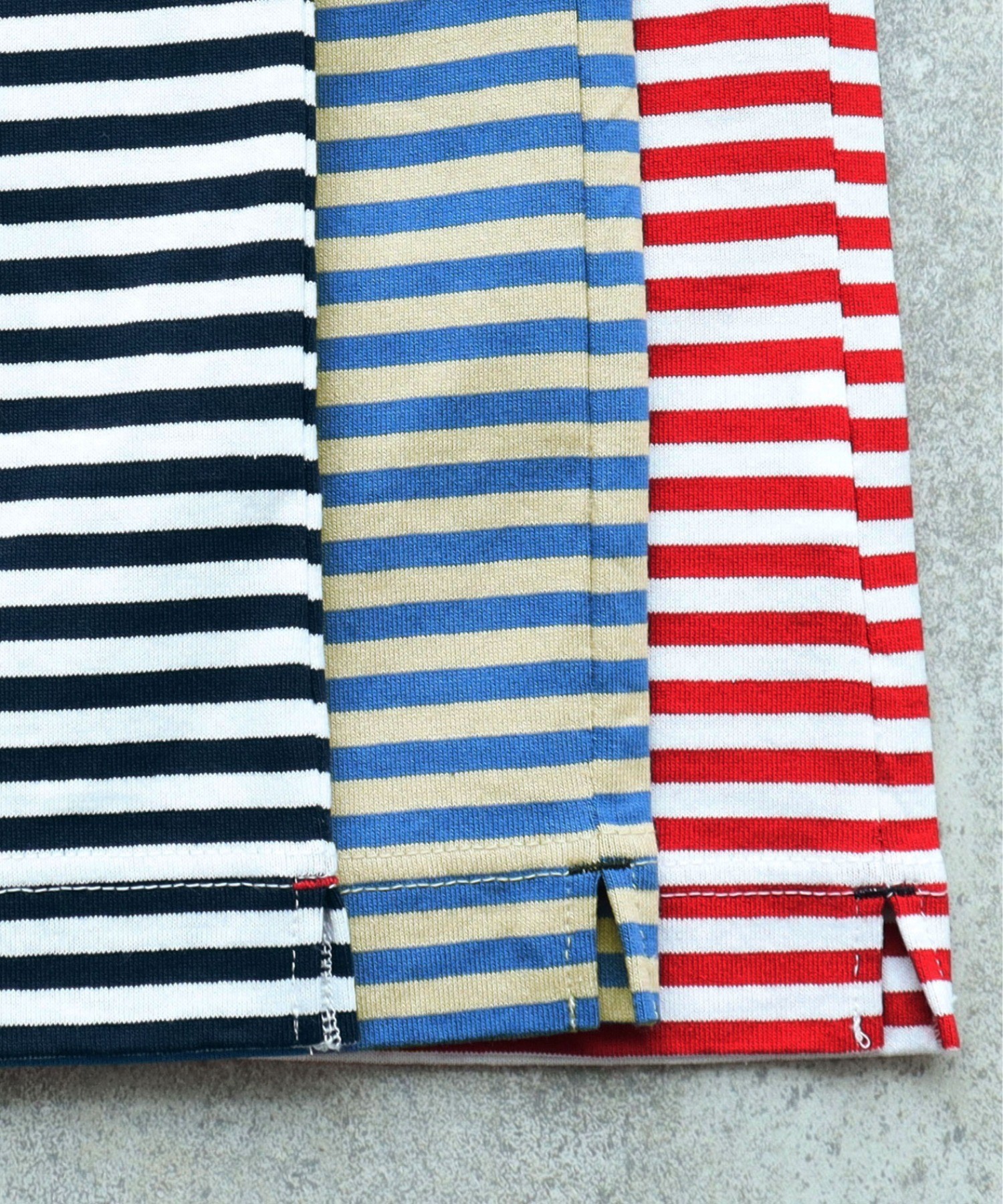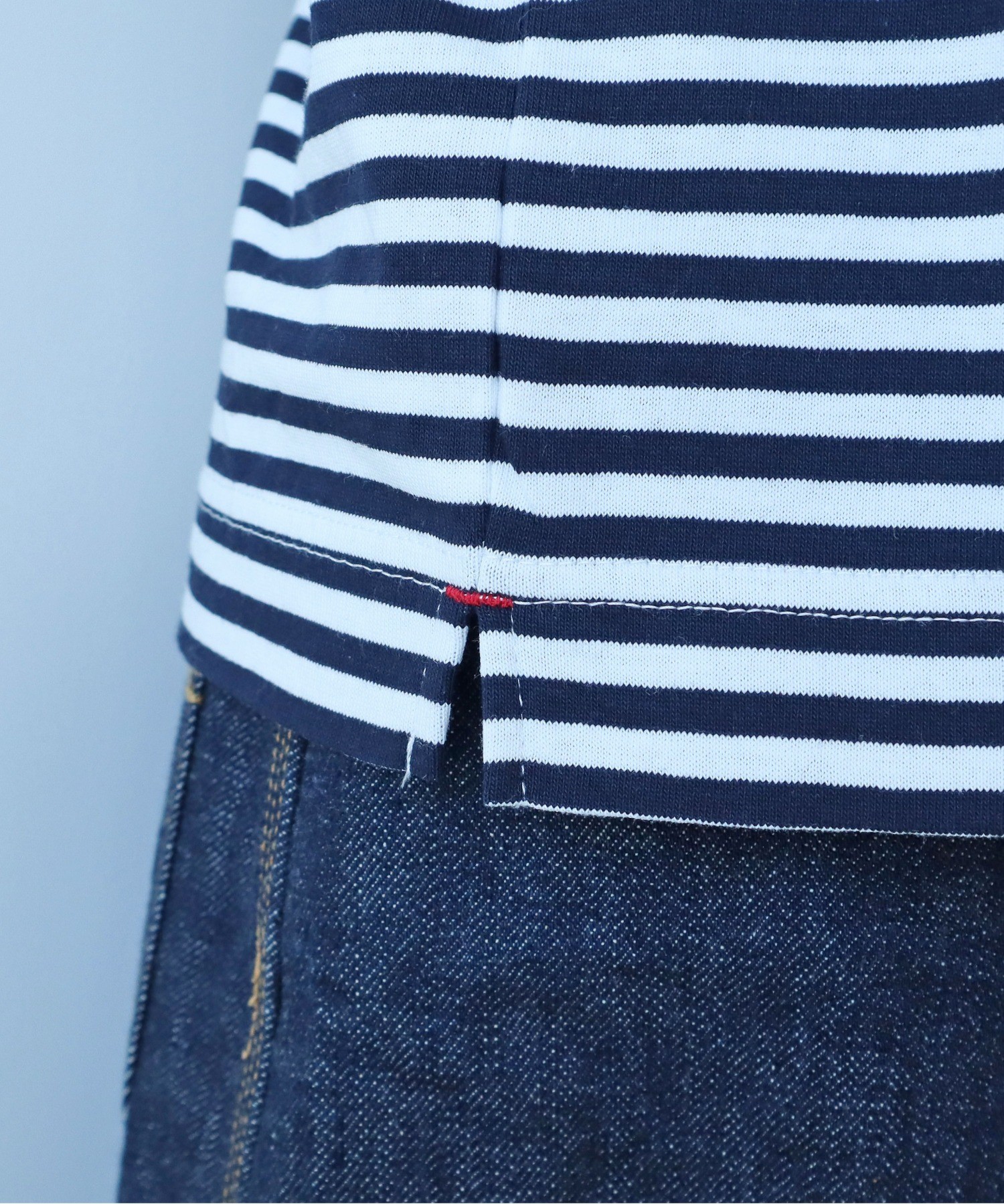 マリンコーディネートには欠かせない定番のボーダーに、配色バインダーやスリット止まりのカンヌキなどちょっとしたエッセンスを加えたこだわりの一枚。デザイン性だけではなく、着用と洗濯を繰り返してもへたりにくいタフさが嬉しい、スタッフ人気も高いアイテムです。