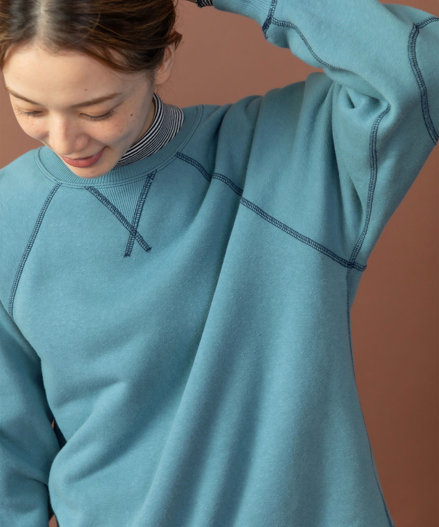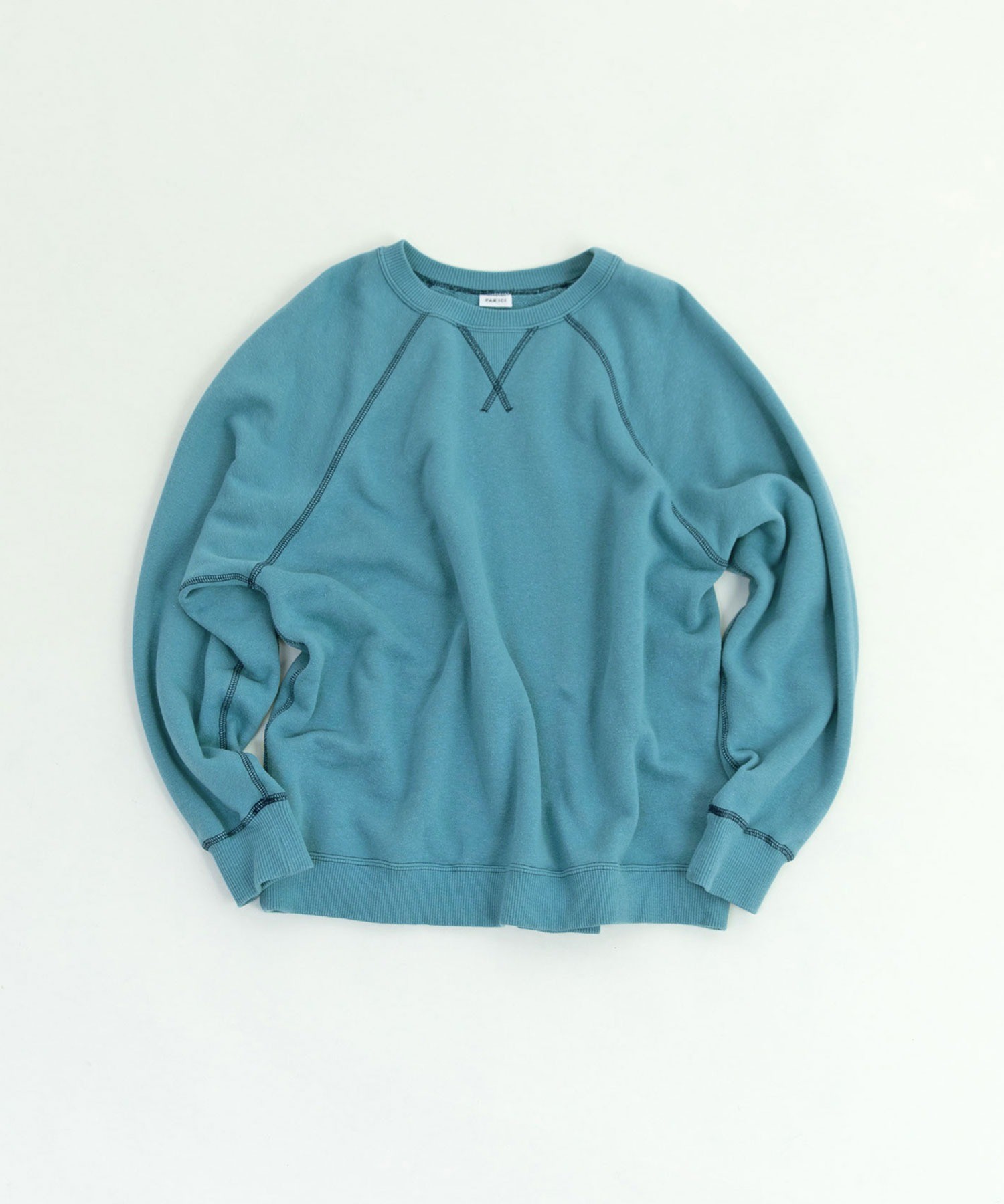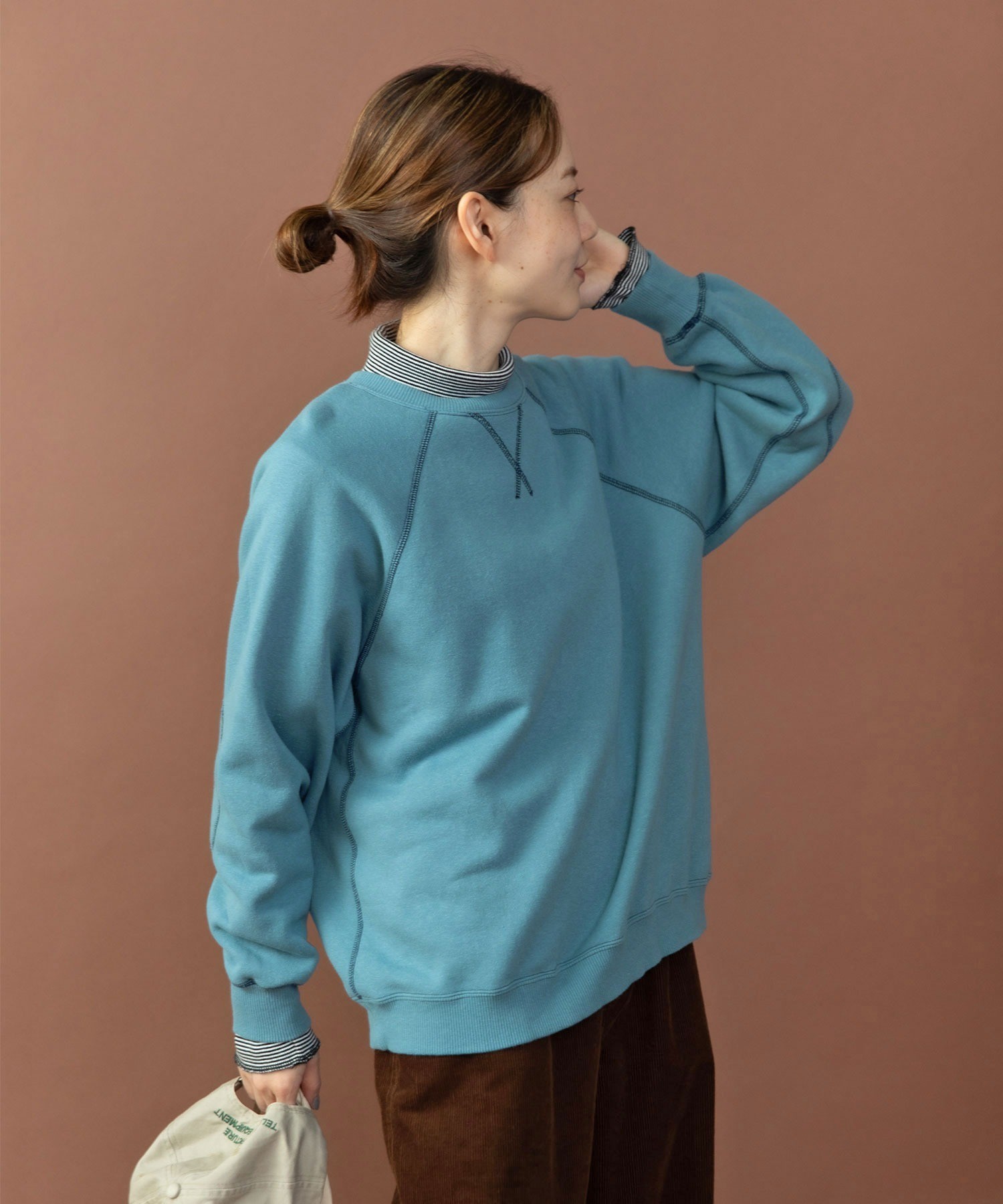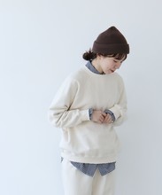 表にリサイクルコットン、裏にふわふわとした無撚糸を使ったオリジナル生地の裏毛スウェット。秋冬の新色でニュアンス感のあるサックスが仲間入りしました。