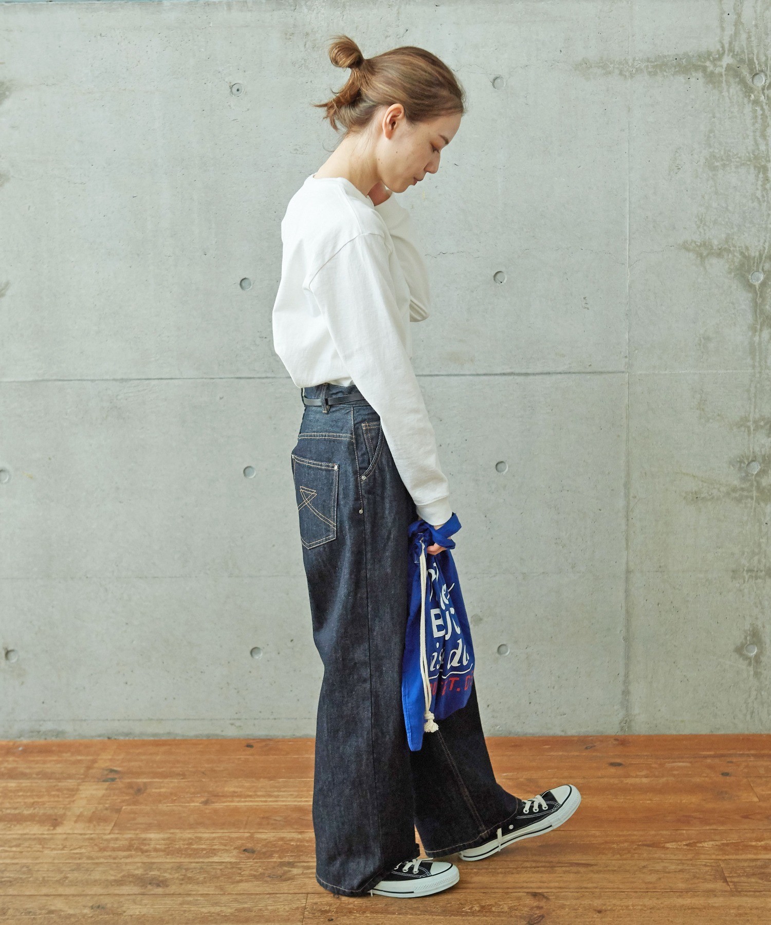 前開き部分のカンヌキや裾の裏のステッチが配色で入っており、さりげない遊びのきいた一枚。