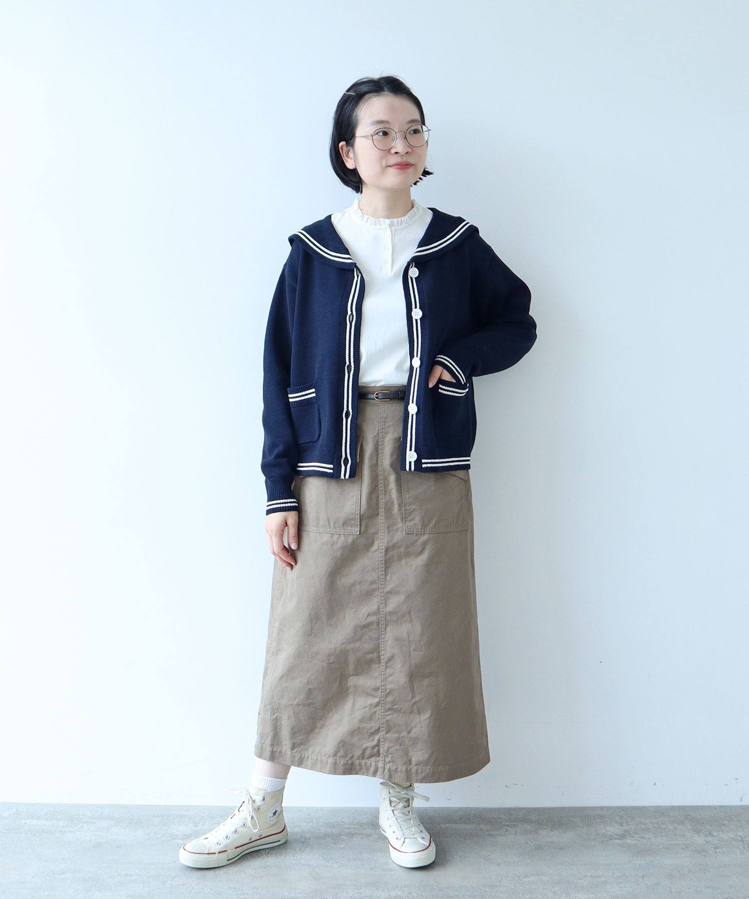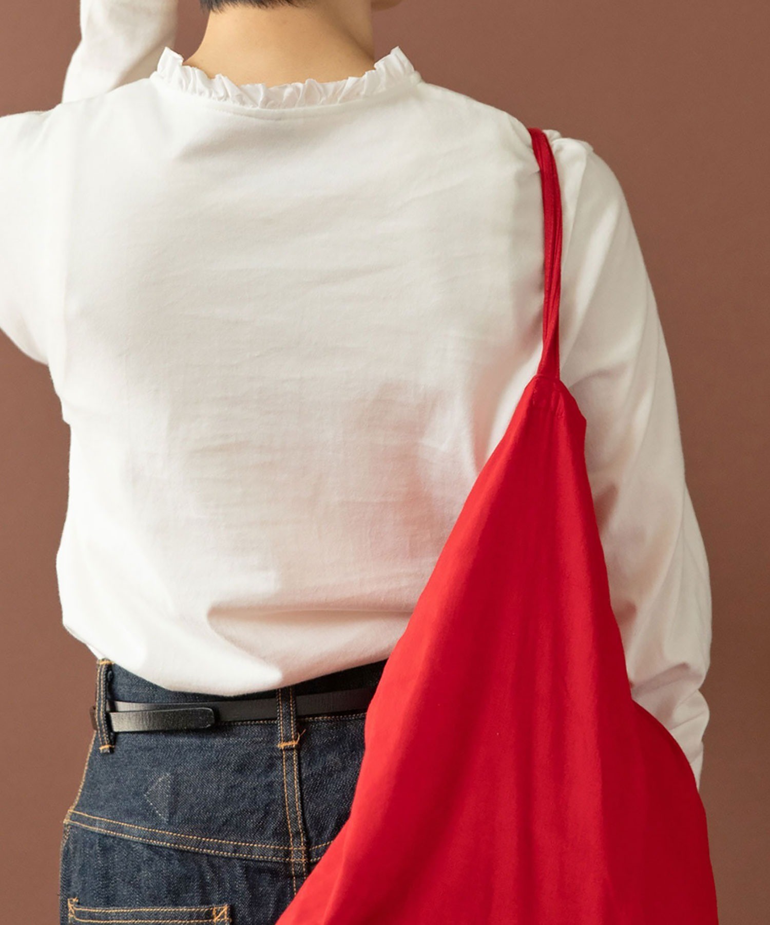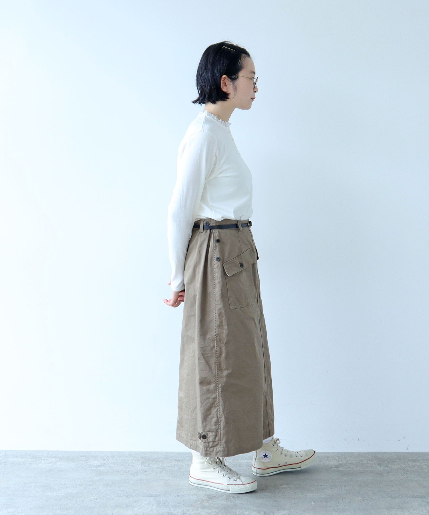 季節の変わり目から、ベストやシャツ、カーディガンとの軽いレイヤードスタイルを楽しめます。気温の低い日にはざっくりとしたニットやメンズライクなロゴスウェットのインナーに。ワードローブにあるとロングシーズン活躍する優秀アイテムです。