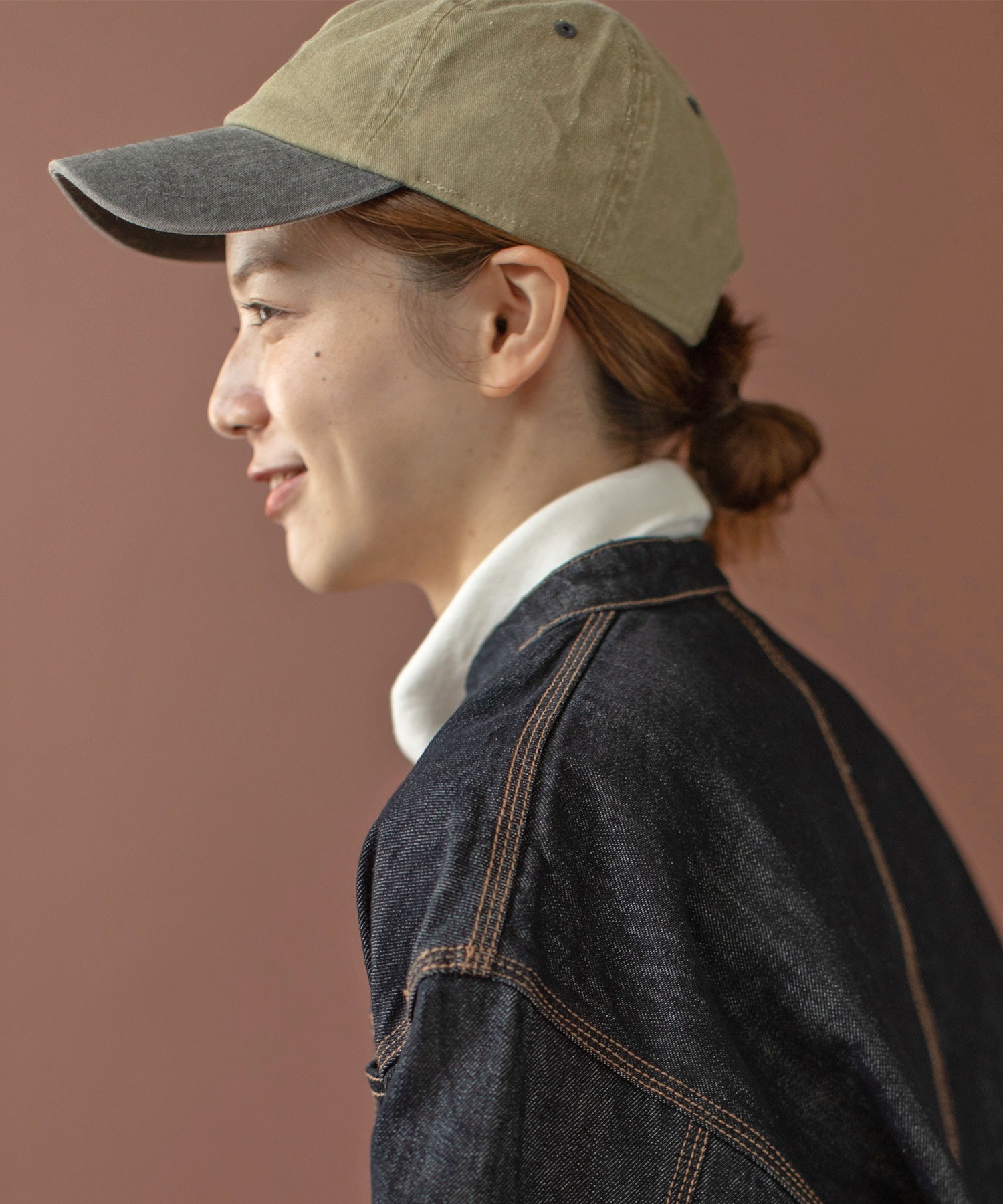 ニューヨークで生まれた帽子ブランド“NEWHATTAN”のボディを使用。古着のような雰囲気のツートーンキャップにオリジナル図案の刺繍を施しました。刺繍のカラーや大きさなど微調整を重ね、こなれ感のある仕上がりに。オールシーズン気軽に使えるコットン素材が嬉しい。