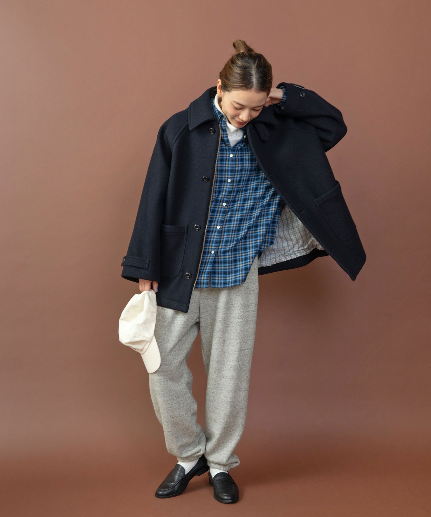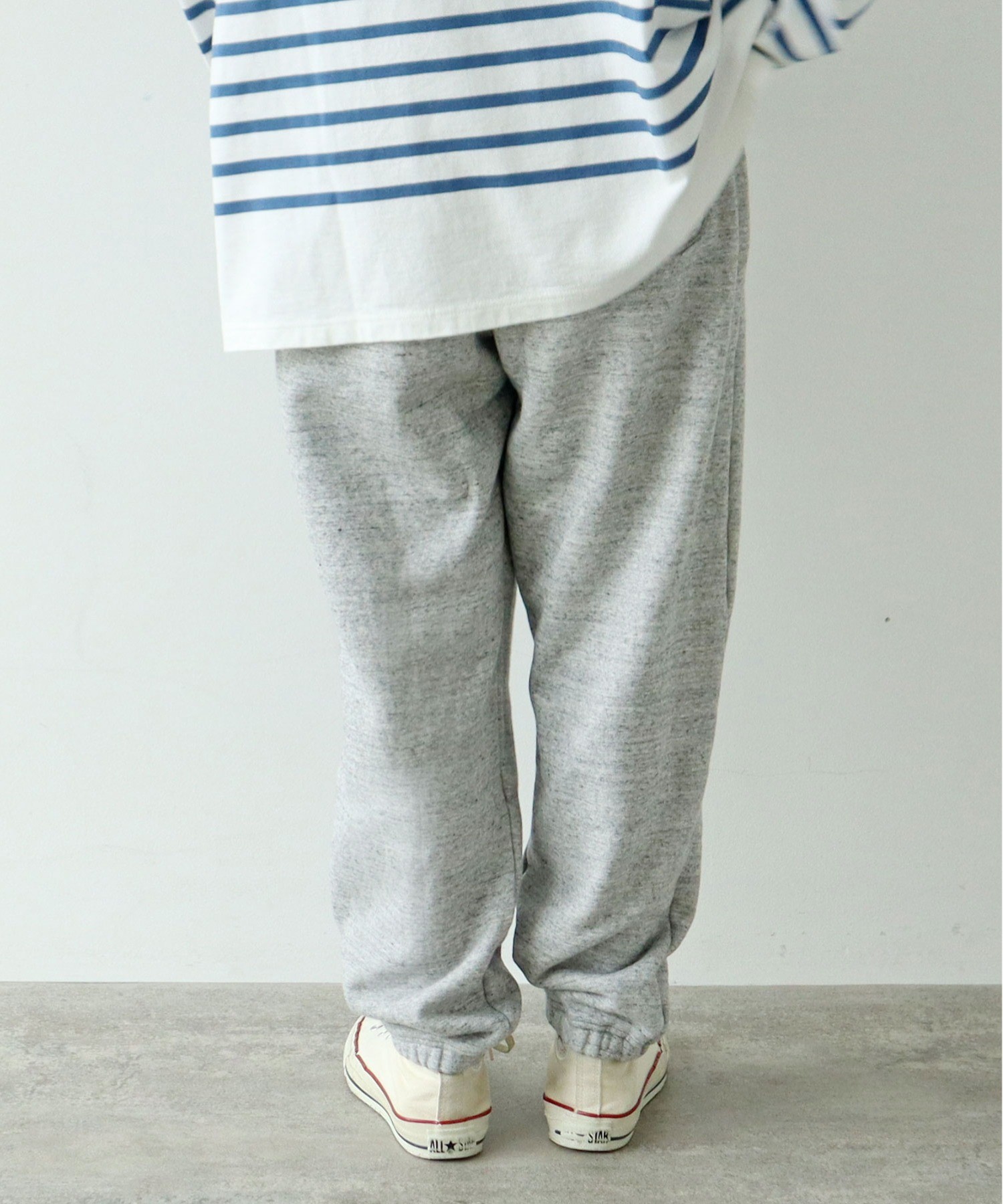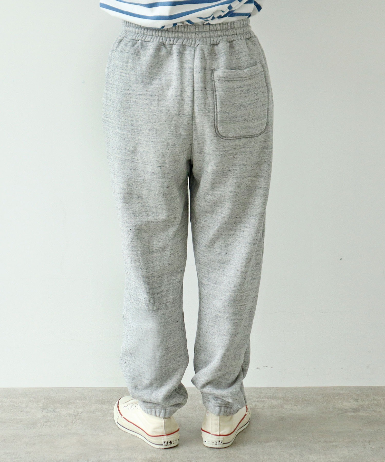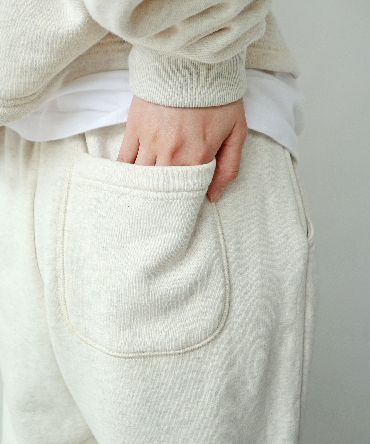 霜降り状で奥行きのある生地と太すぎないシルエットで、程よく品がありカジュアルになりすぎないので、スウェットパンツをあまり着られない方にも挑戦していただきやすいアイテムです。ボリュームのあるニットやオーバーシャツとレイヤードしたり、ローファーや革靴などのカッチリとしたアイテムと合わせてバランスを楽しんで。同素材でスウェットプルオーバー(5001CT011252)もご用意しております。