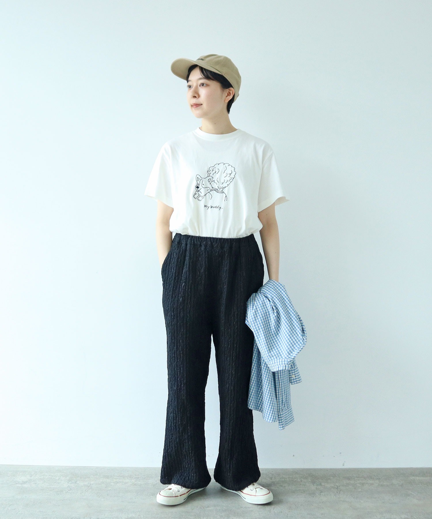 一枚で主役としてはもちろん、シャツやカーディガンを羽織った時にもポイントになります。嬉しそうなコーギーの表情に思わずほっこりしてしまう、犬好きの方にもおすすめのアイテムです。
