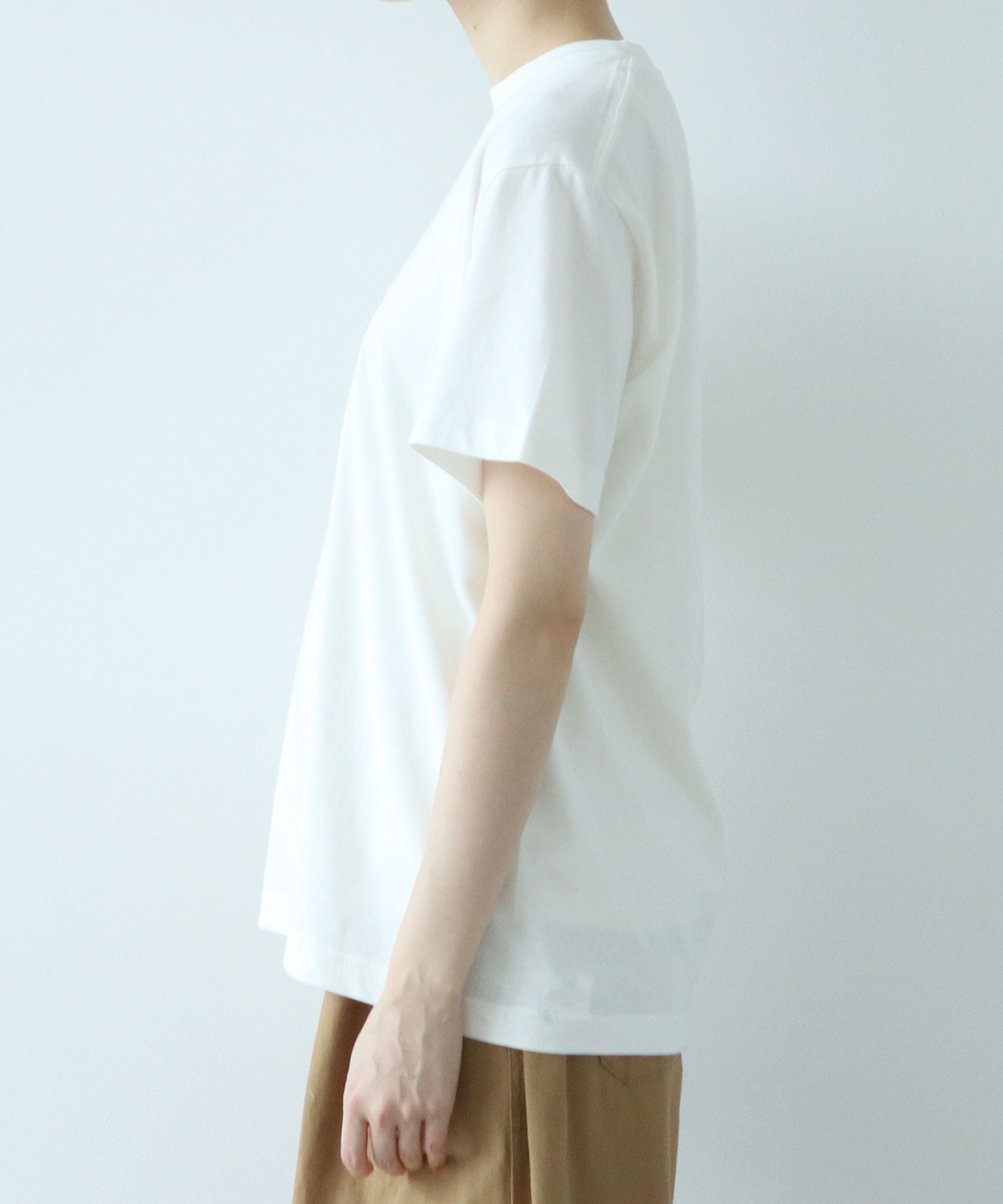 United Athleの5.6オンスのコットン100%ボディを使用。縫い上がった製品を一度洗いにかける製品水洗い加工を加えているので、味のある風合いに仕上がっています。ご家庭での洗濯後に縮みが起きにくいのも嬉しい。