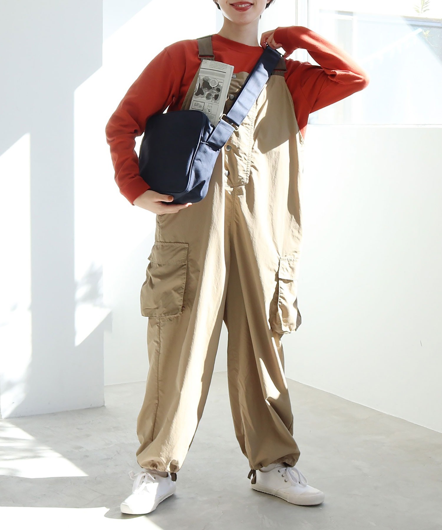 マチがしっかりとあるので、500mlのペットボトルや手帳、羽織りのシャツなどすっぽり入ります。中には携帯電話やハンカチなどが入るポケットが付いています。