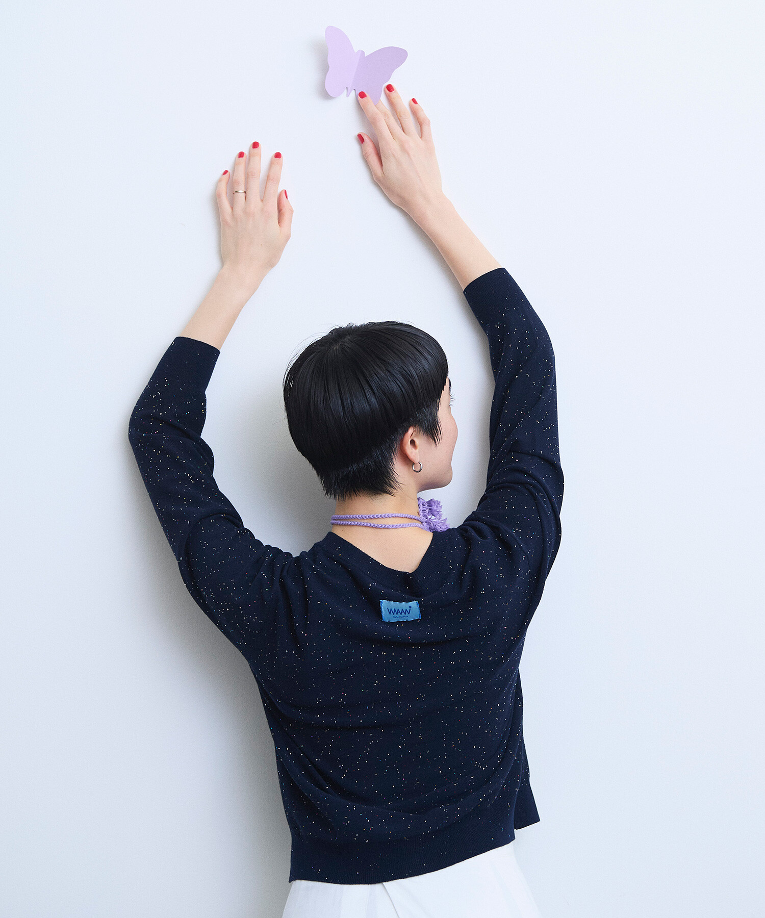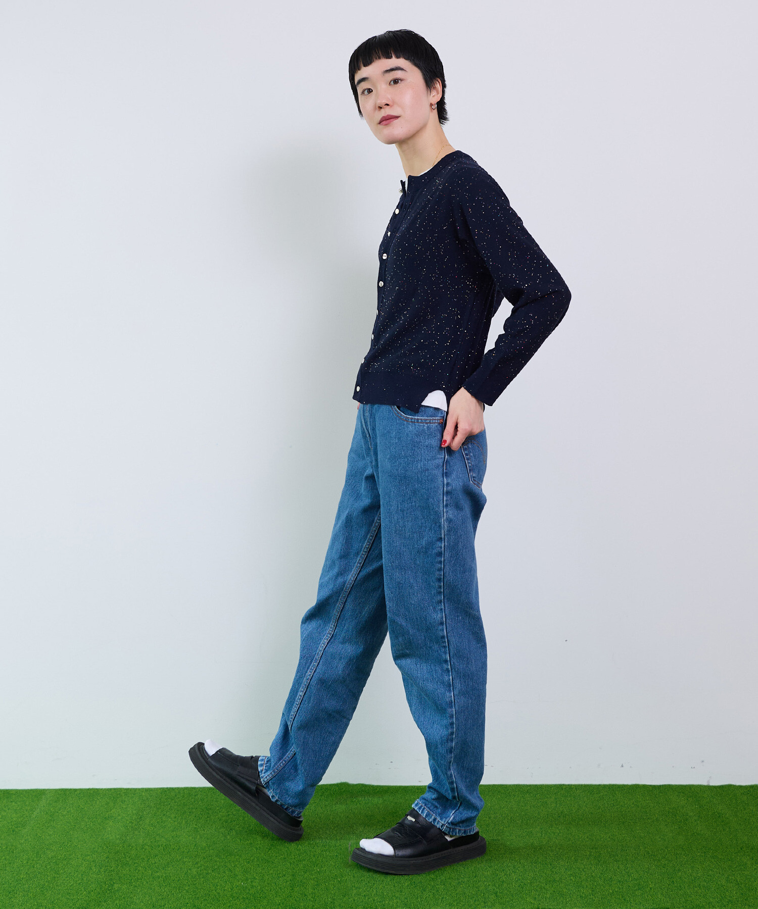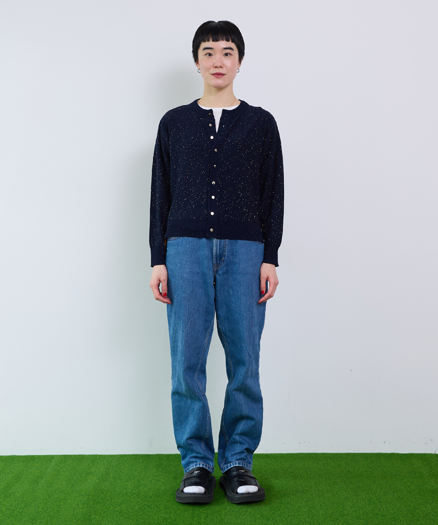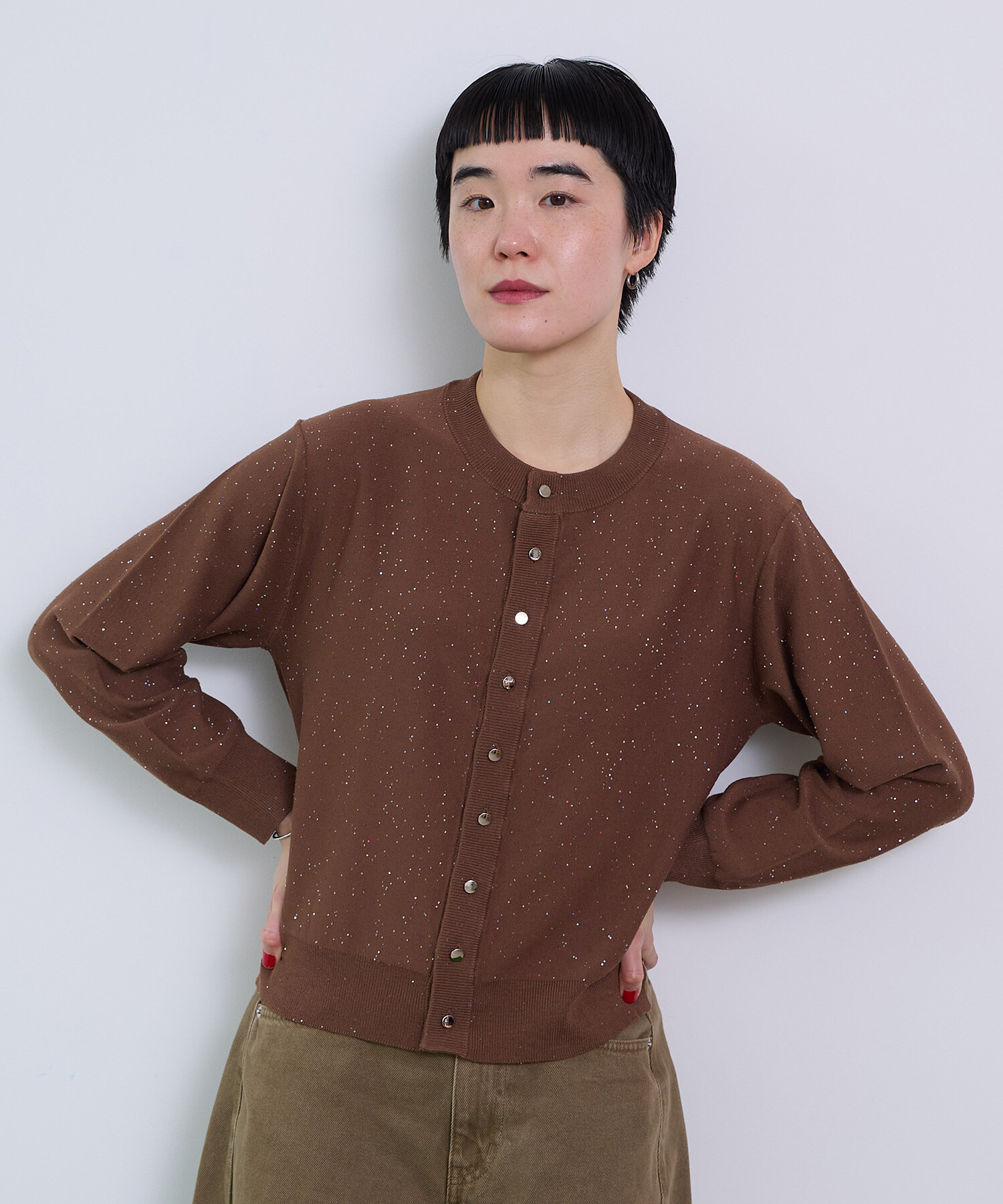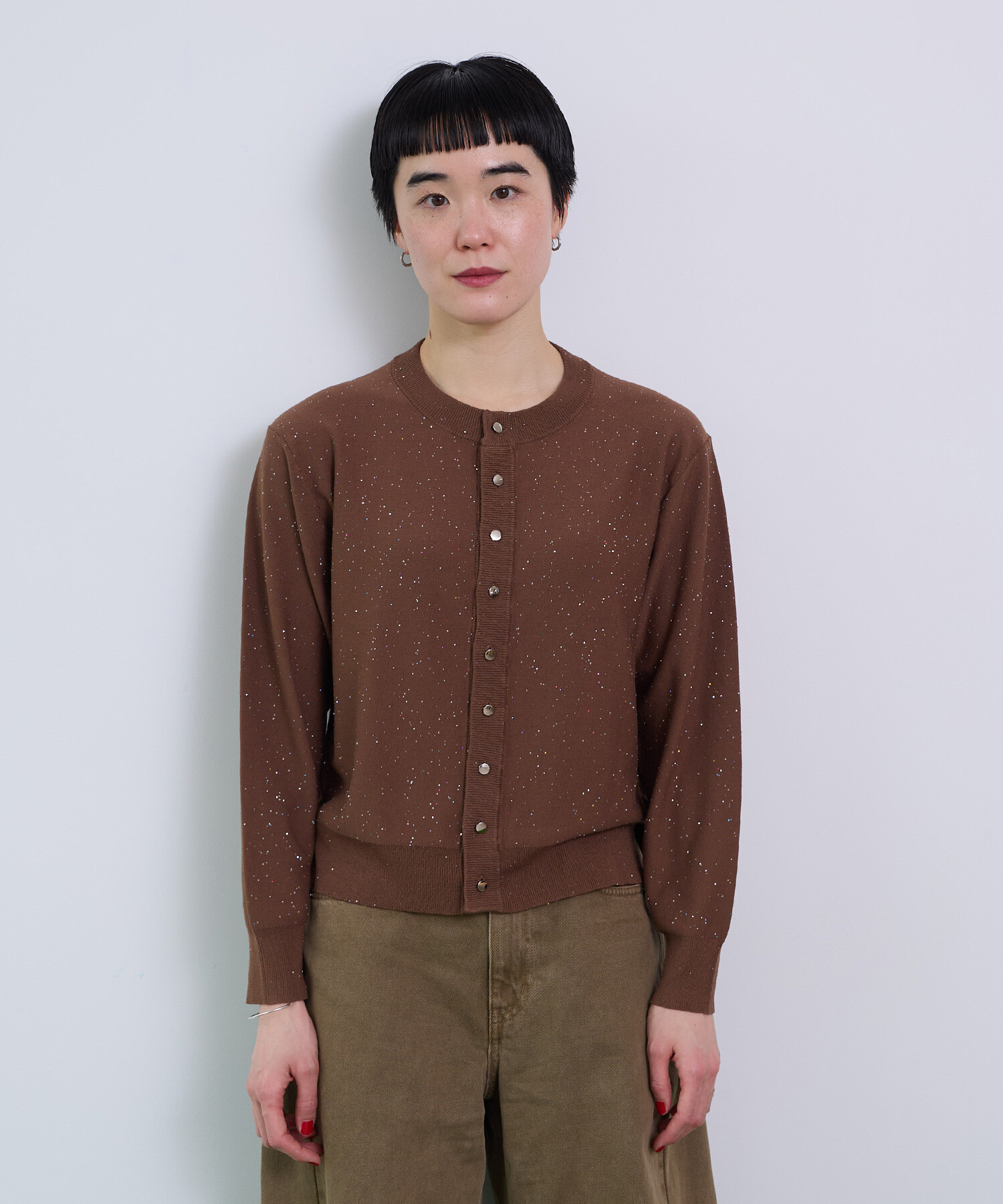 ※NAVYはサンプルです。 ※くるみ釦からシルバーのメタル釦に変更となります。 ----------------------- 透け感:なし 裏地:なし 伸縮性:あり 光沢感:あり ----------------------- 【素材の特性・お取り扱いの注意】 この製品は、スパンコールを使用しております。乱暴に扱いますと、破損致 しますので、丁寧に取り扱って下さい。又、強い摩擦等により、変色及び表面がはがれてしまう事がありますので御了承下さい。尚、スパンコール部分へのアイロンは、変形、変色す る場合がありますので絶対に避けて下さい。 この製品は、レーヨン素材を使用している為、水に濡れると強度が落ちます。水に濡れたり、ひっぱったりすると破れる恐れがありますので御注意下さい。 この製品を洗濯する際には多少縮む場合がありますので必ず裏返しにして押し洗いをする様にして下さい。又、形を整えてから日陰で平干ししてください。タンブラー乾燥はお避けください。また、着用しての過度な運動や荷重のかかりやすい動作は、素材が伸びやすくなる為、極力お避け下さい。