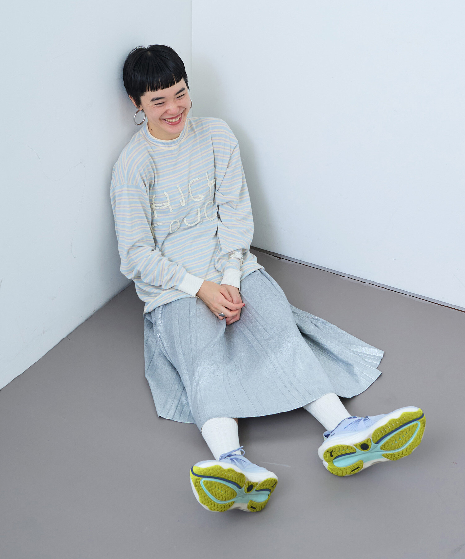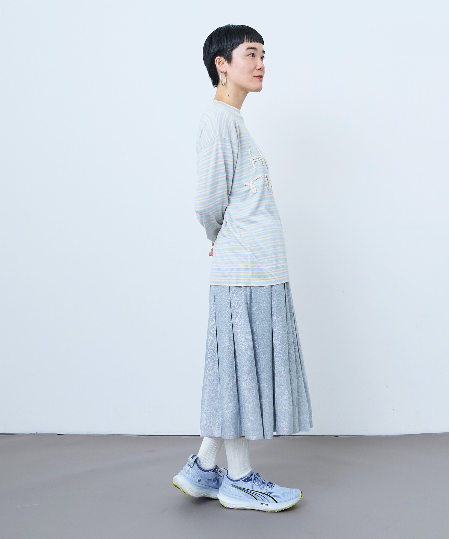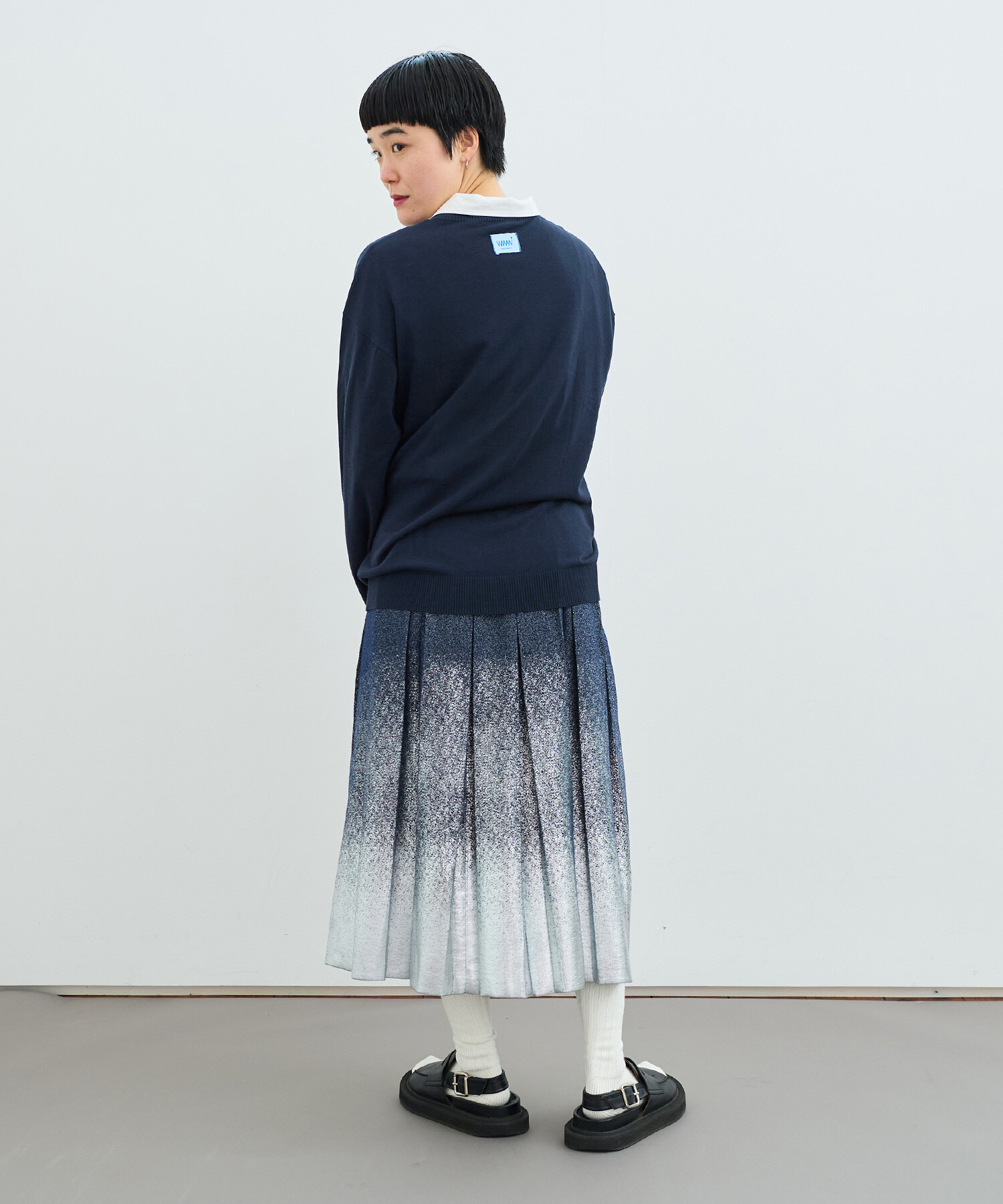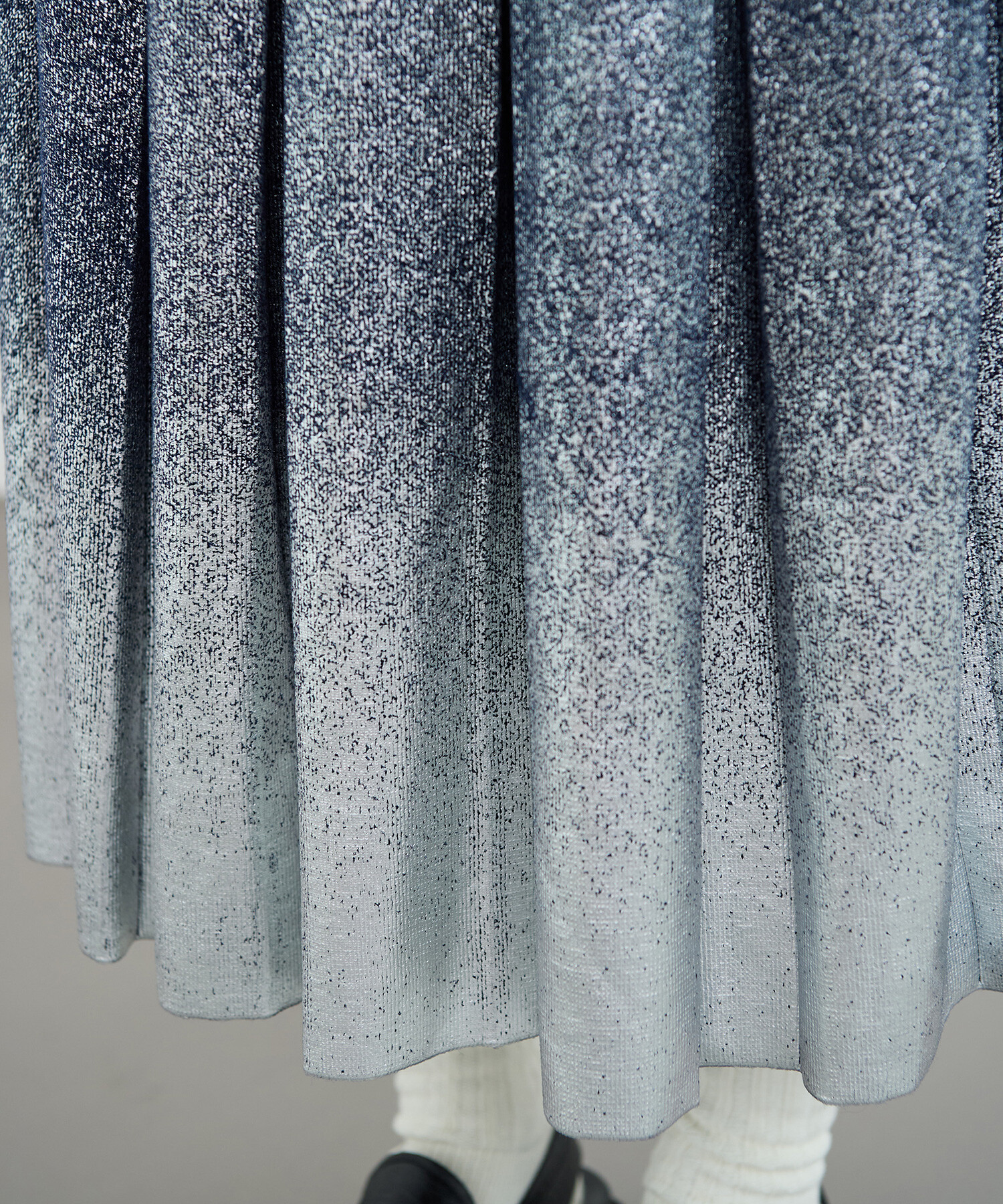 ボックスプリーツをニットで表現しました。