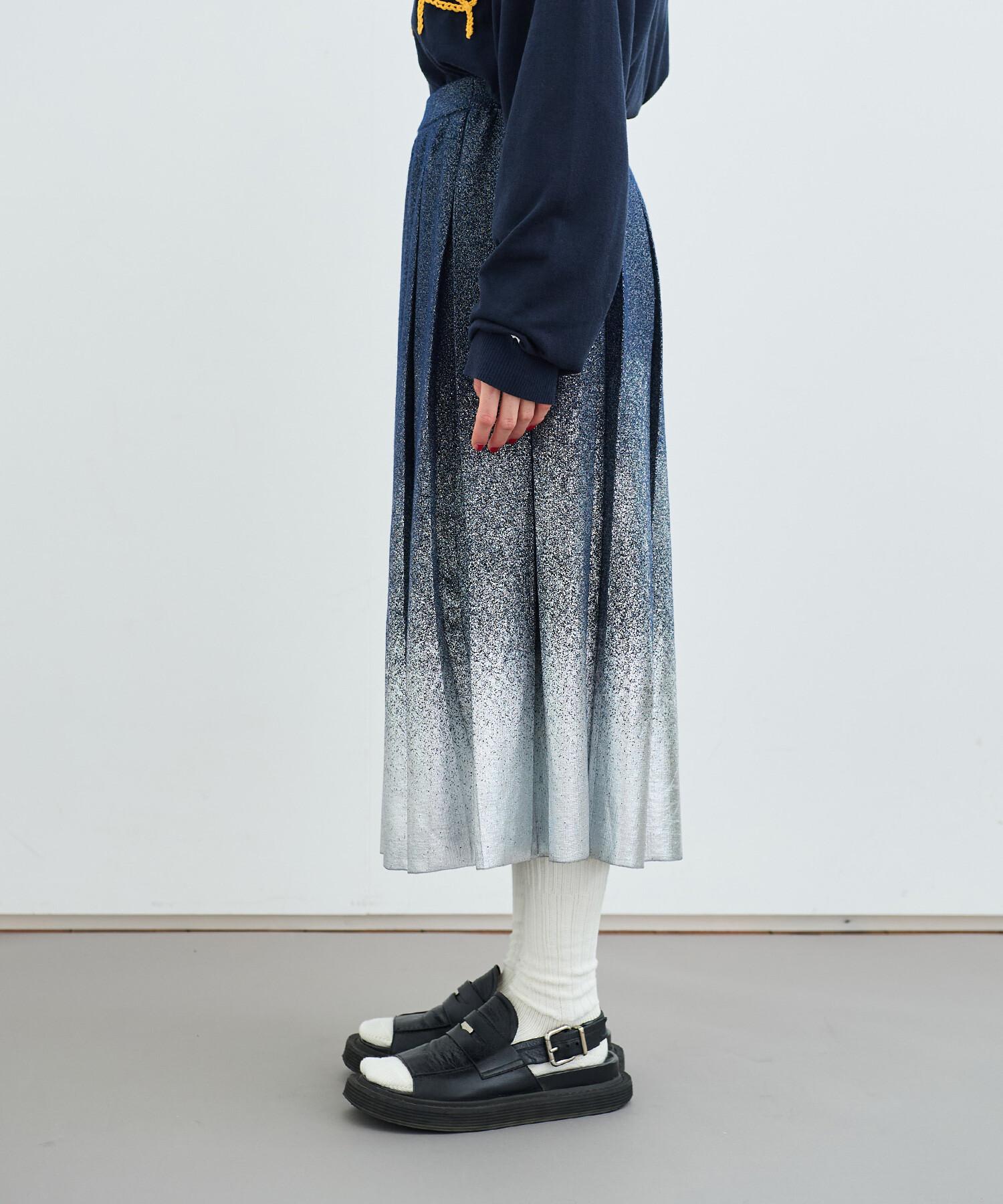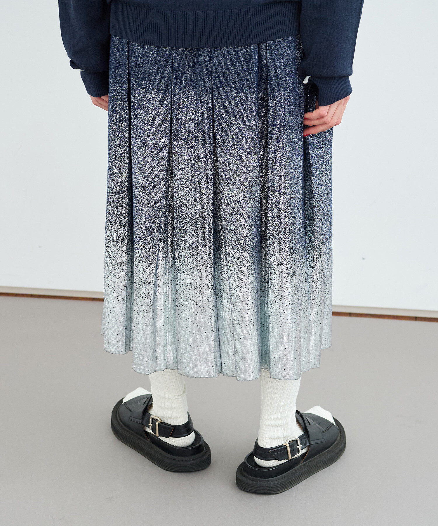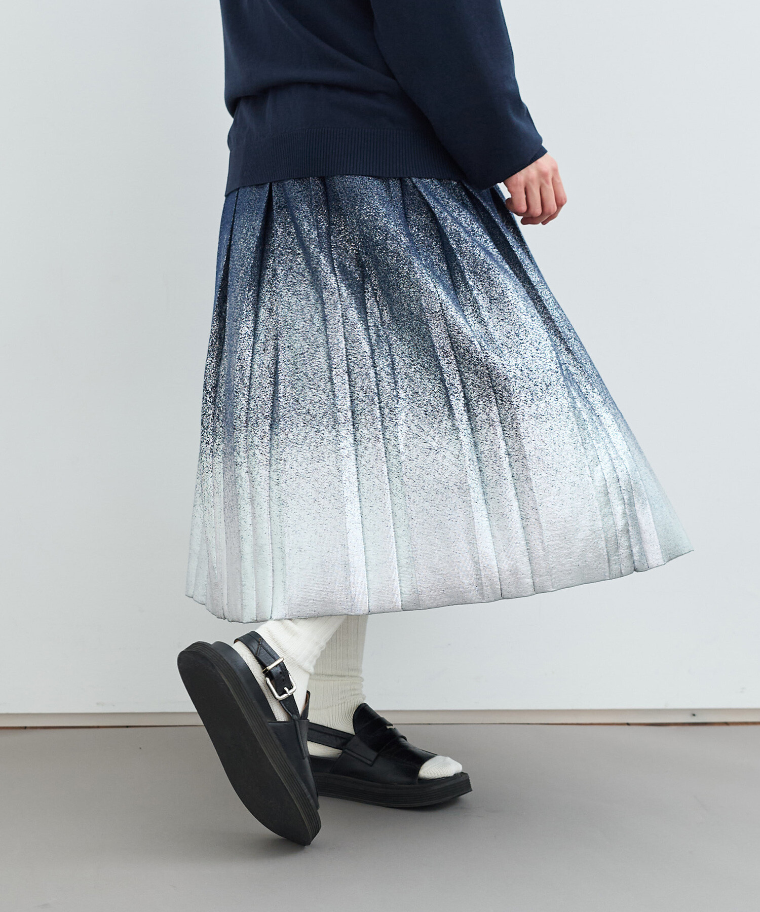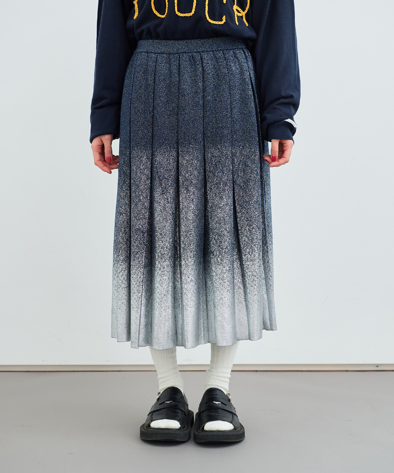 〇METALIC PLEATS ロングスカート
