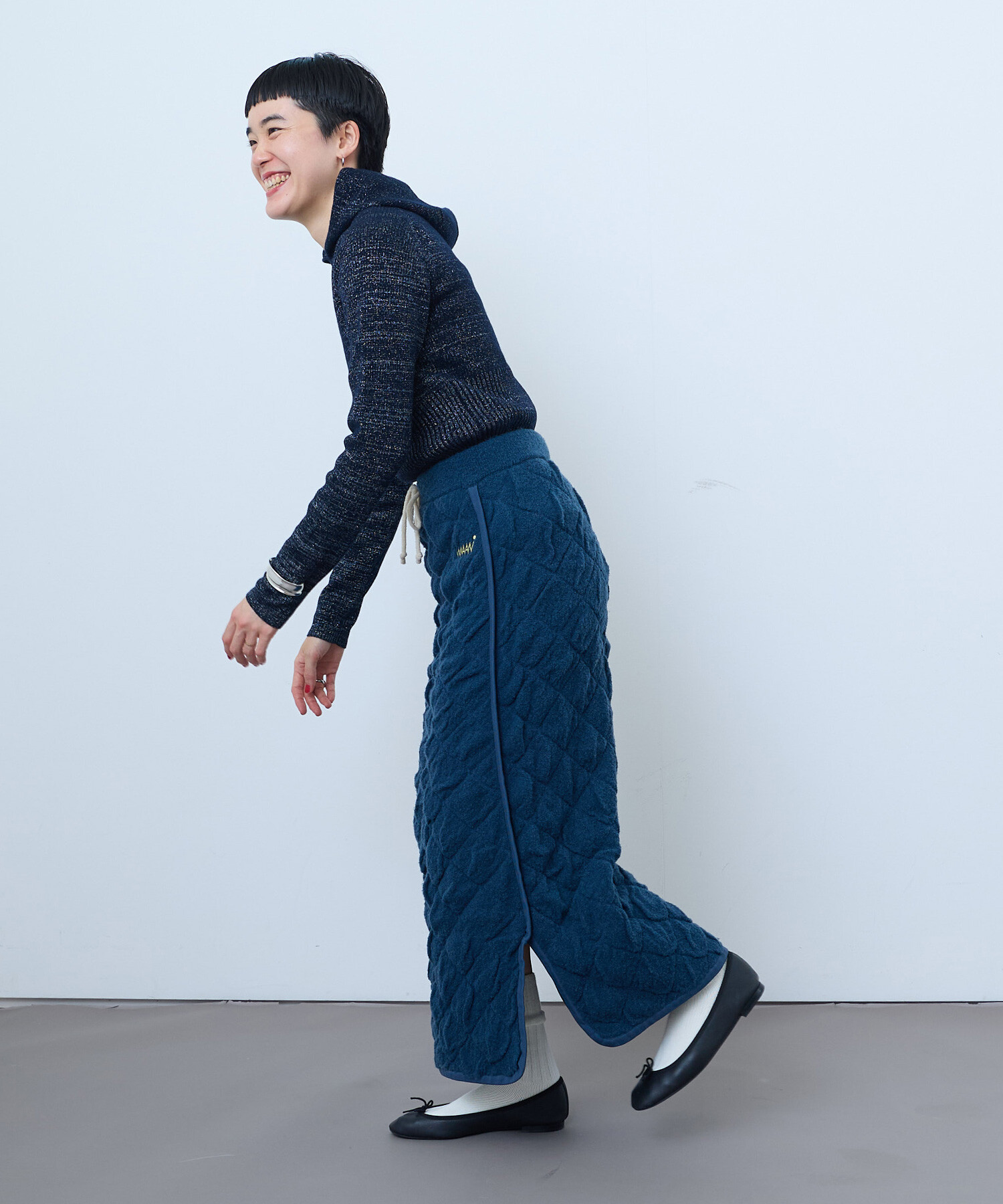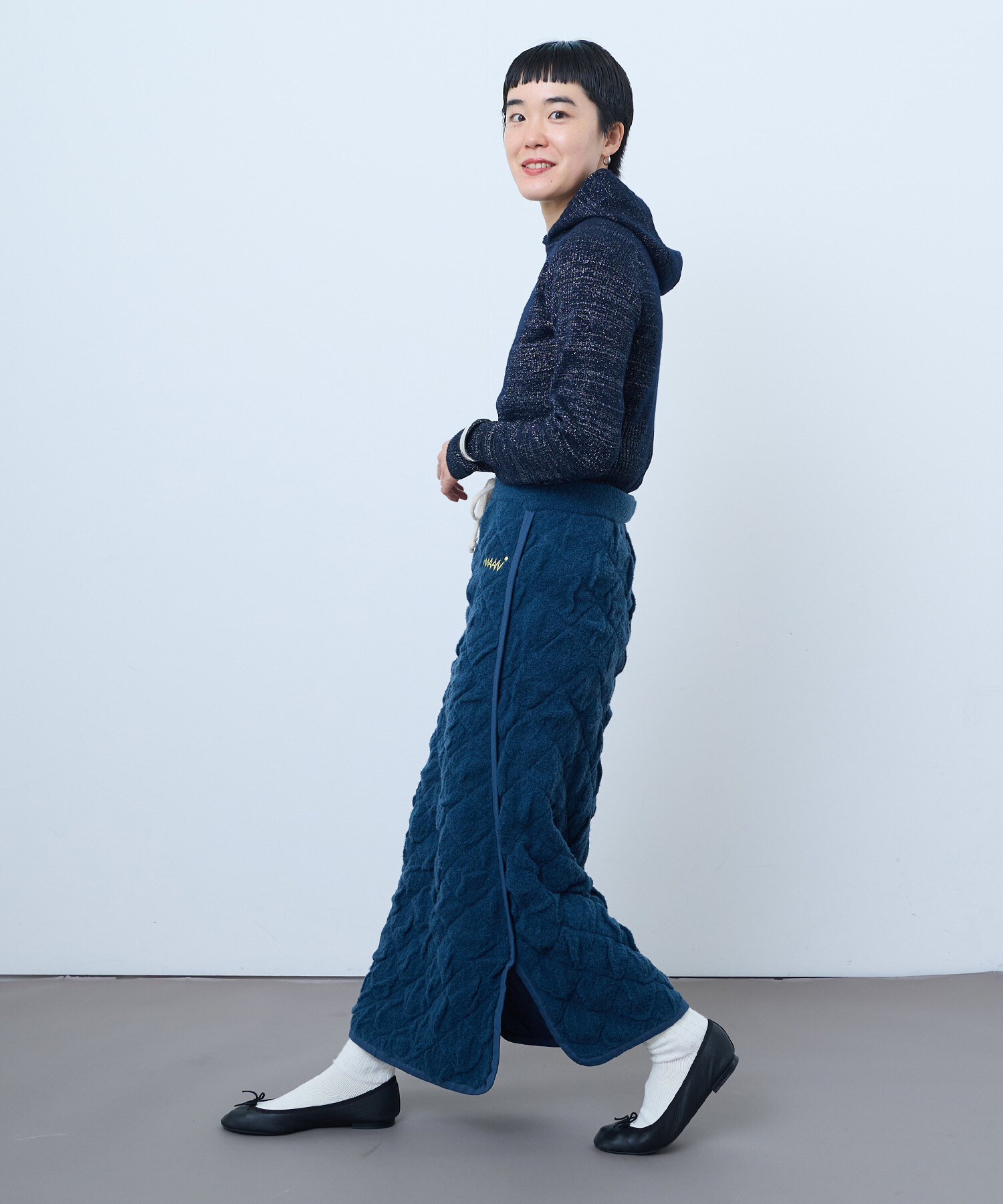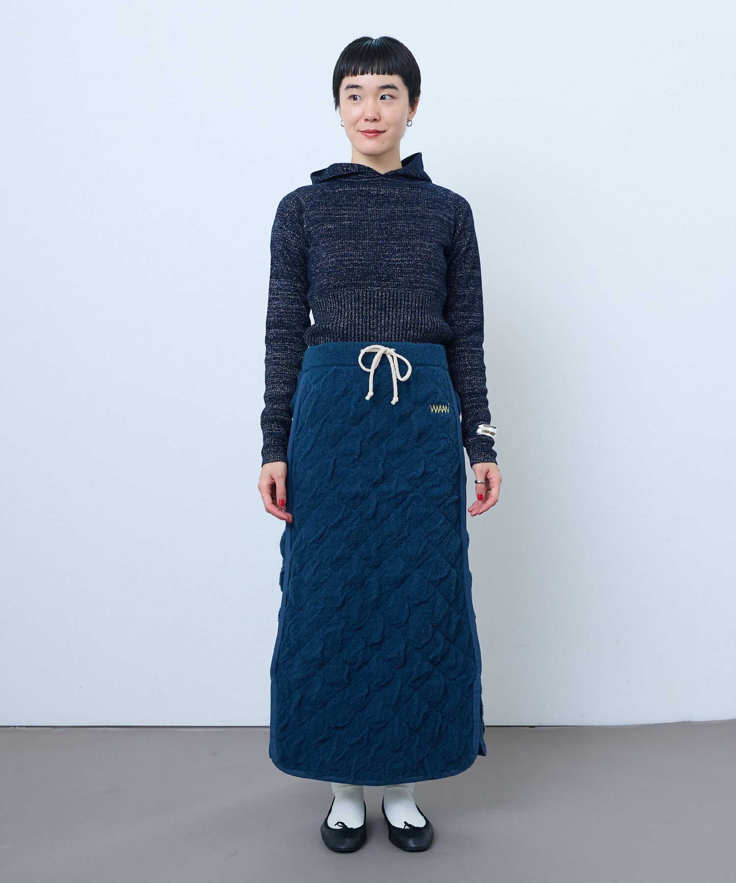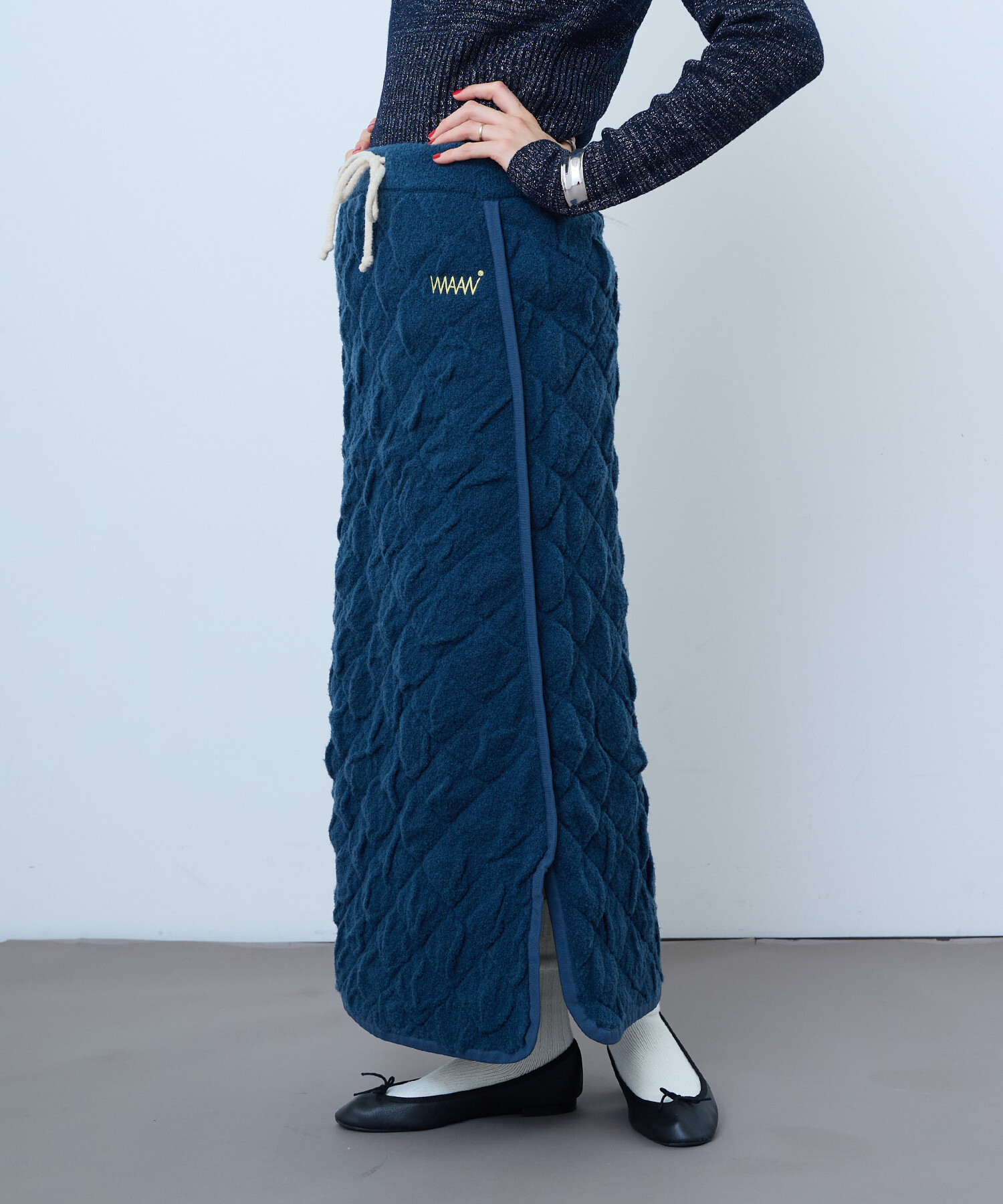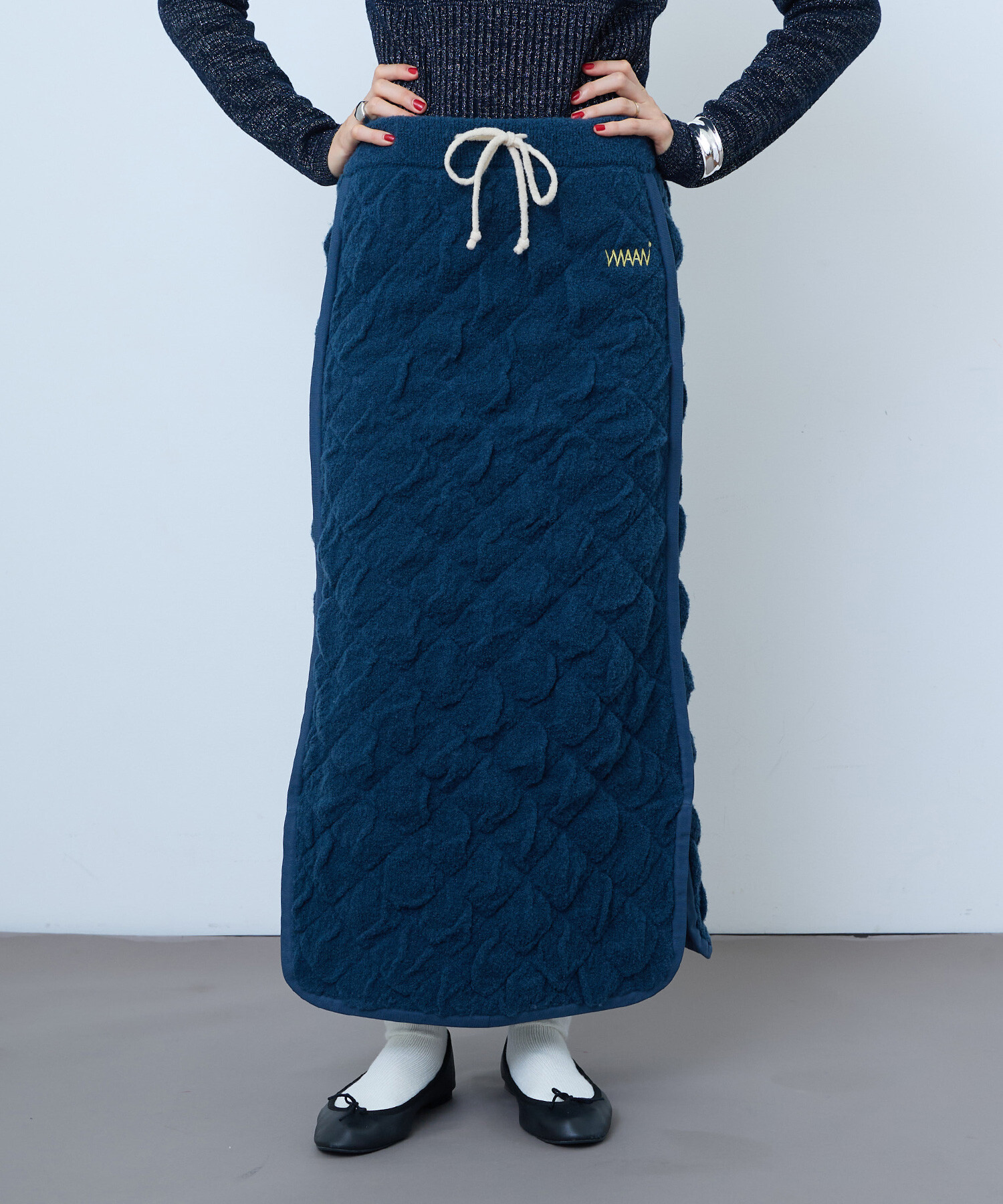 WAANの秋冬にぴったりなあたたかさと遊び心のあるロングスカートです。