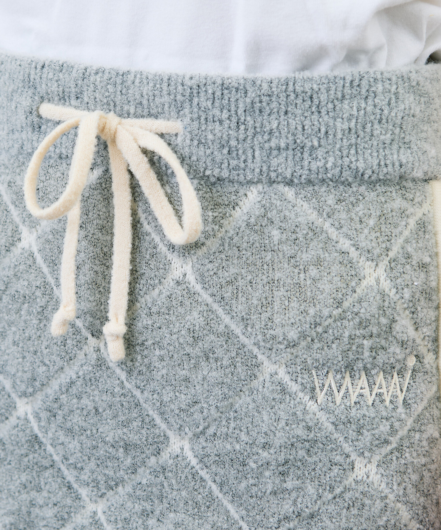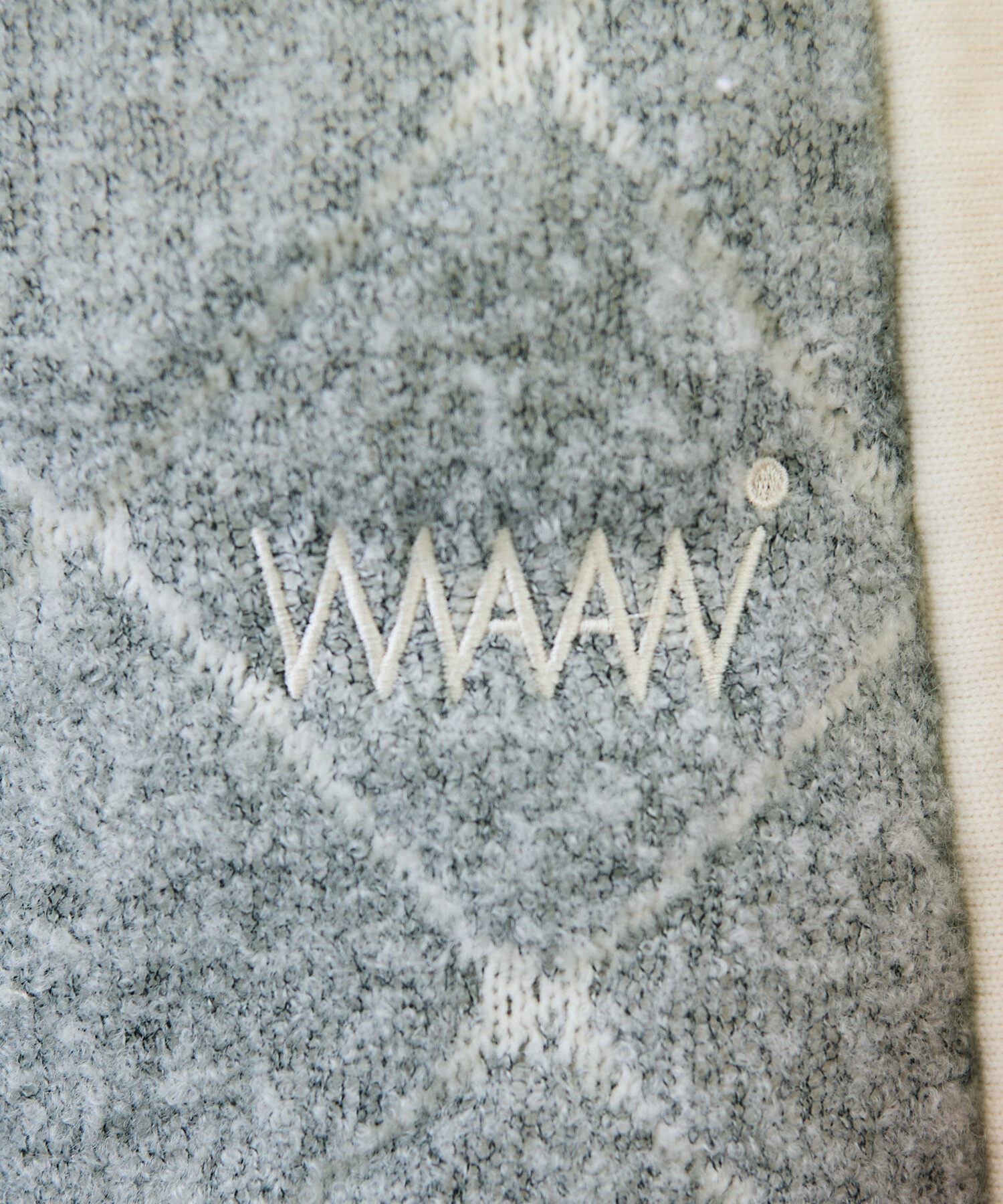 袋編みのダブルジャカードが空気を含み、軽くて暖かな着心地です。