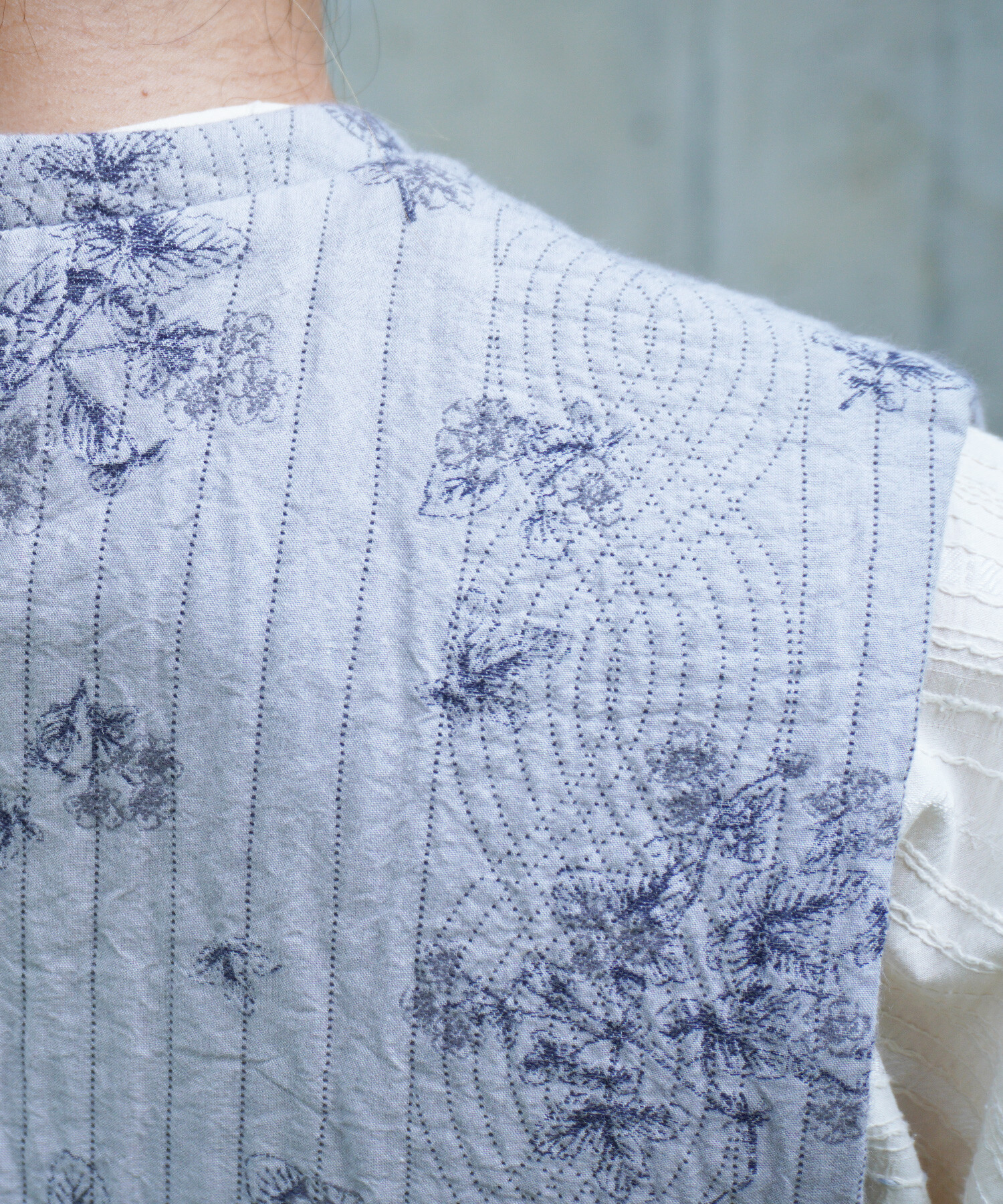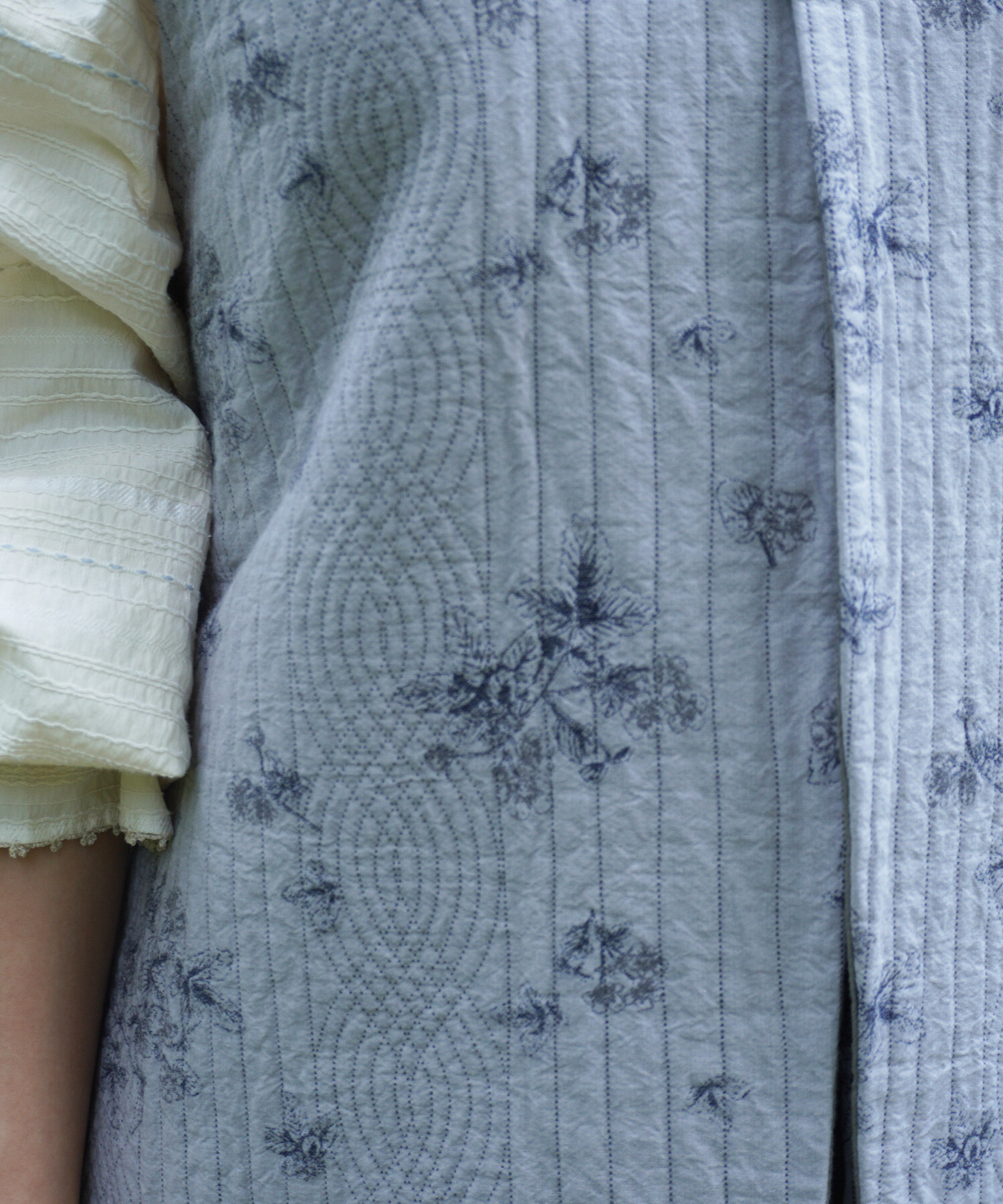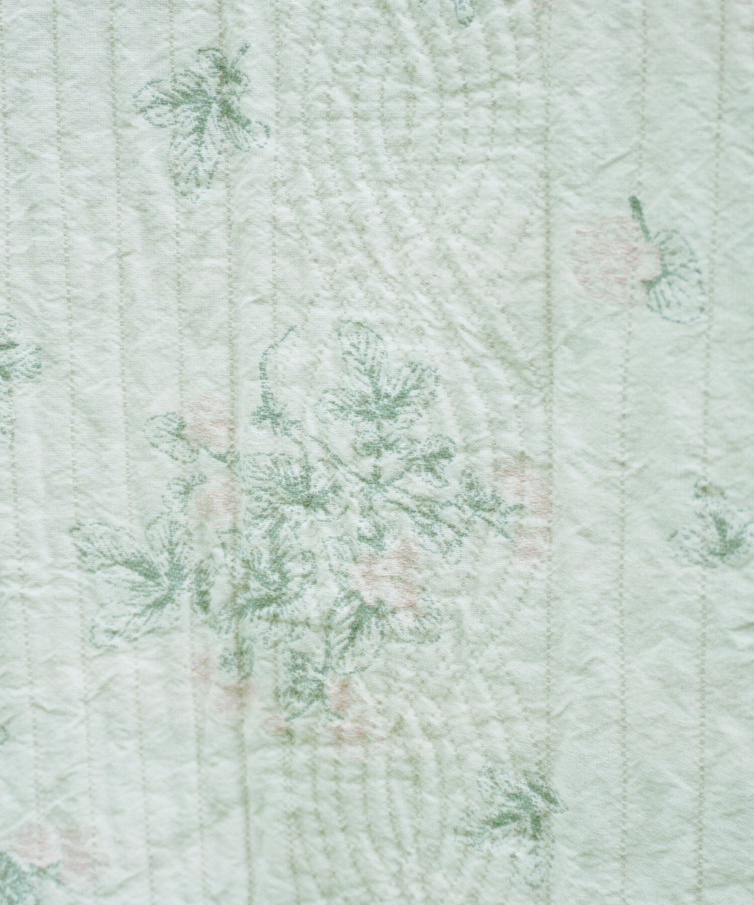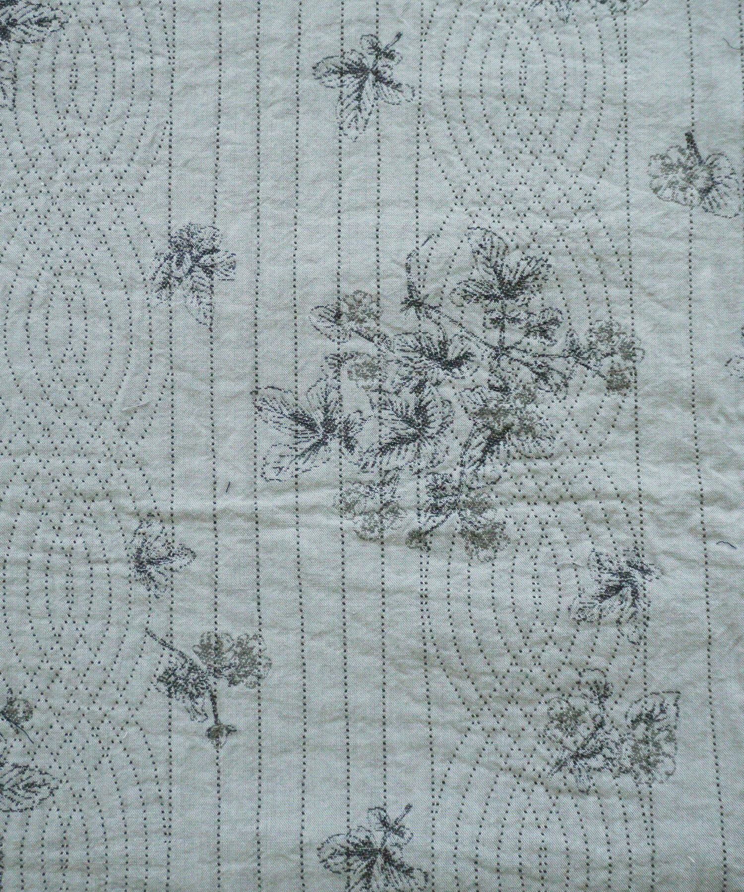 繊細なお花の織り模様の上から、キルトステッチを施したような、