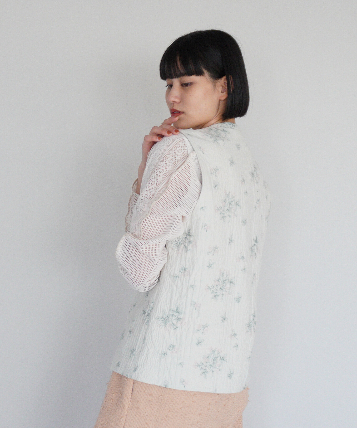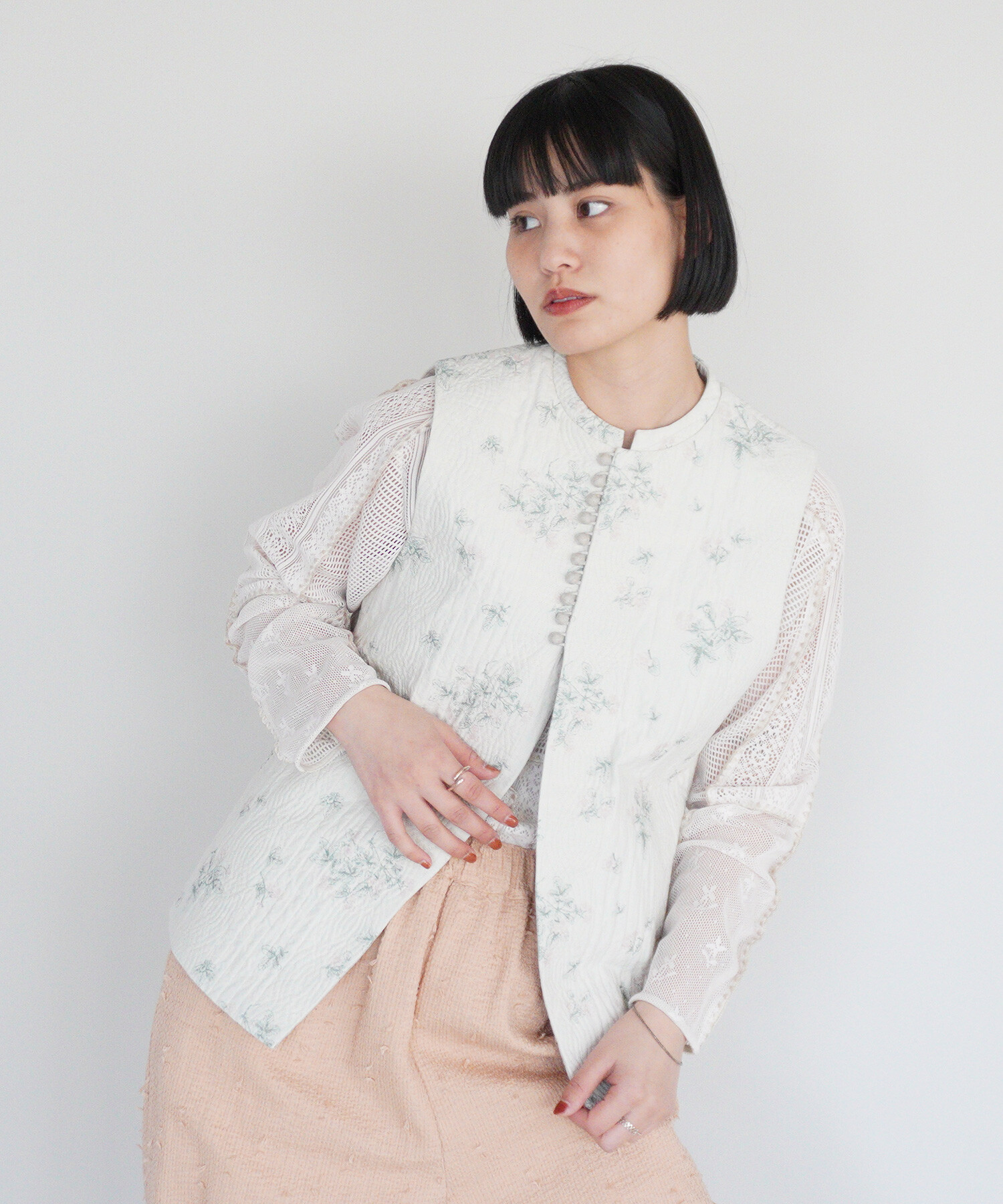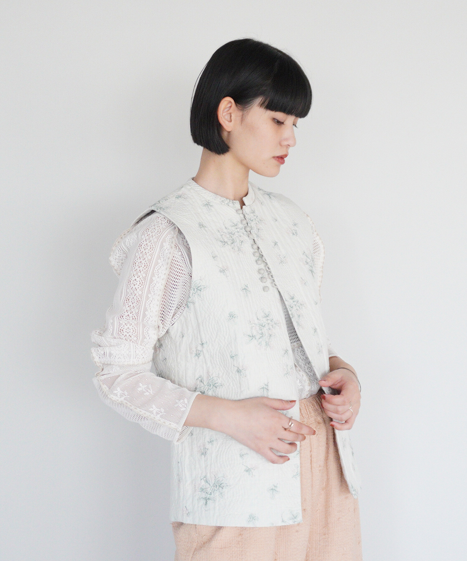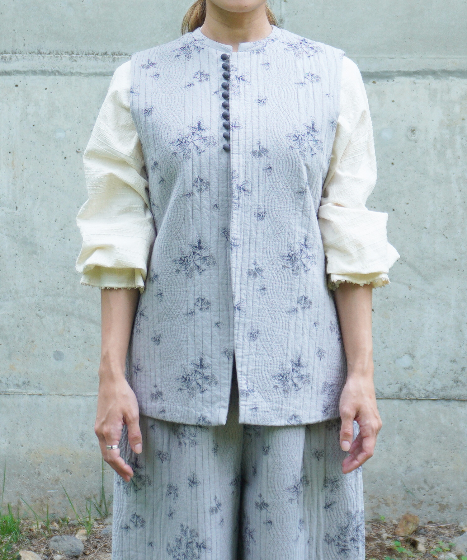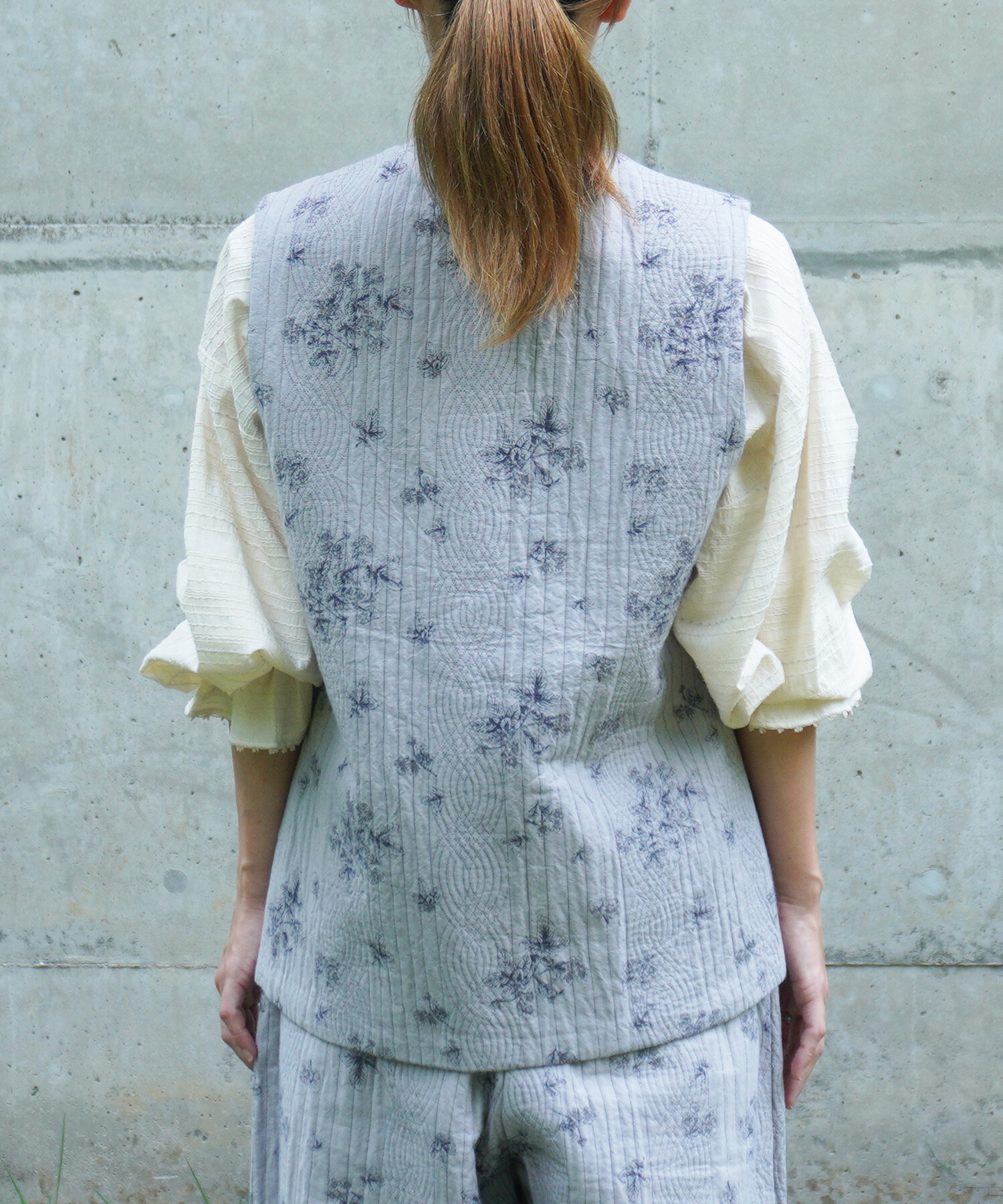 繊細なお花の織り模様の上から、キルトステッチを施したような、
