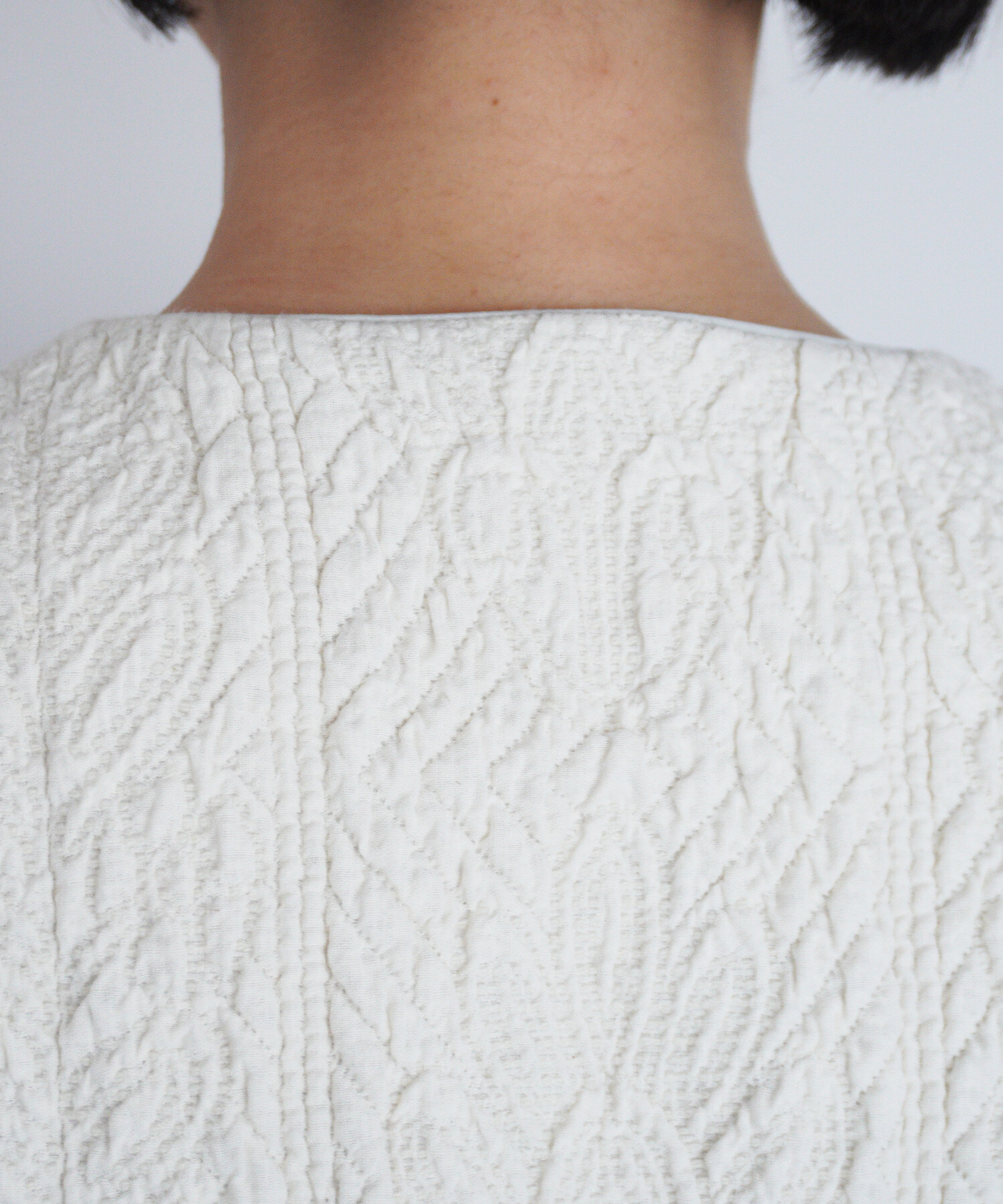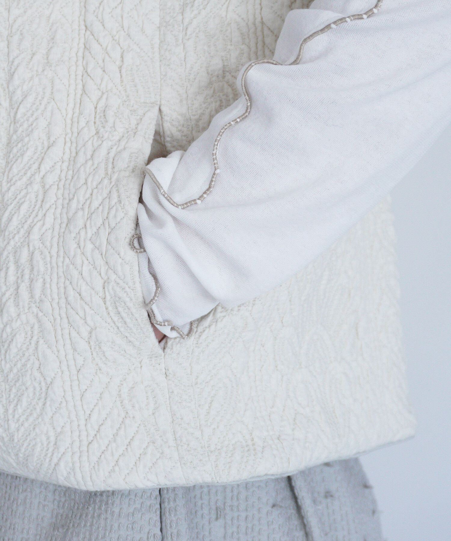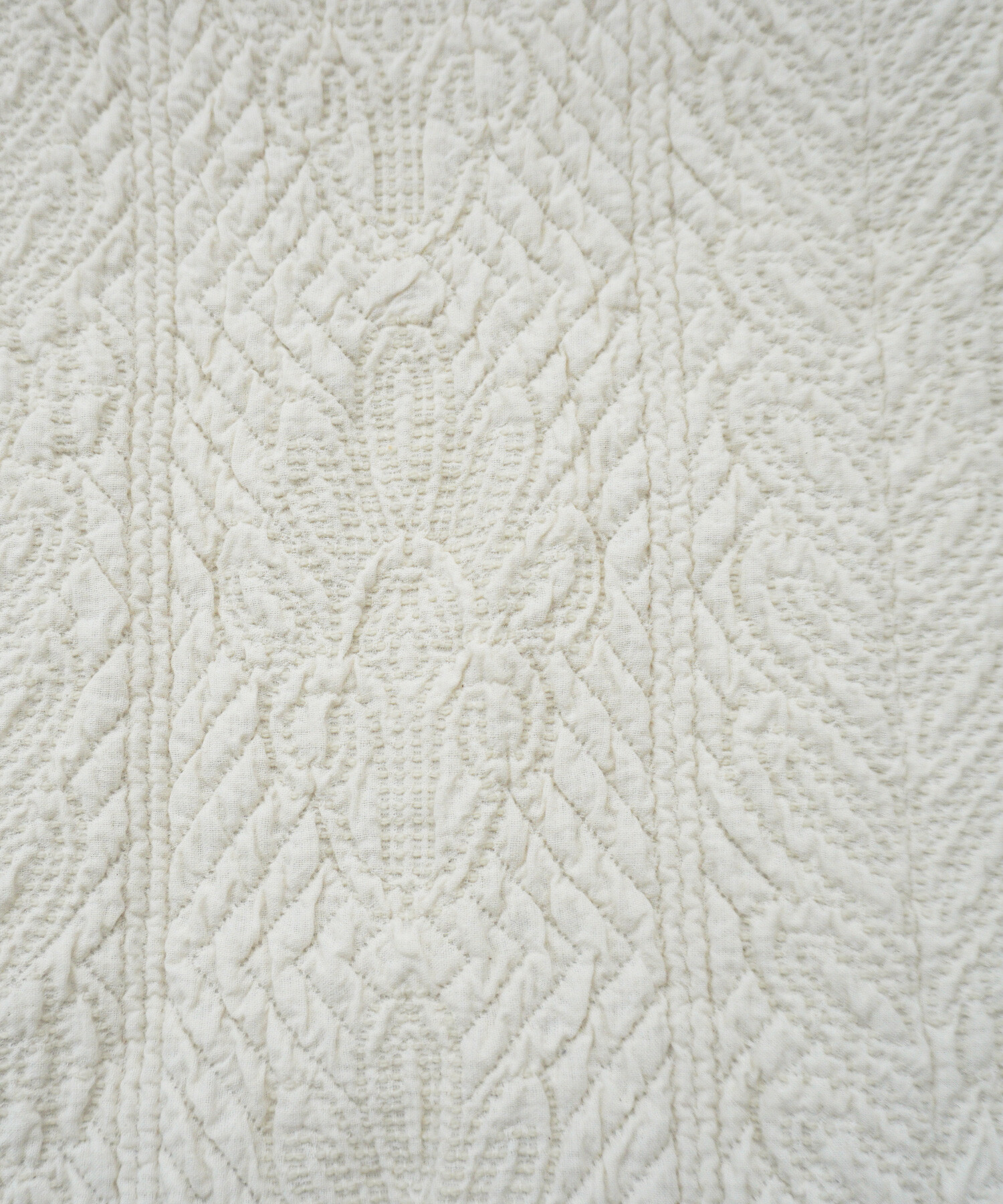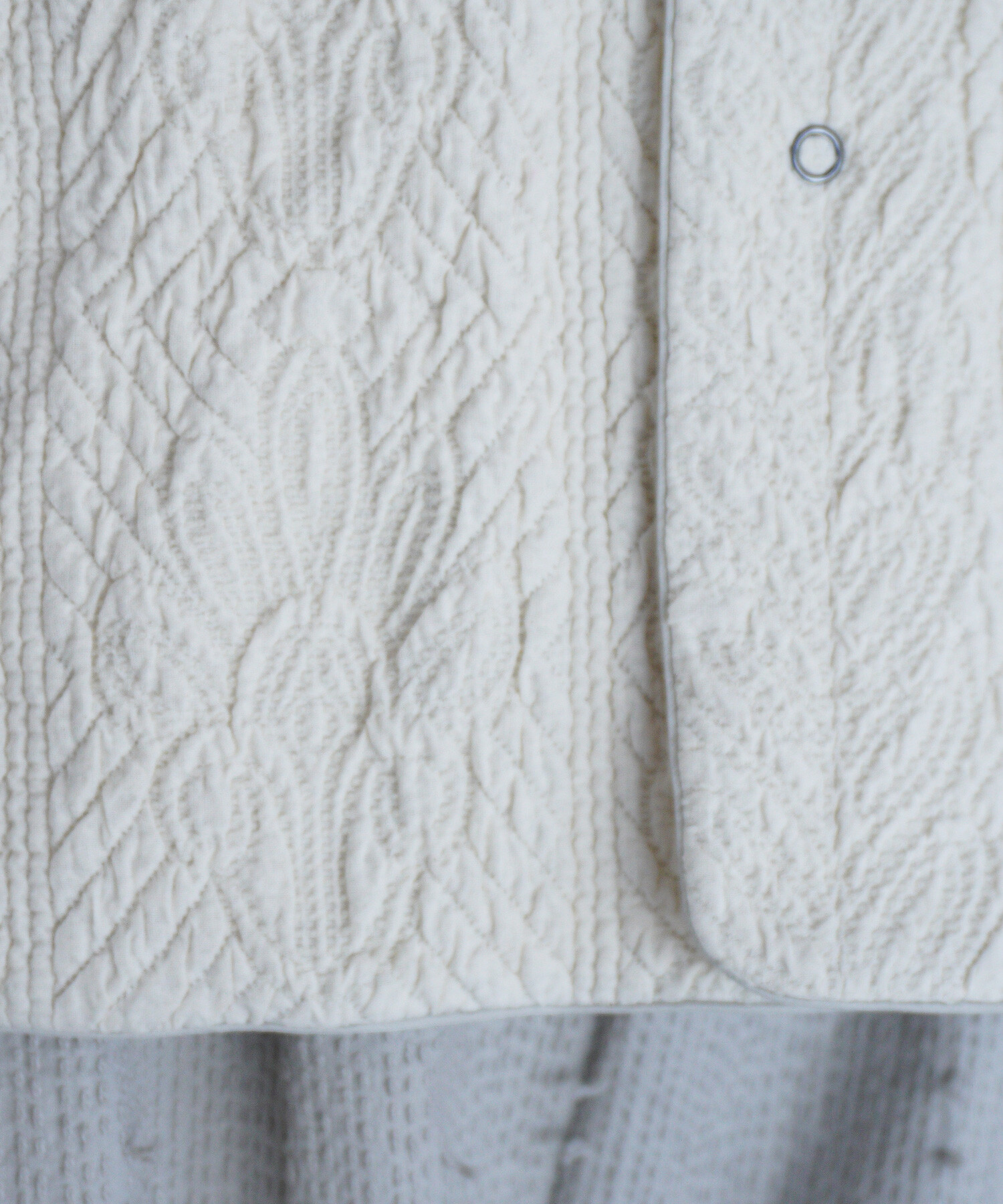 キルトを入れながら手で刺繍したような、ふくらみのある生地です。