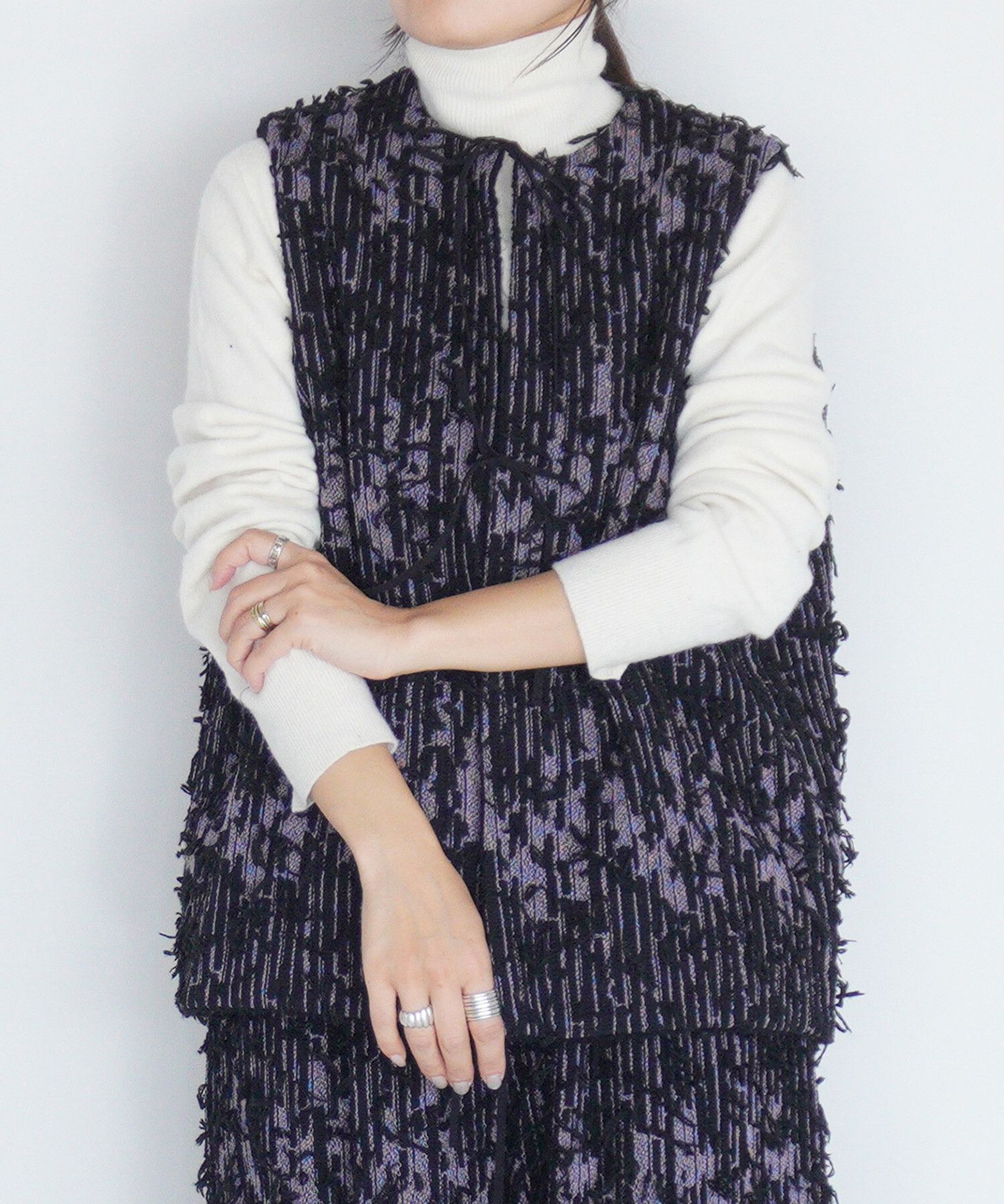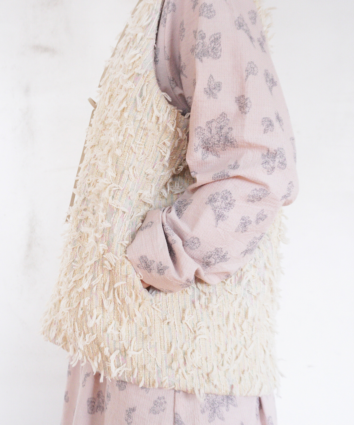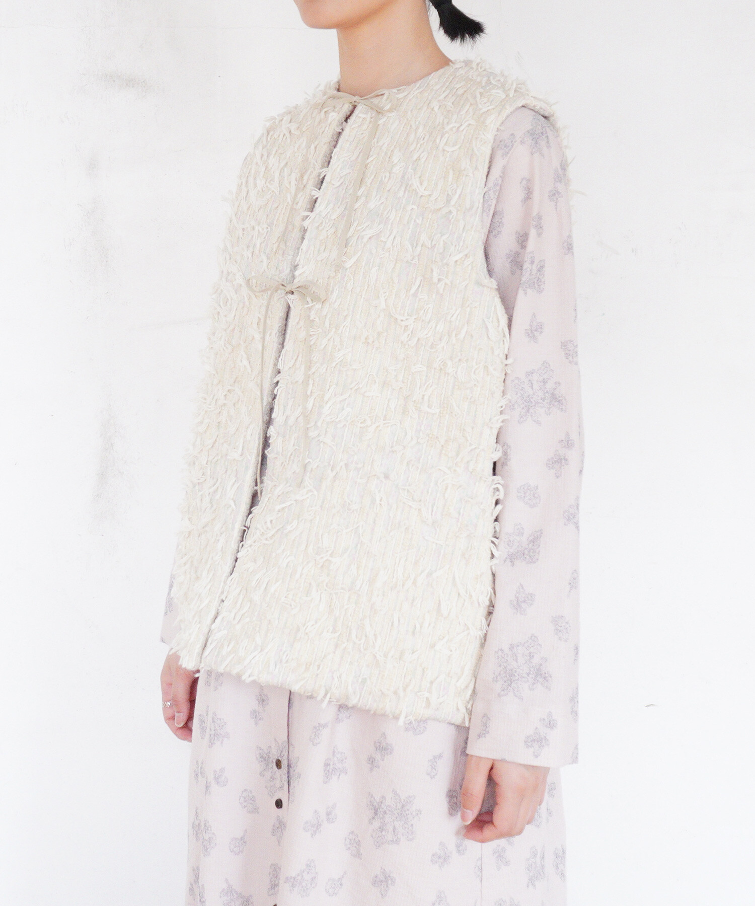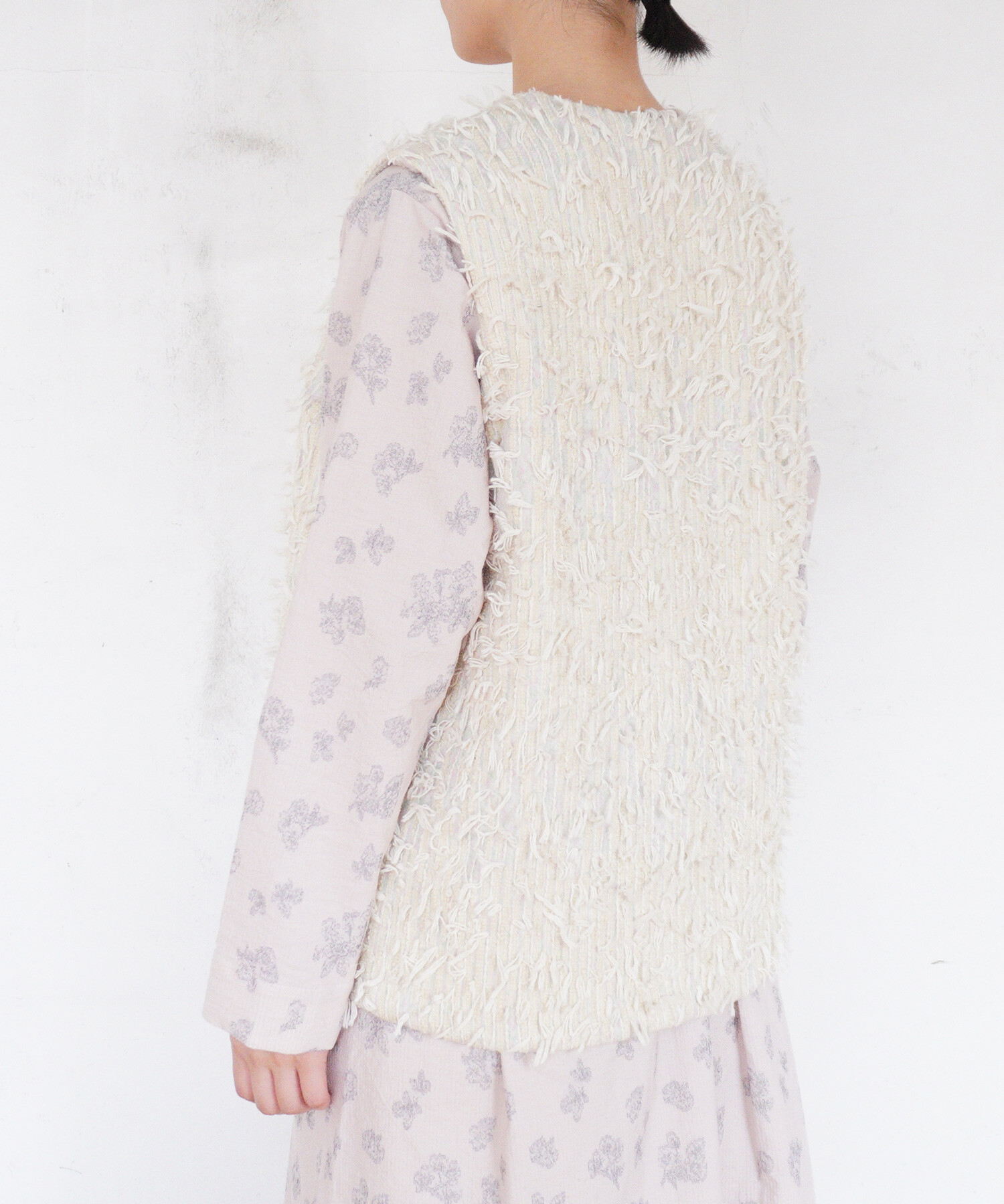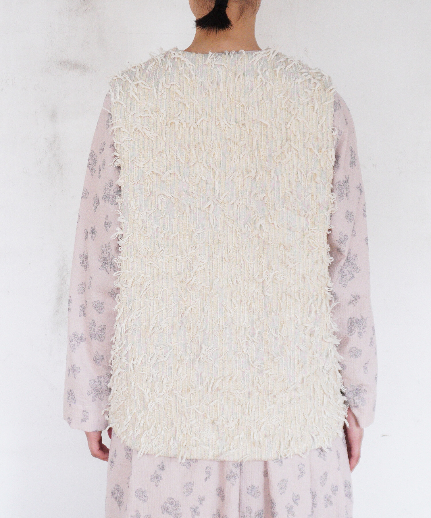 裏側はウールのボアを使用し、リバーシブルで着用いただけるベスト。