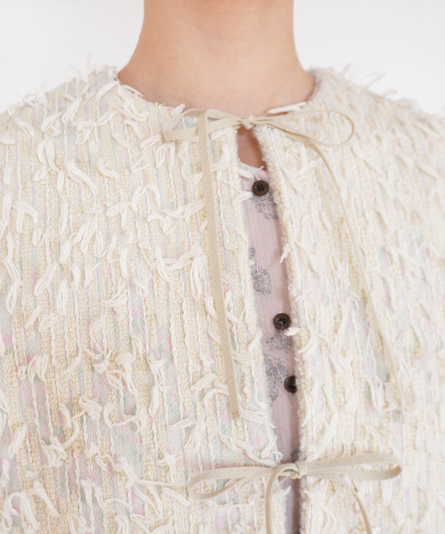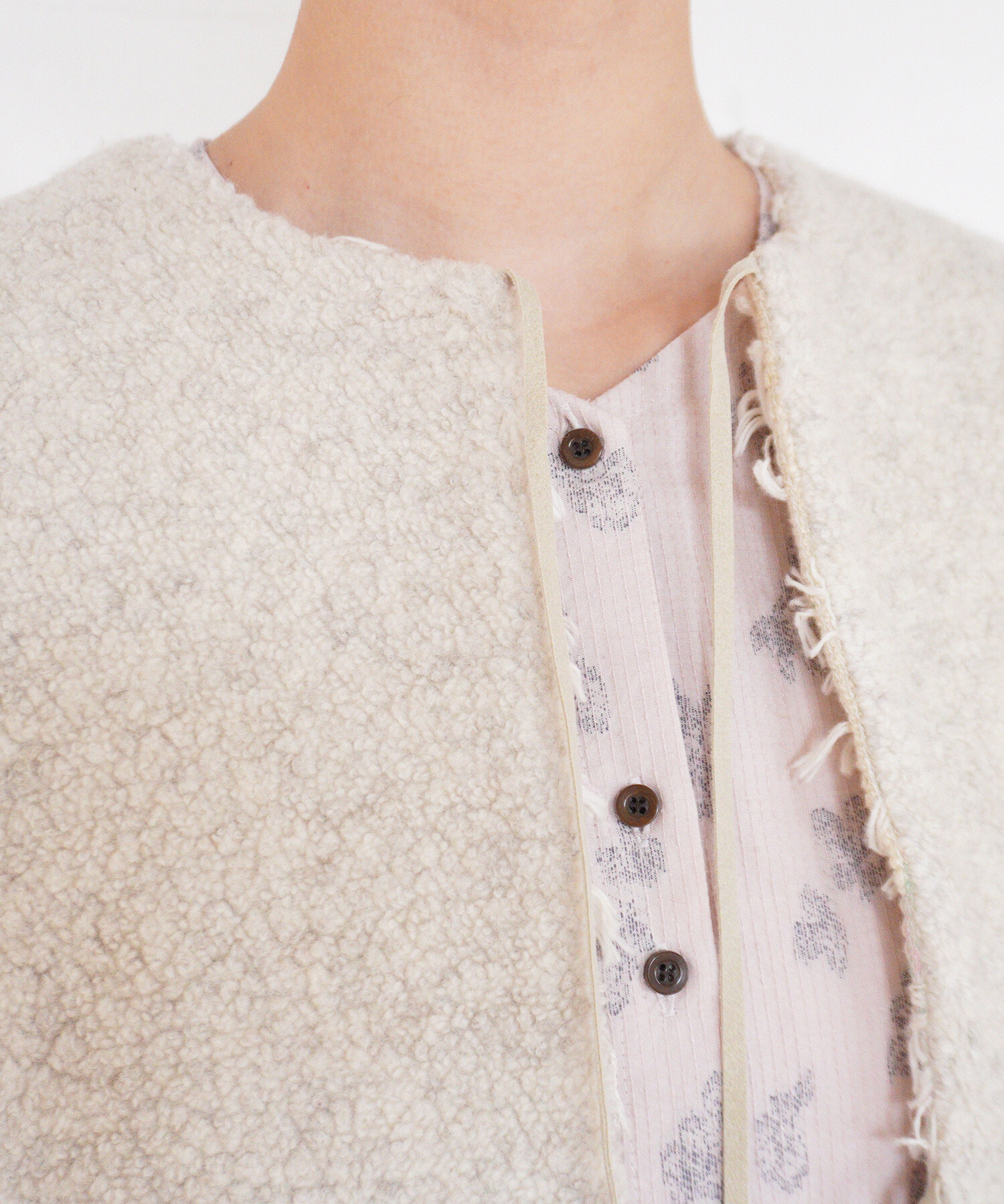 ・ボア部分は着用中の摩擦になどにより毛羽が付着しやすいですが、その場合はブラッシングでなどで整えてください。