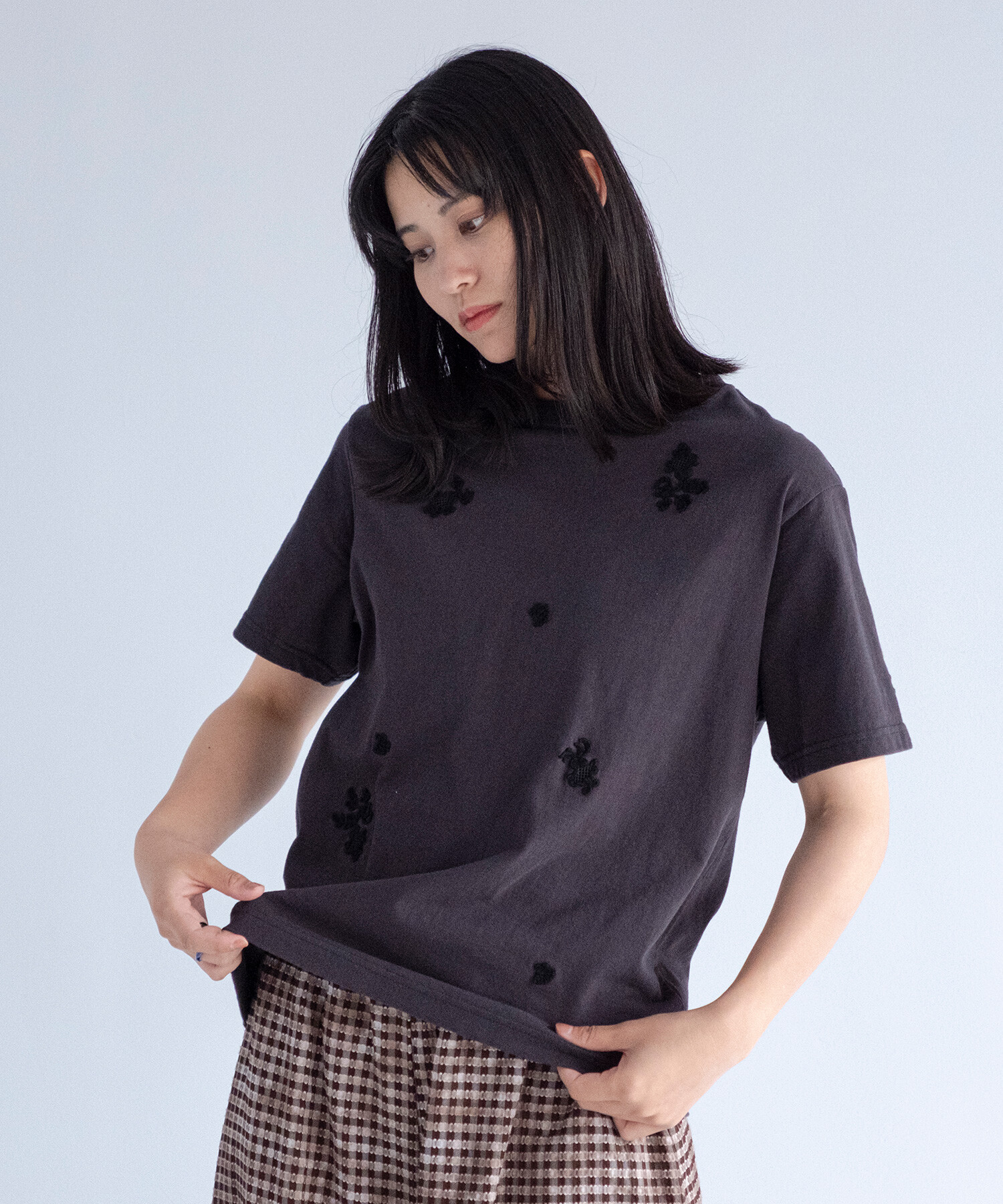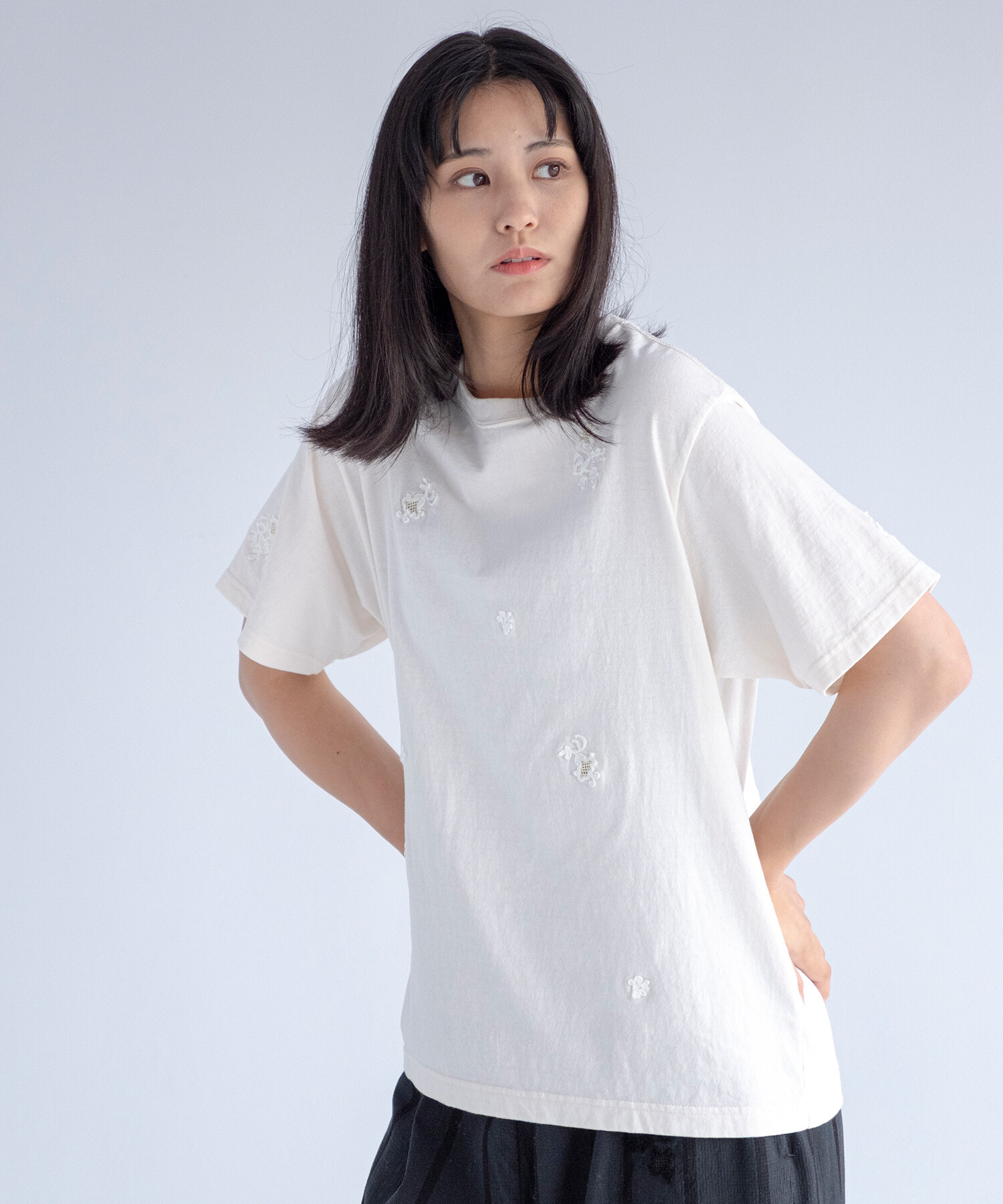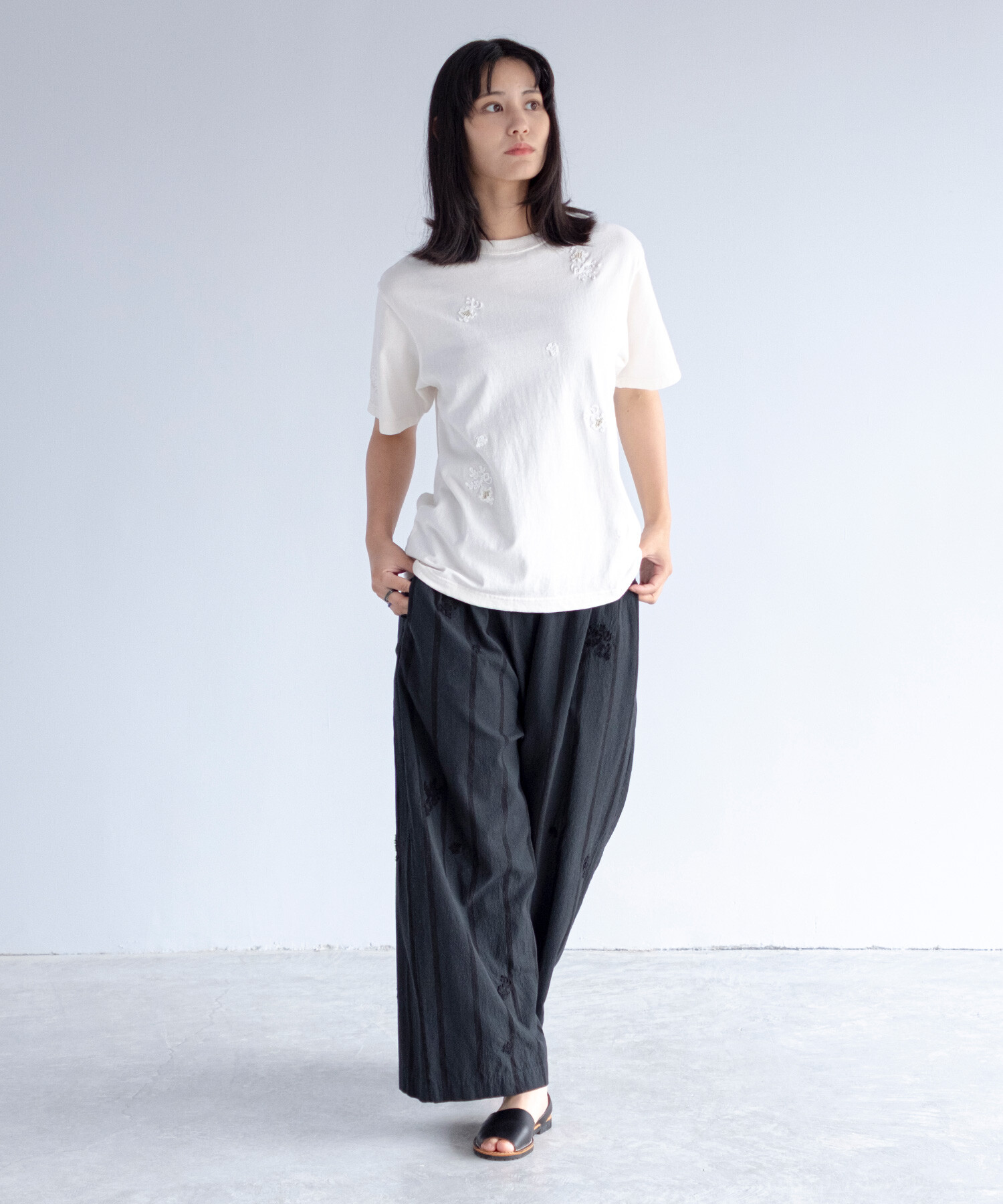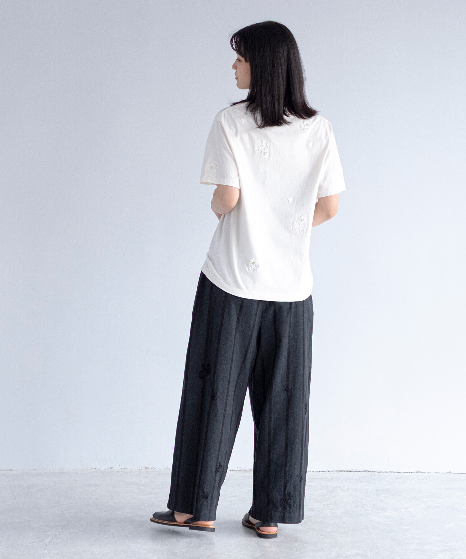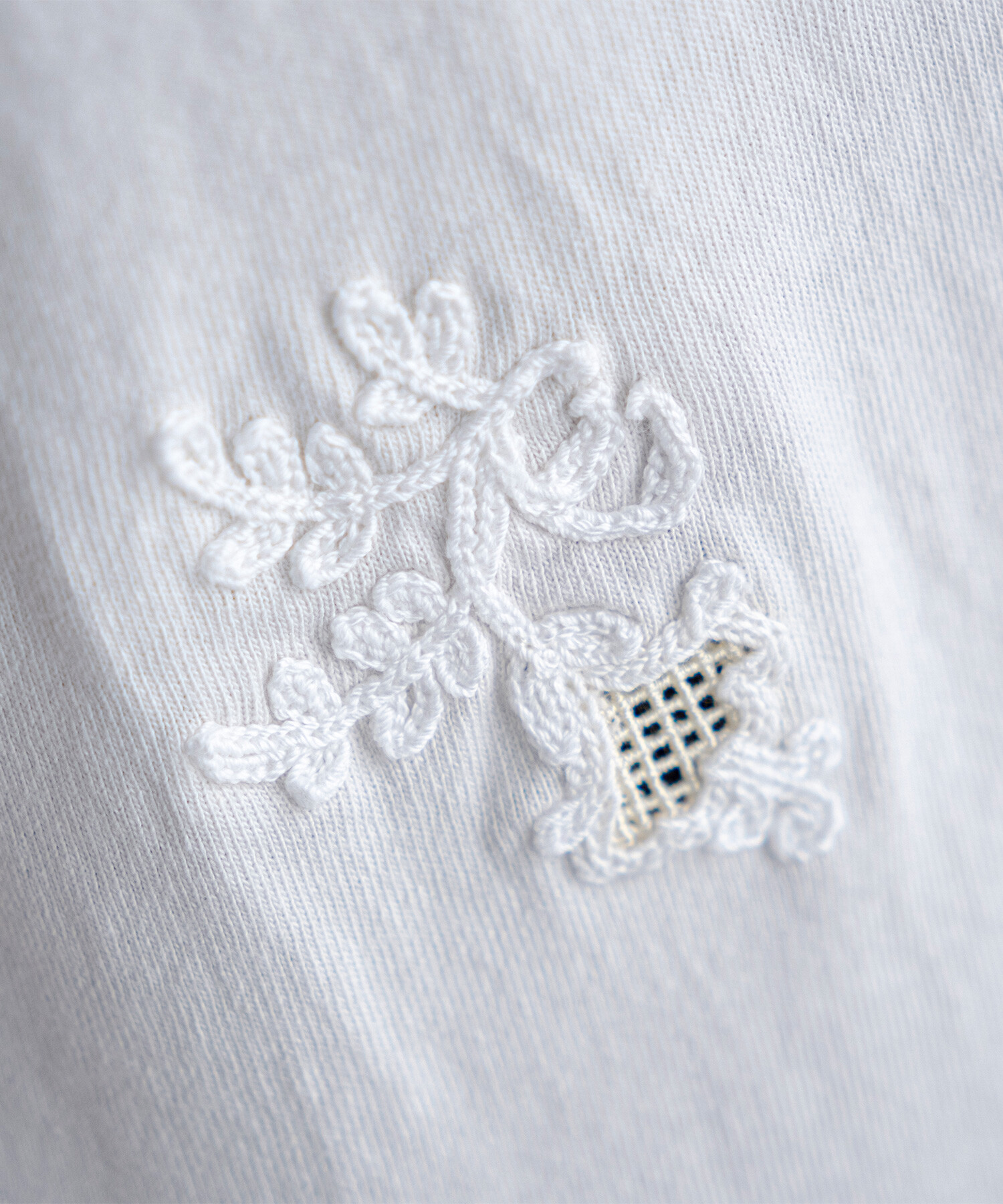 色使いはさりげないけれど存在感のある刺繍になっています。