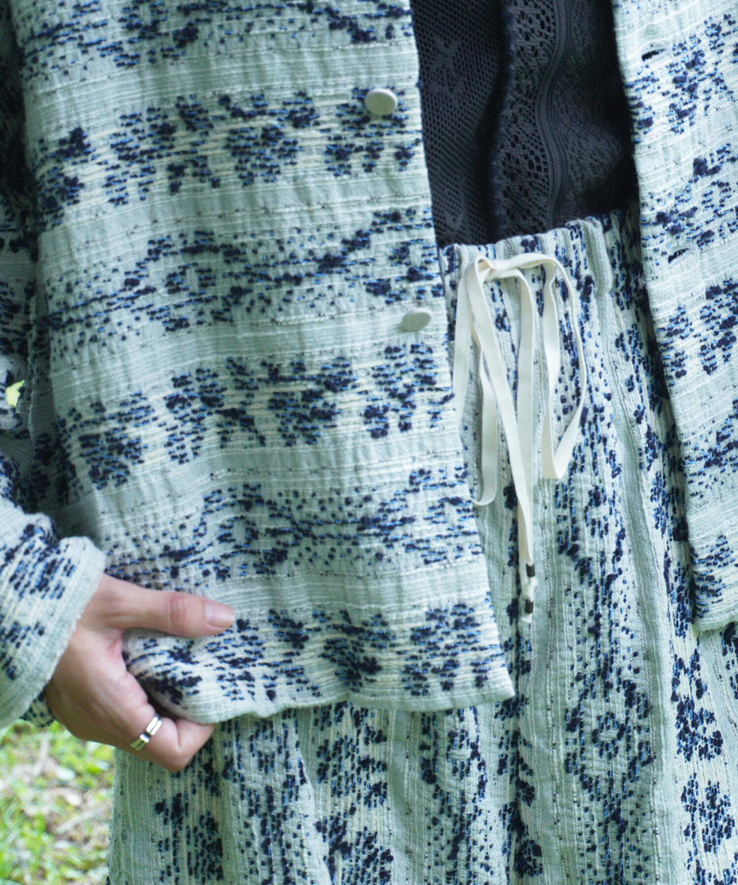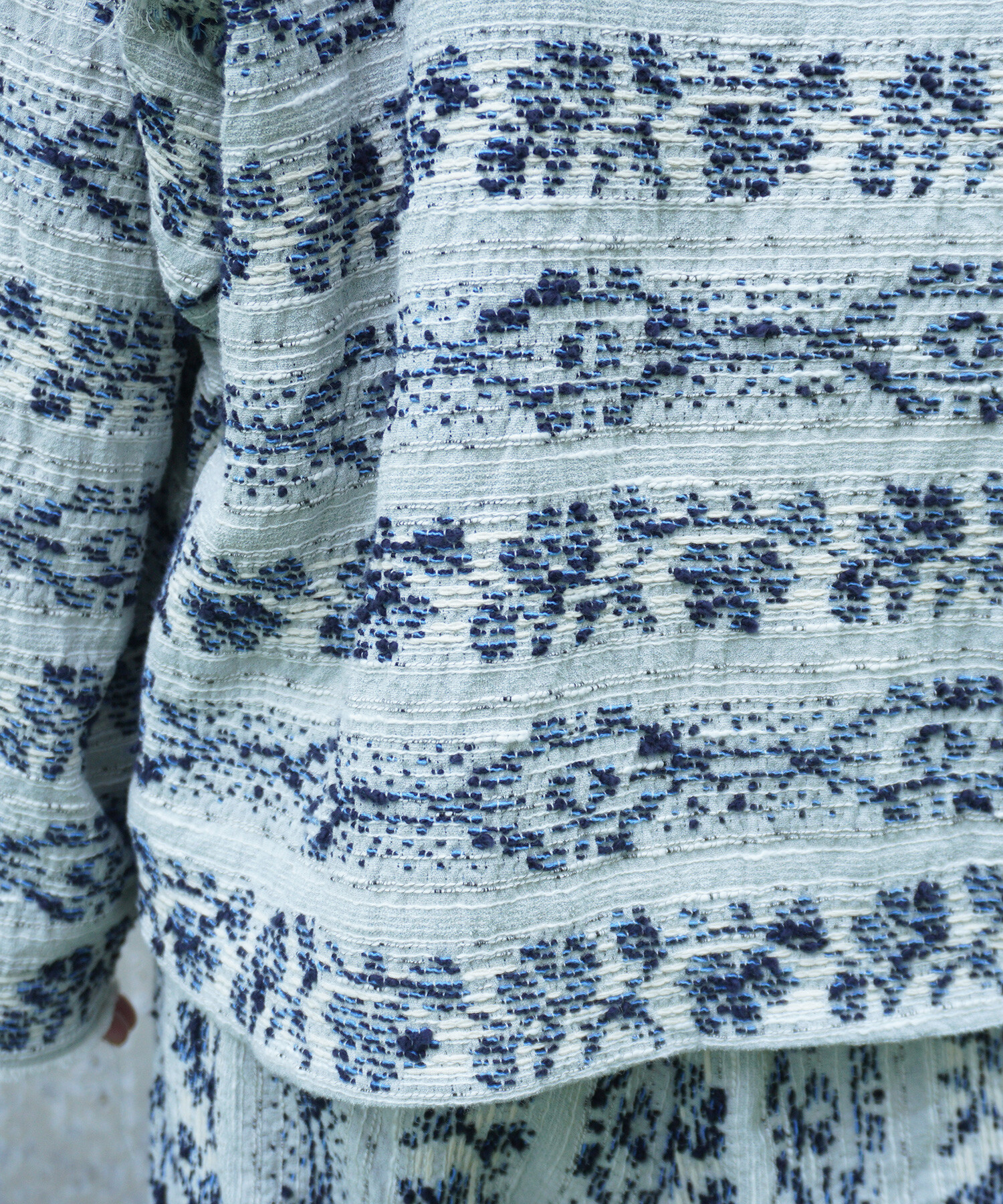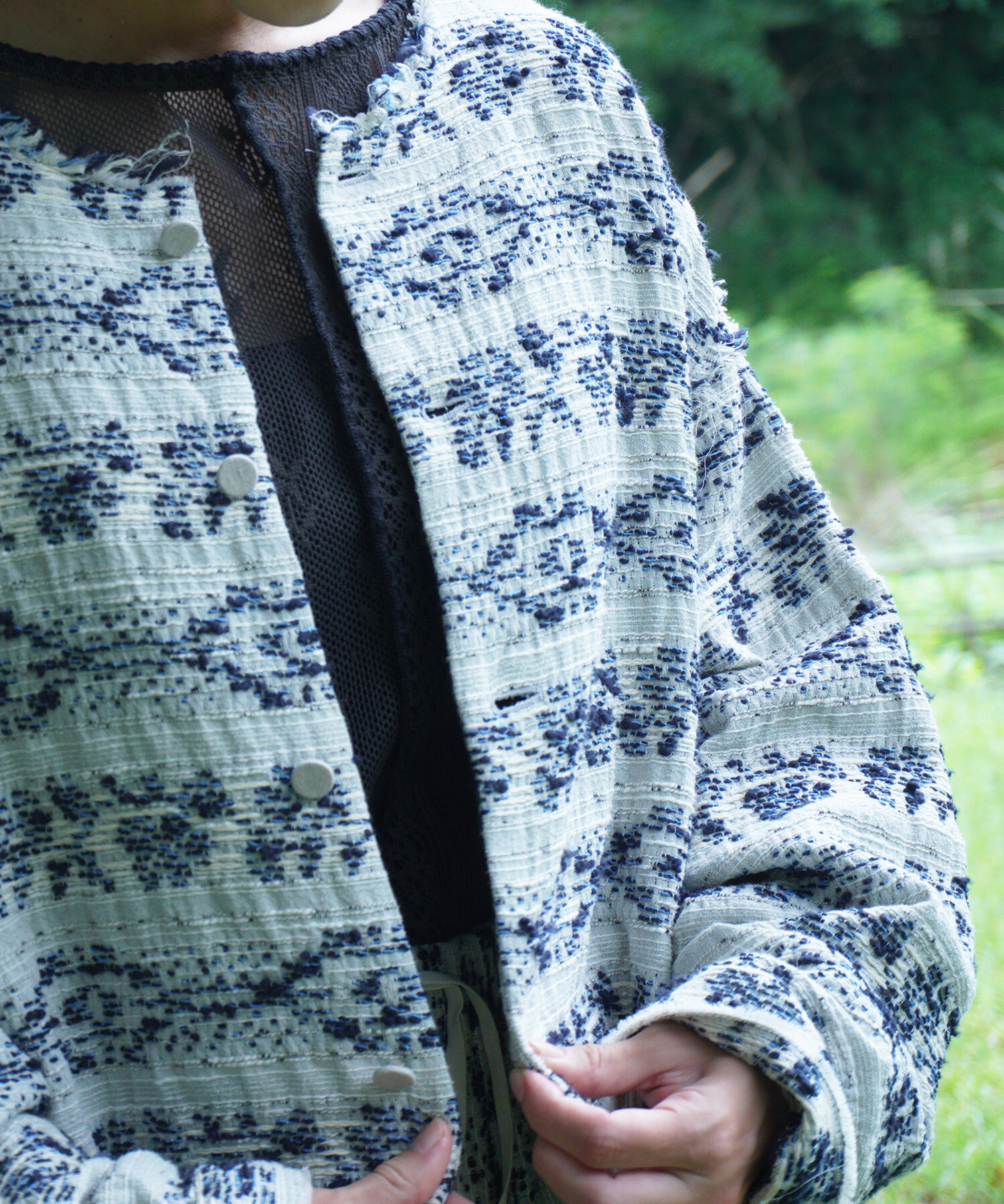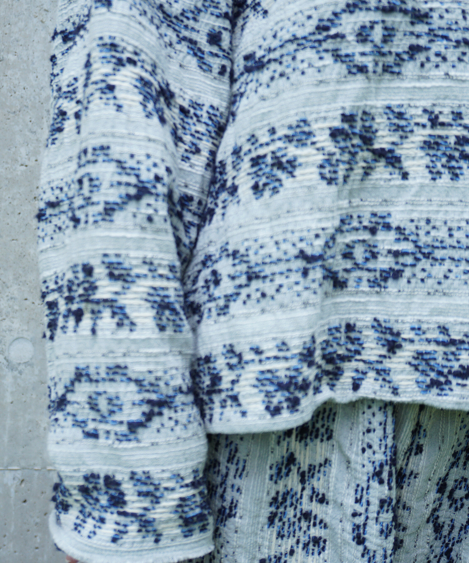 数種類のファンシーヤーンを使用して作ったジャカードのテキスタイル。