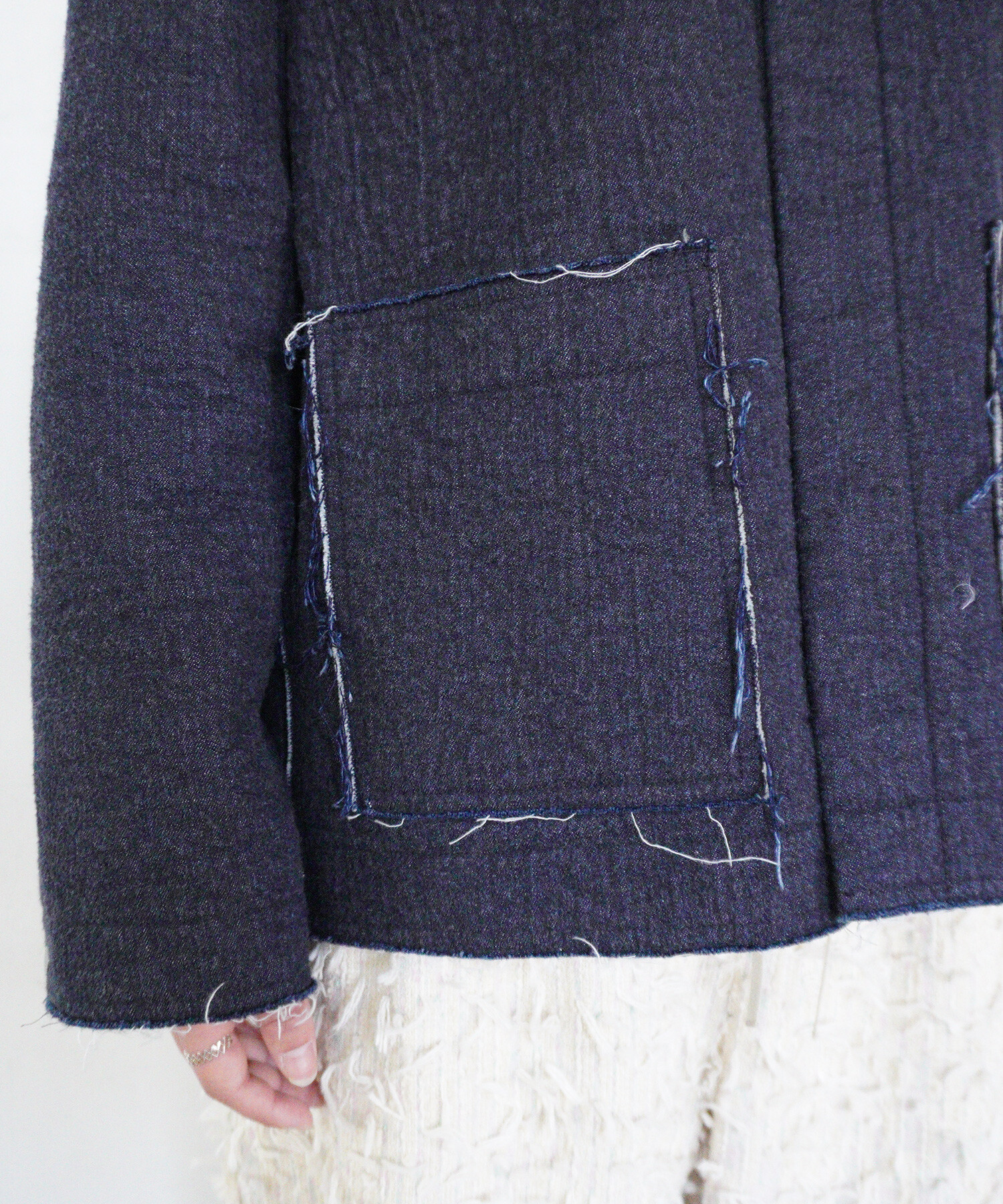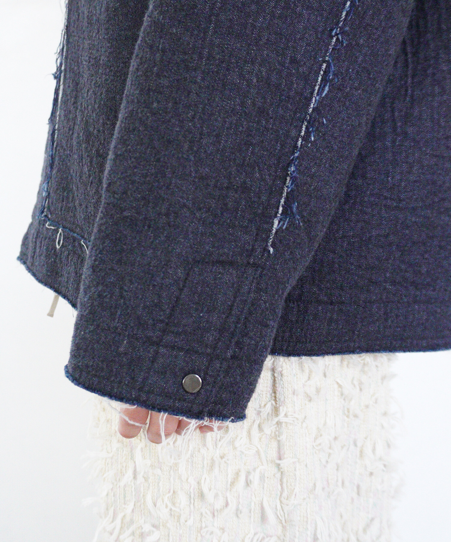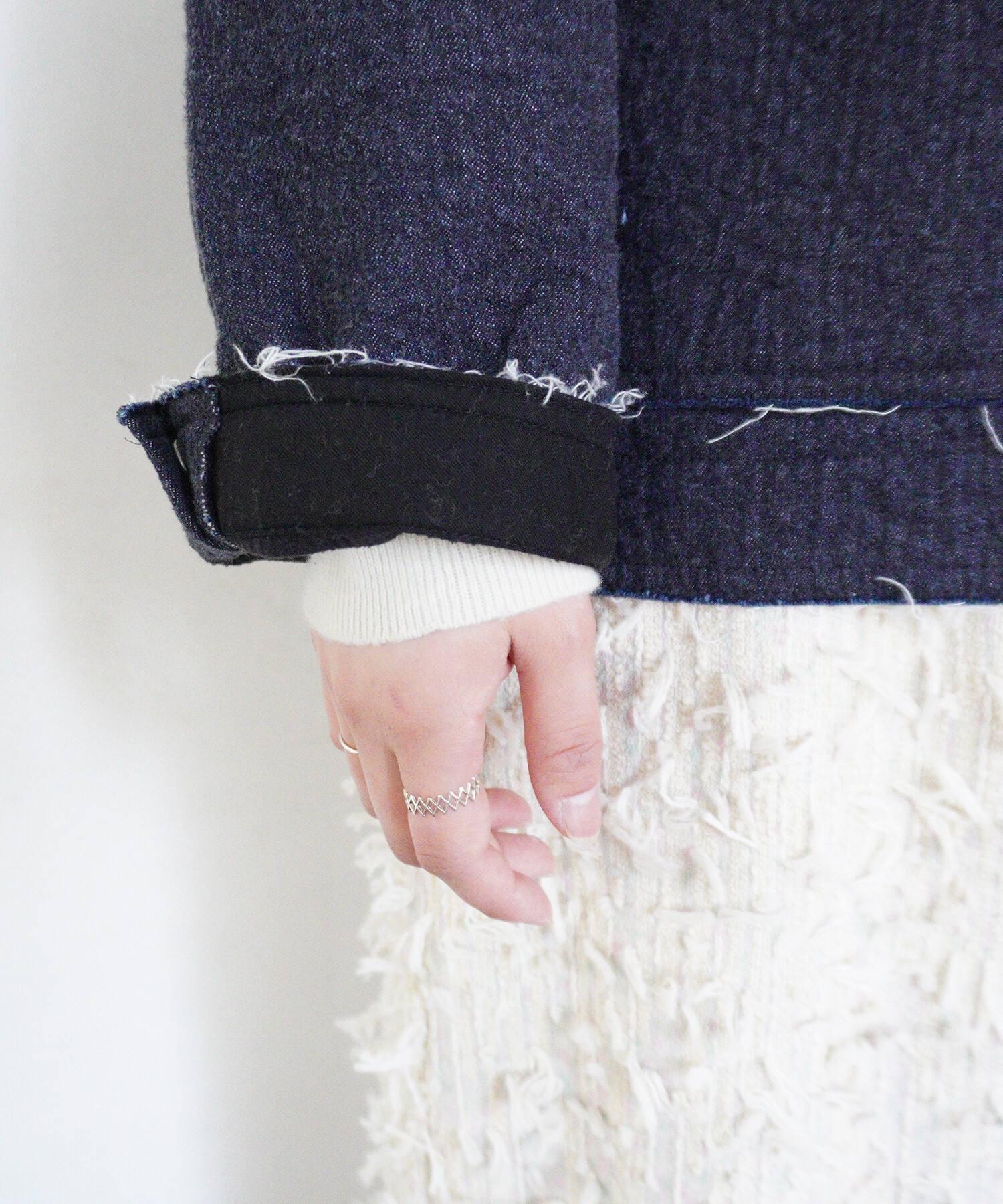 ・この製品の切りっぱなしはデザインです。ほつれの糸が長くなり、気になる方は糸を引っ張らずにハサミ等で丁寧に切り取ってください。