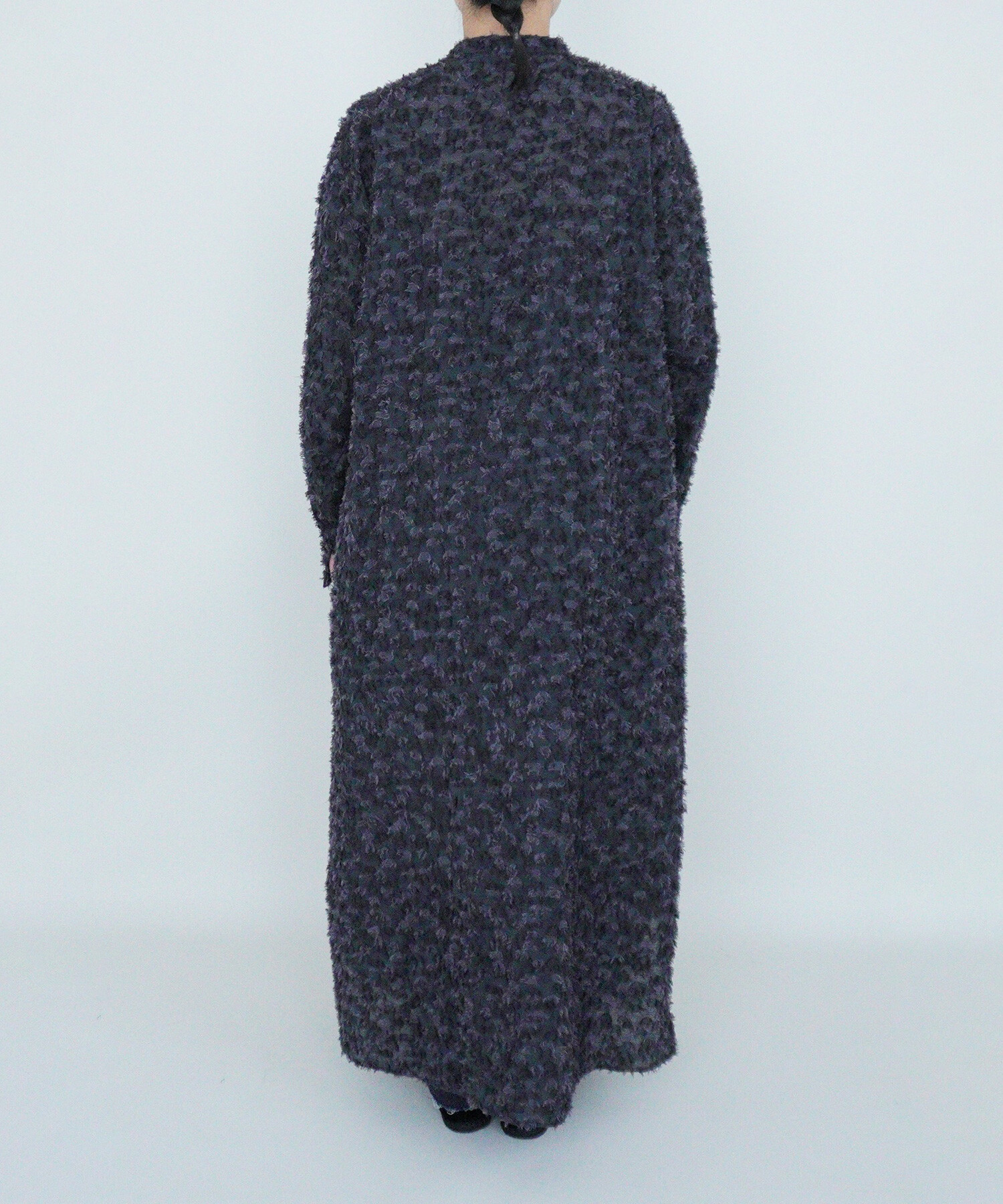 ワンピースはスタンドカラーのシャツワンピース。