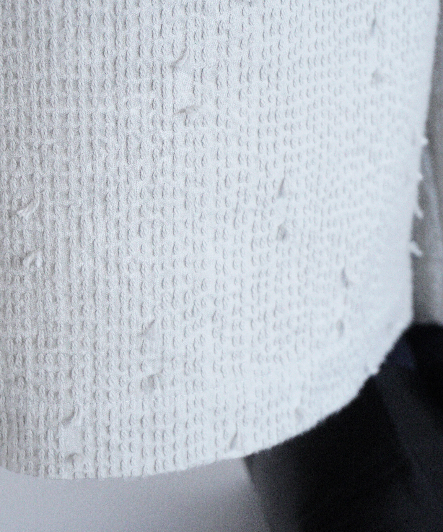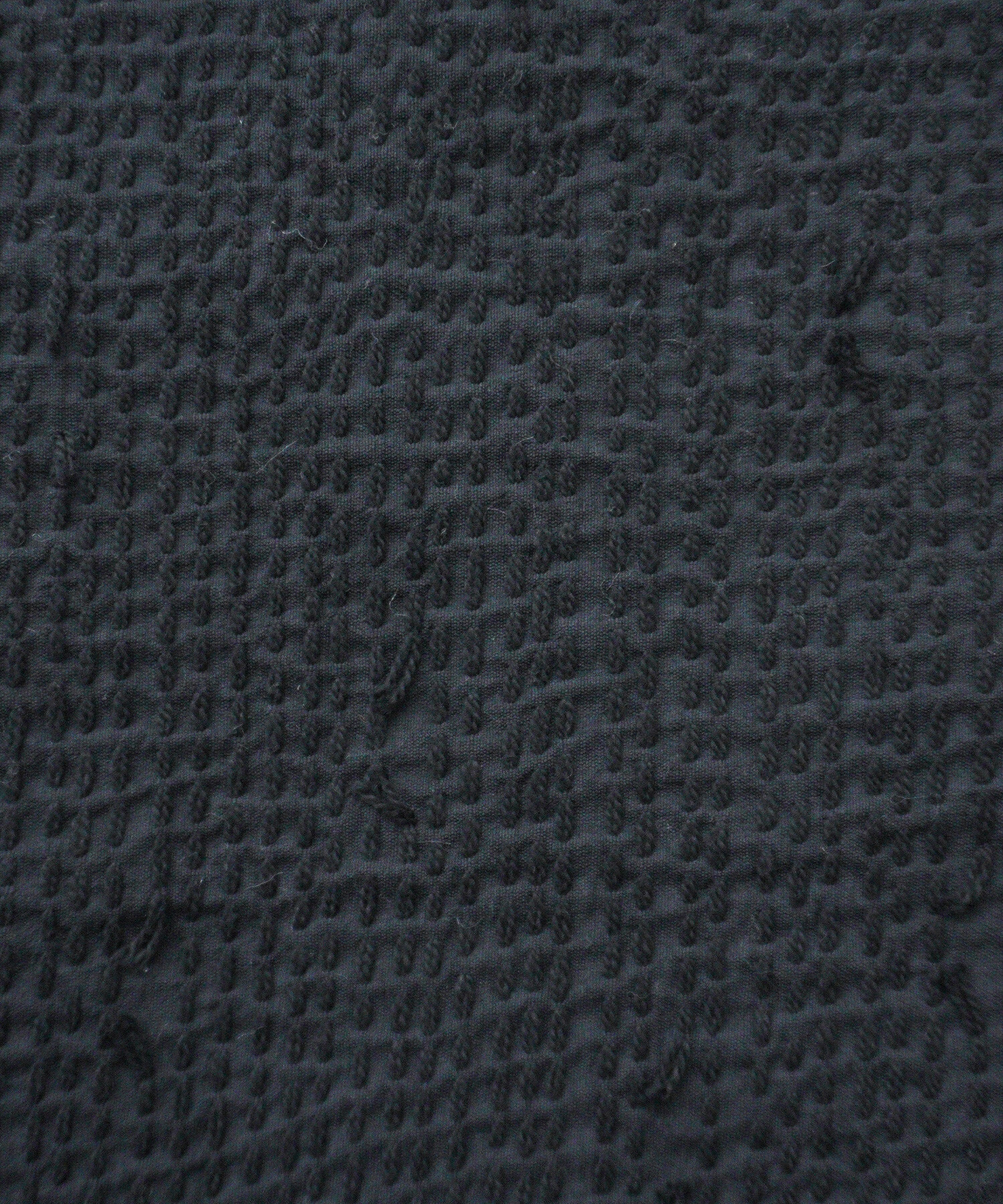 刺し子糸のほつれをあえて柄にして、テキスタイルのアクセントに。