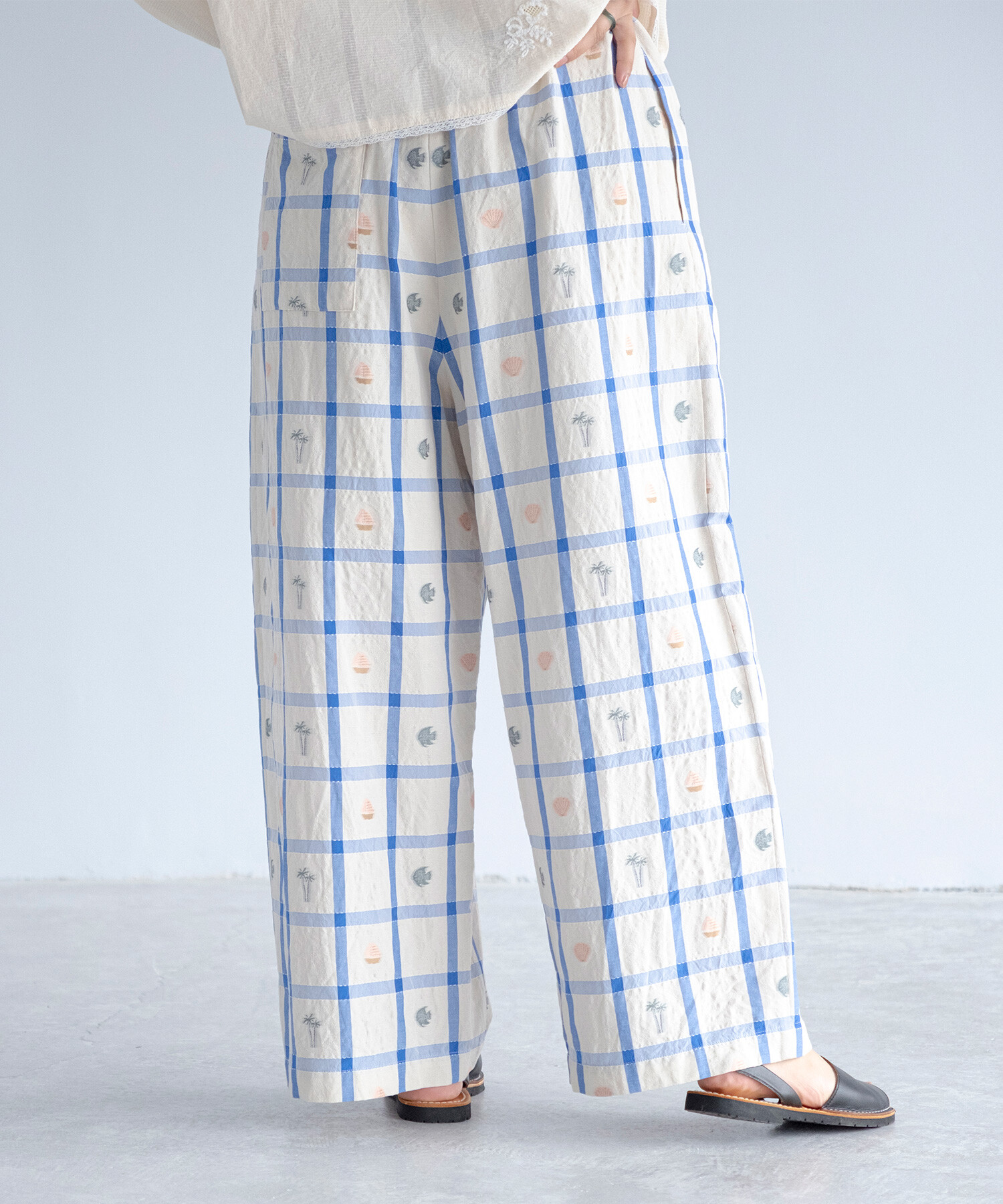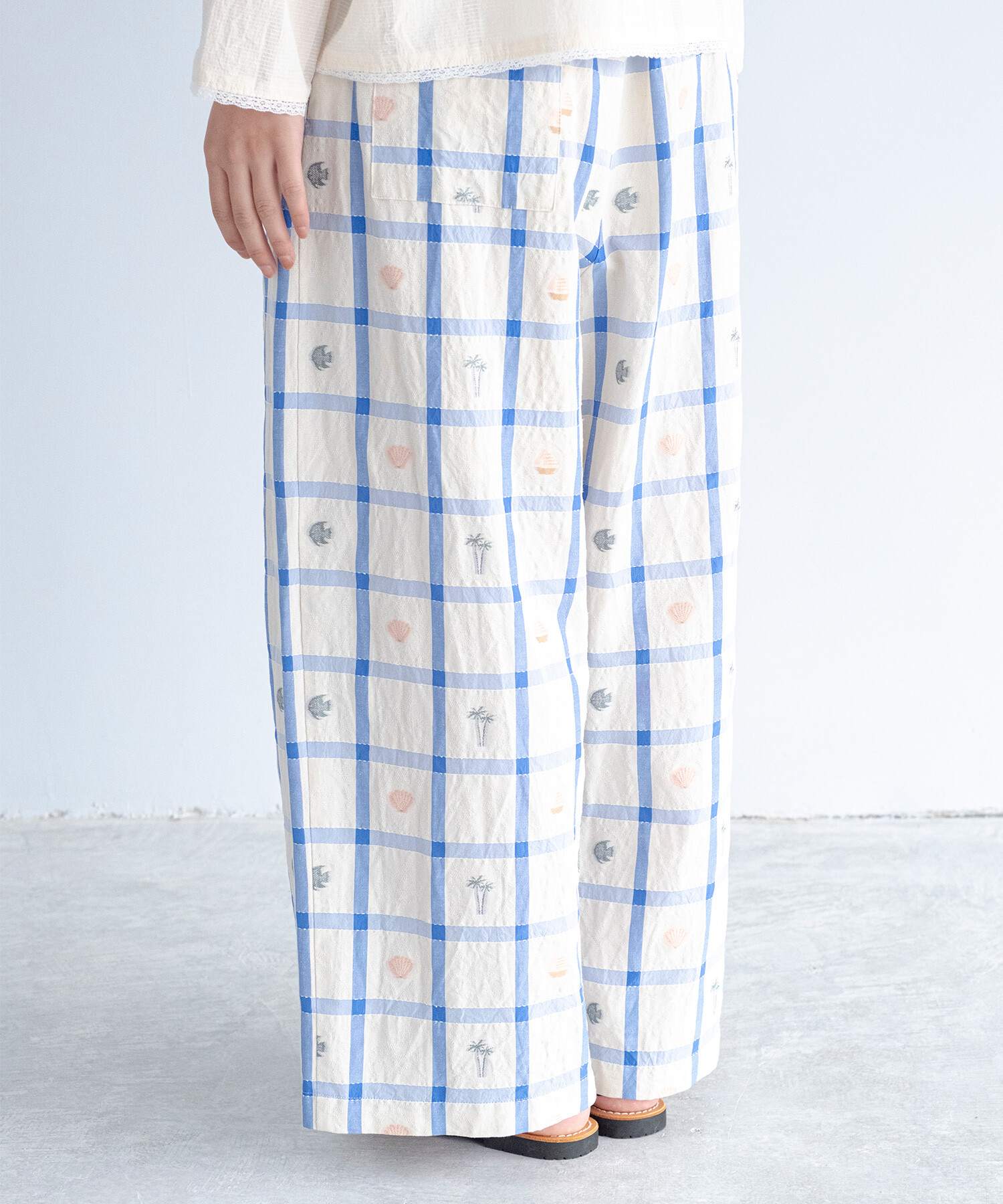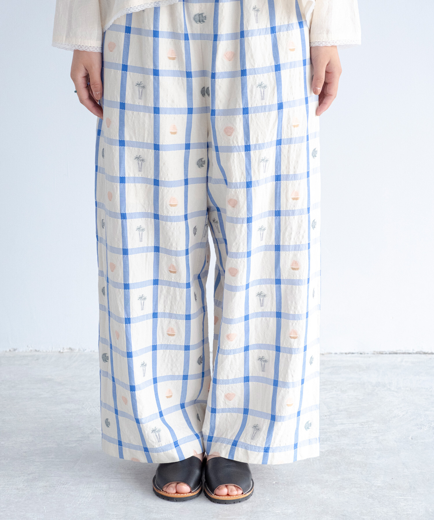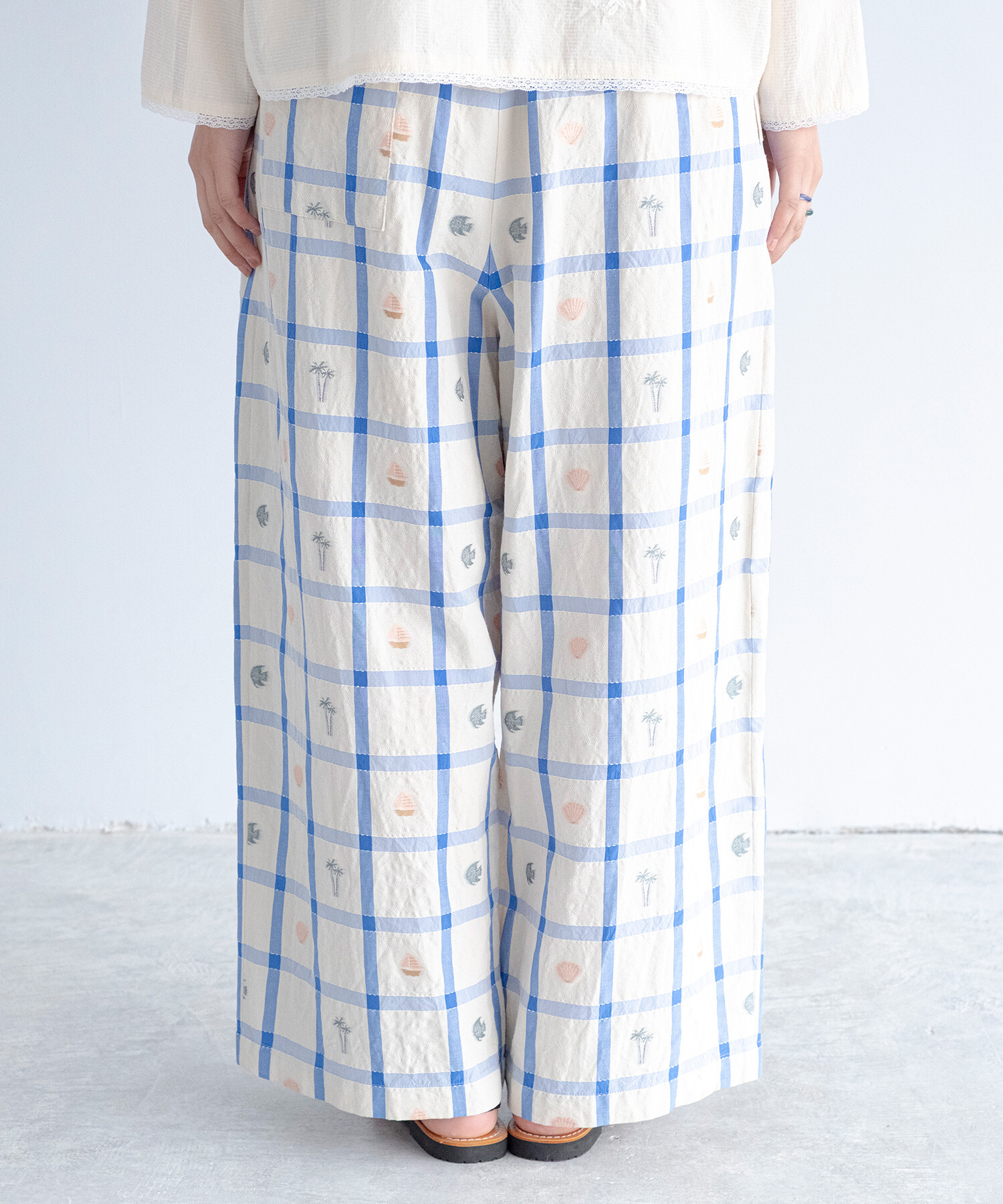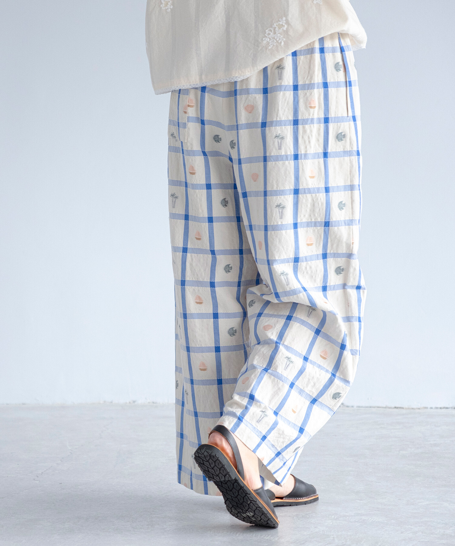 【予約販売】〇marine check ギャザーパンツ