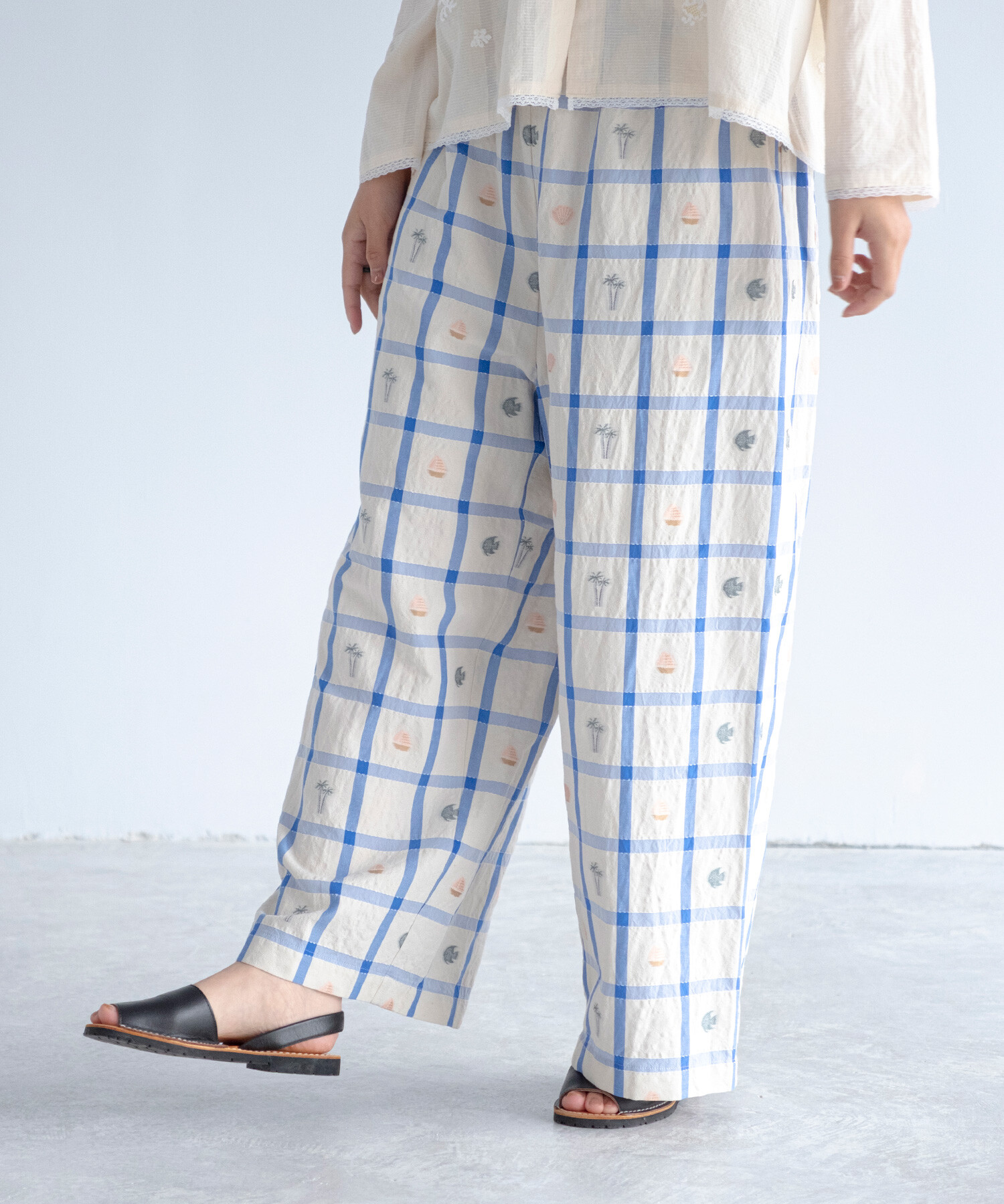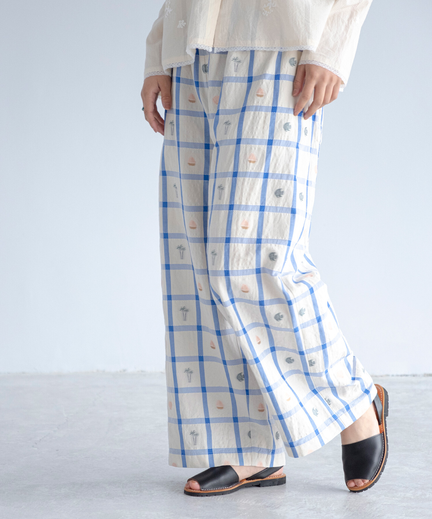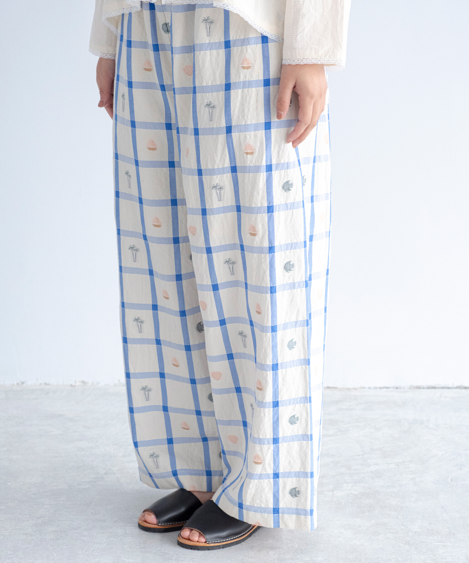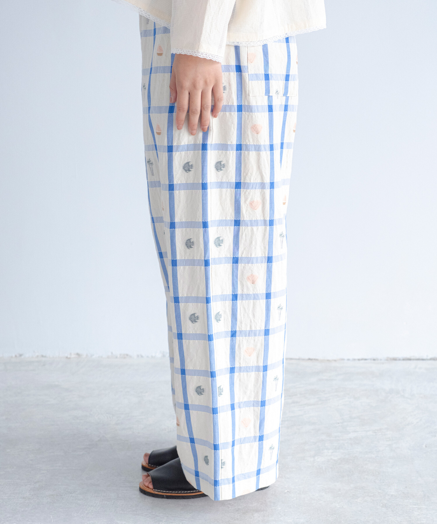 【予約販売】〇marine check ギャザーパンツ