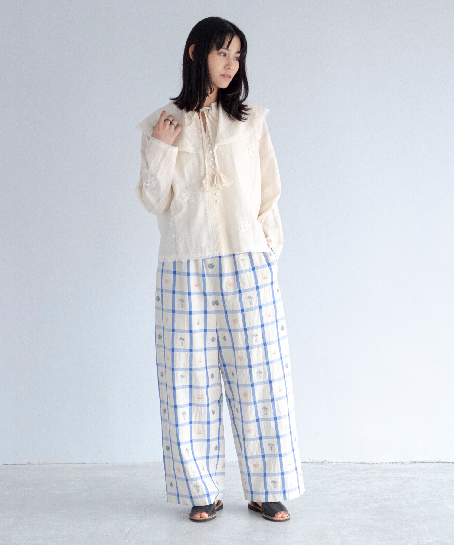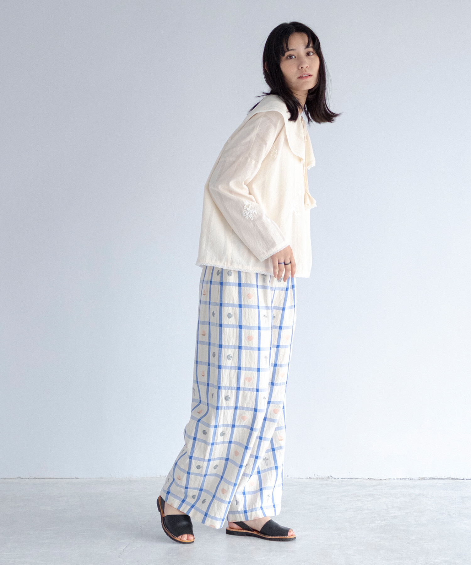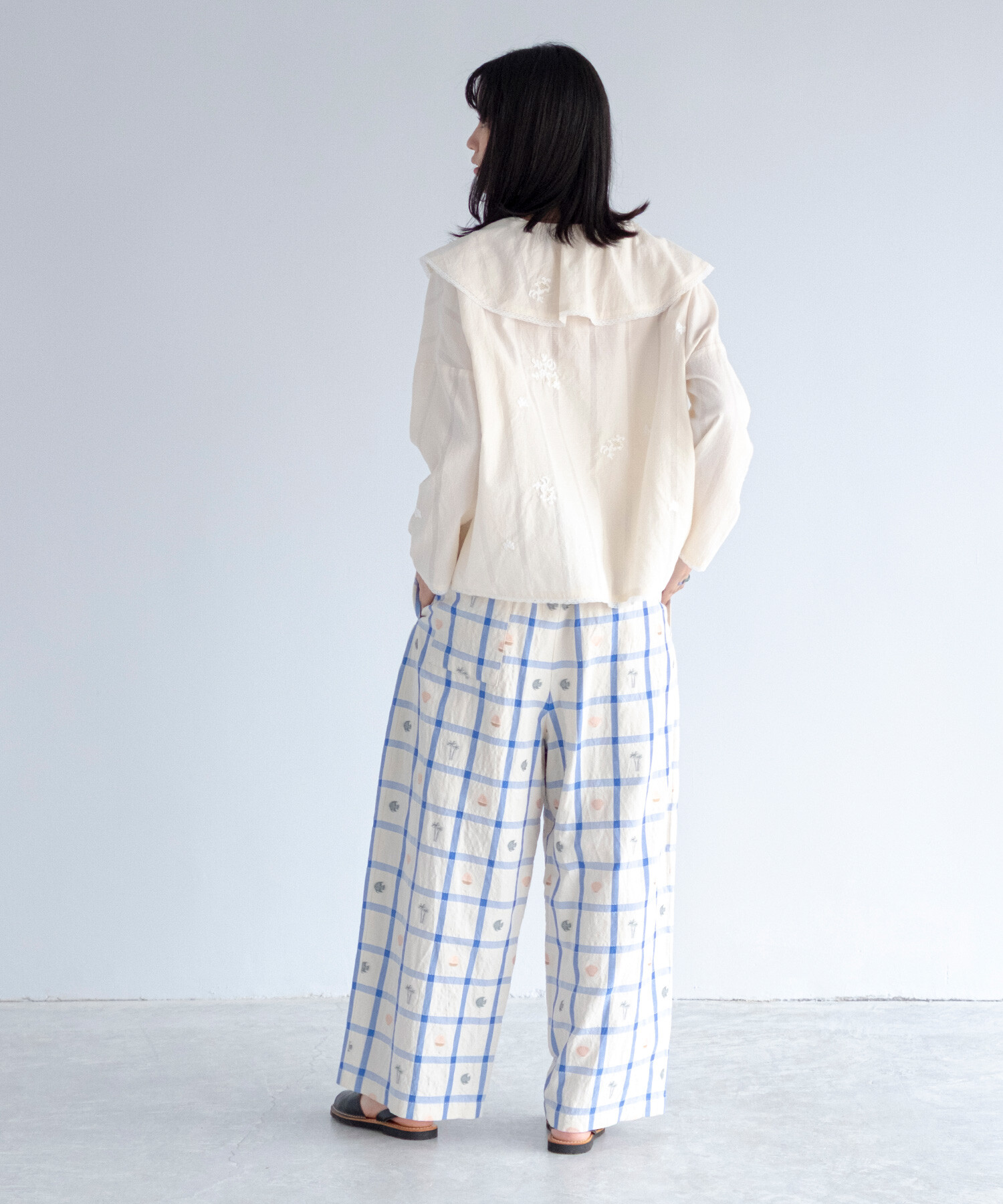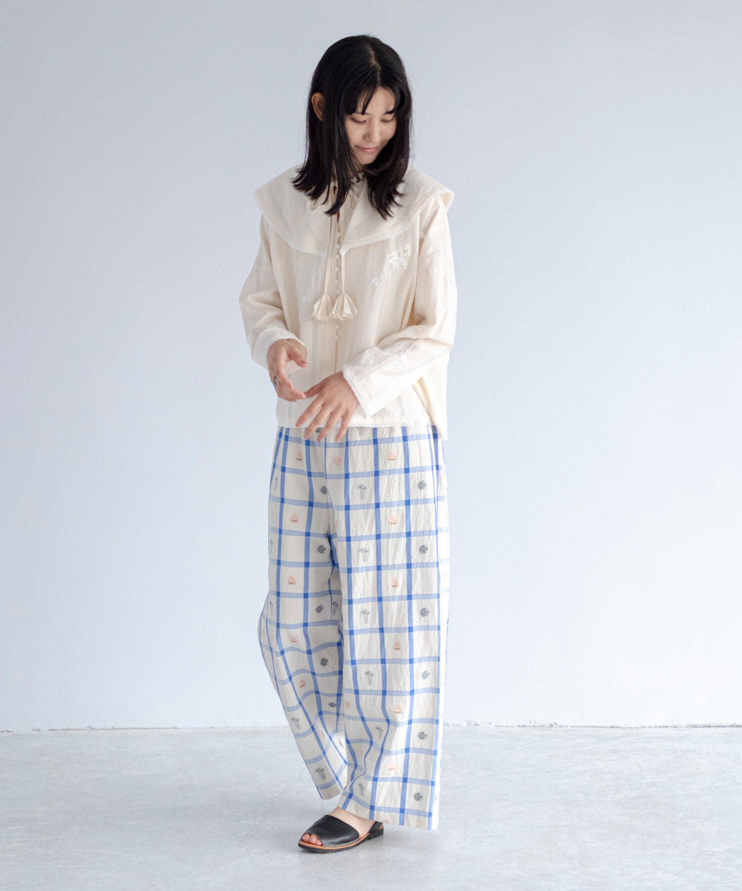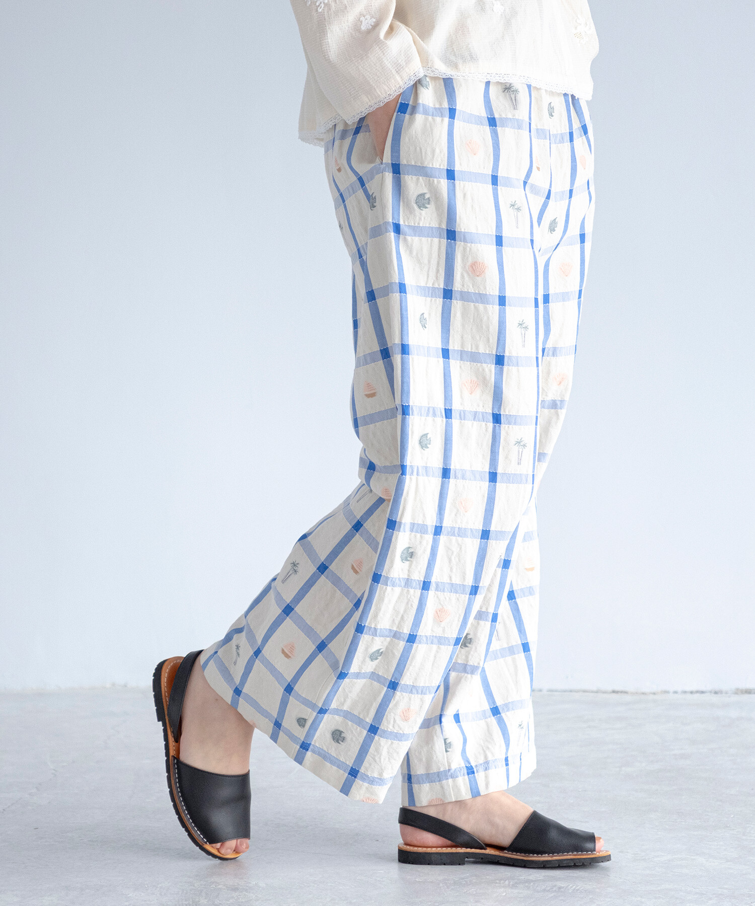 【予約販売】〇marine check ギャザーパンツ
