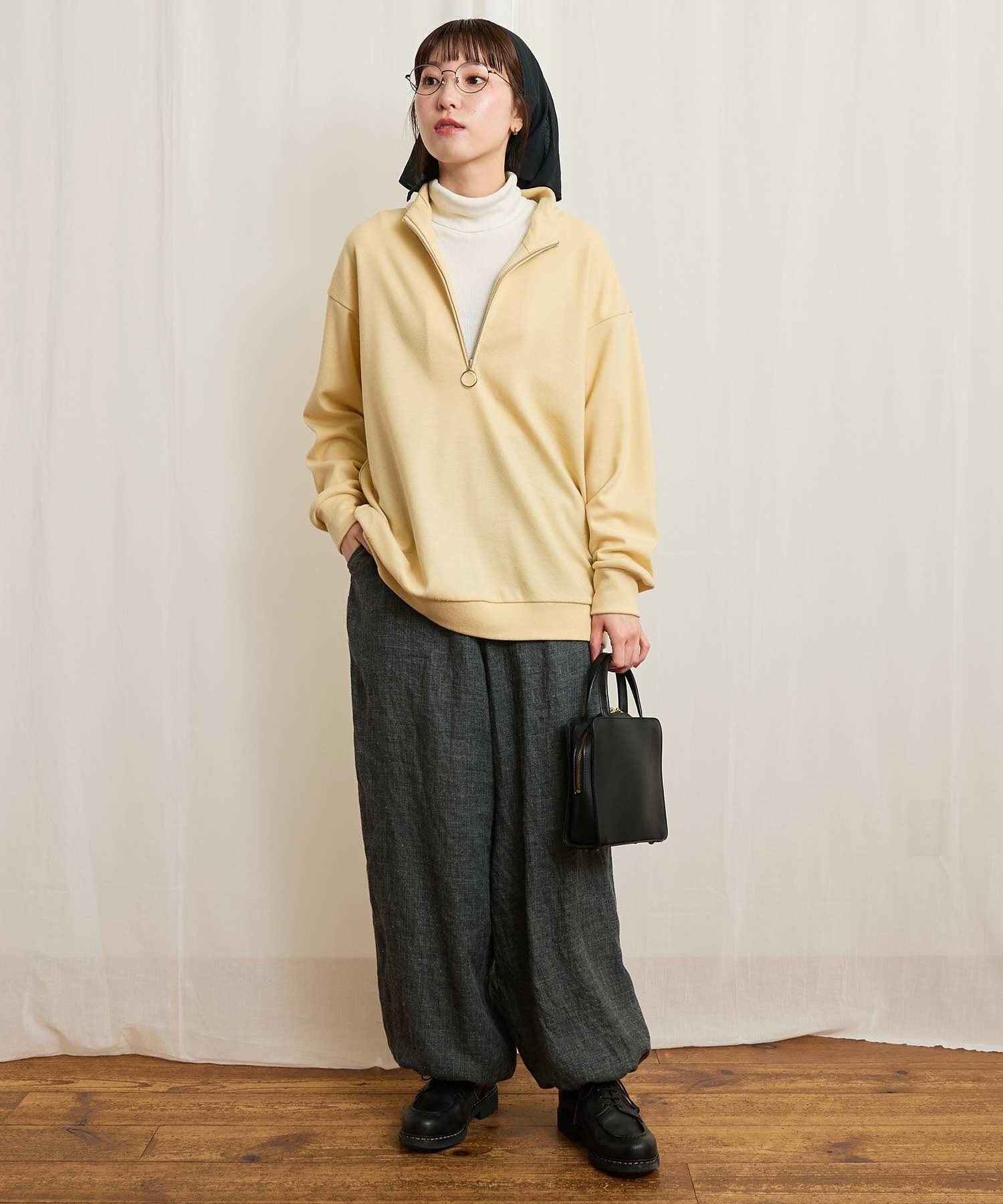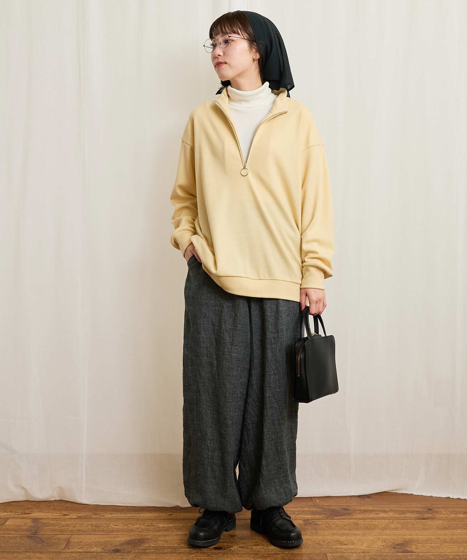 ・この製品は、素材風合いの性質上、着用の際毛羽の細かなもつれが絡み合いピリング(毛玉)が発生する場合があります。