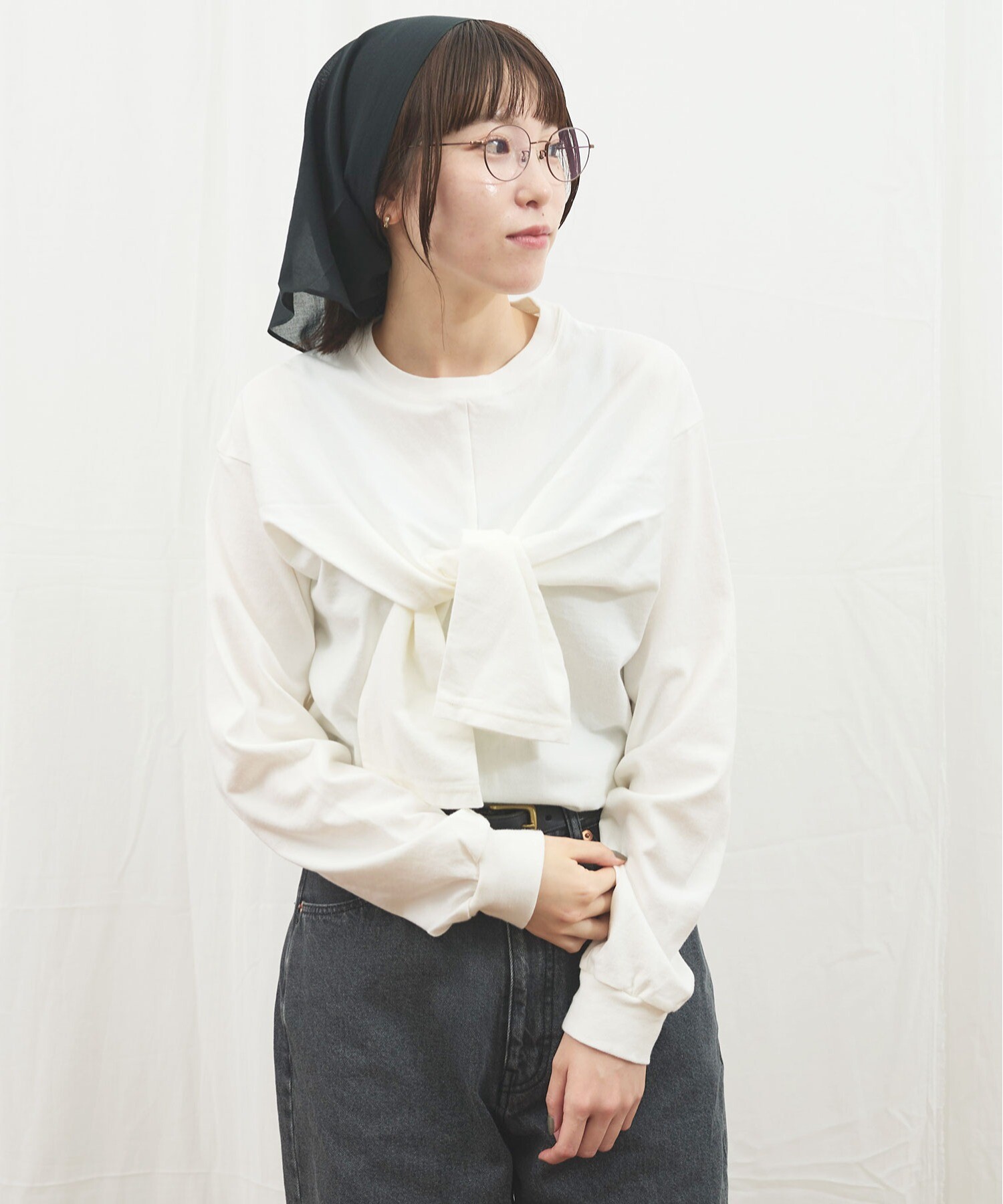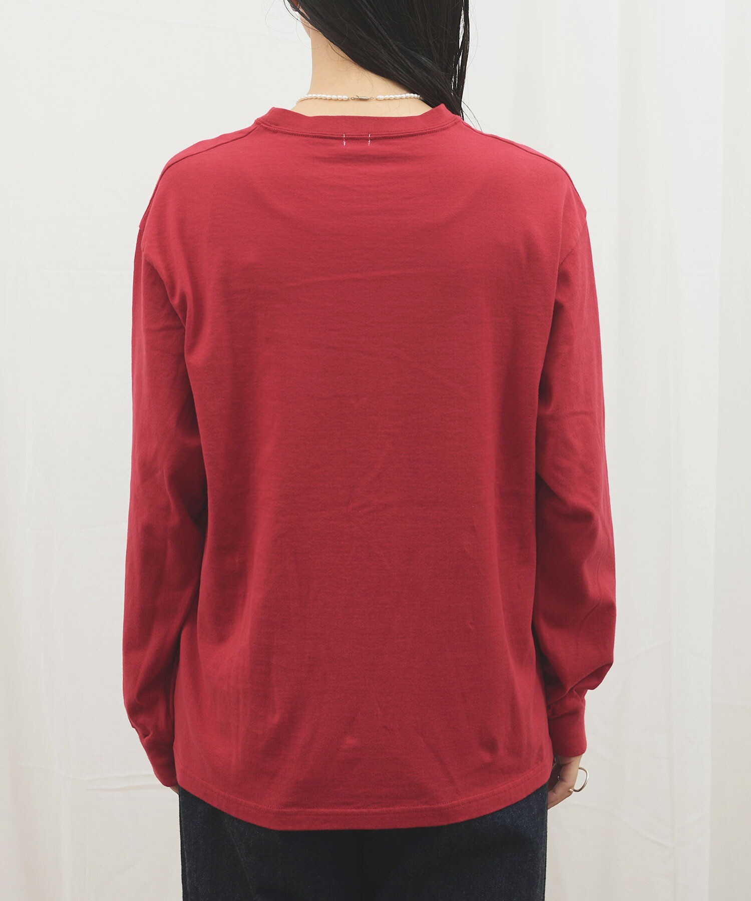 無地のロンTのように合わせやすく、シンプルな装いのポイントになります。