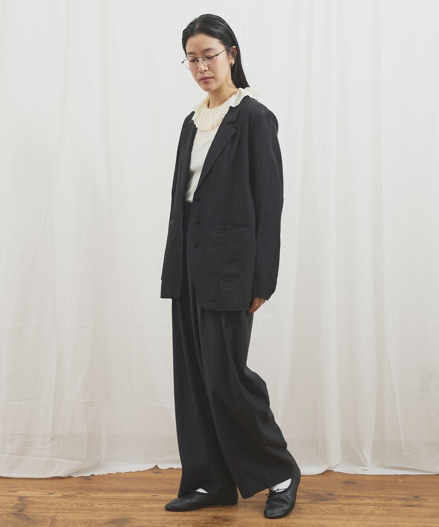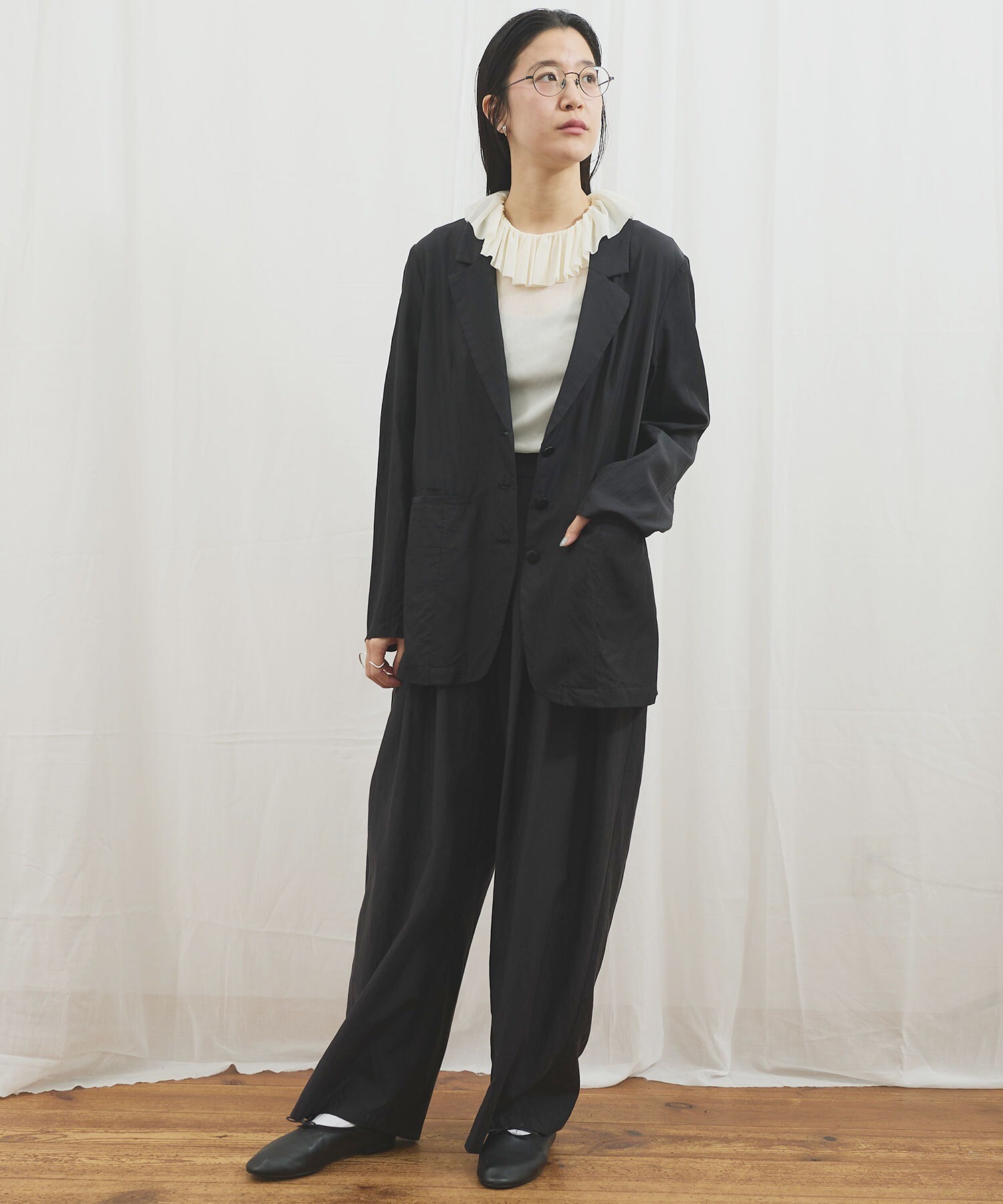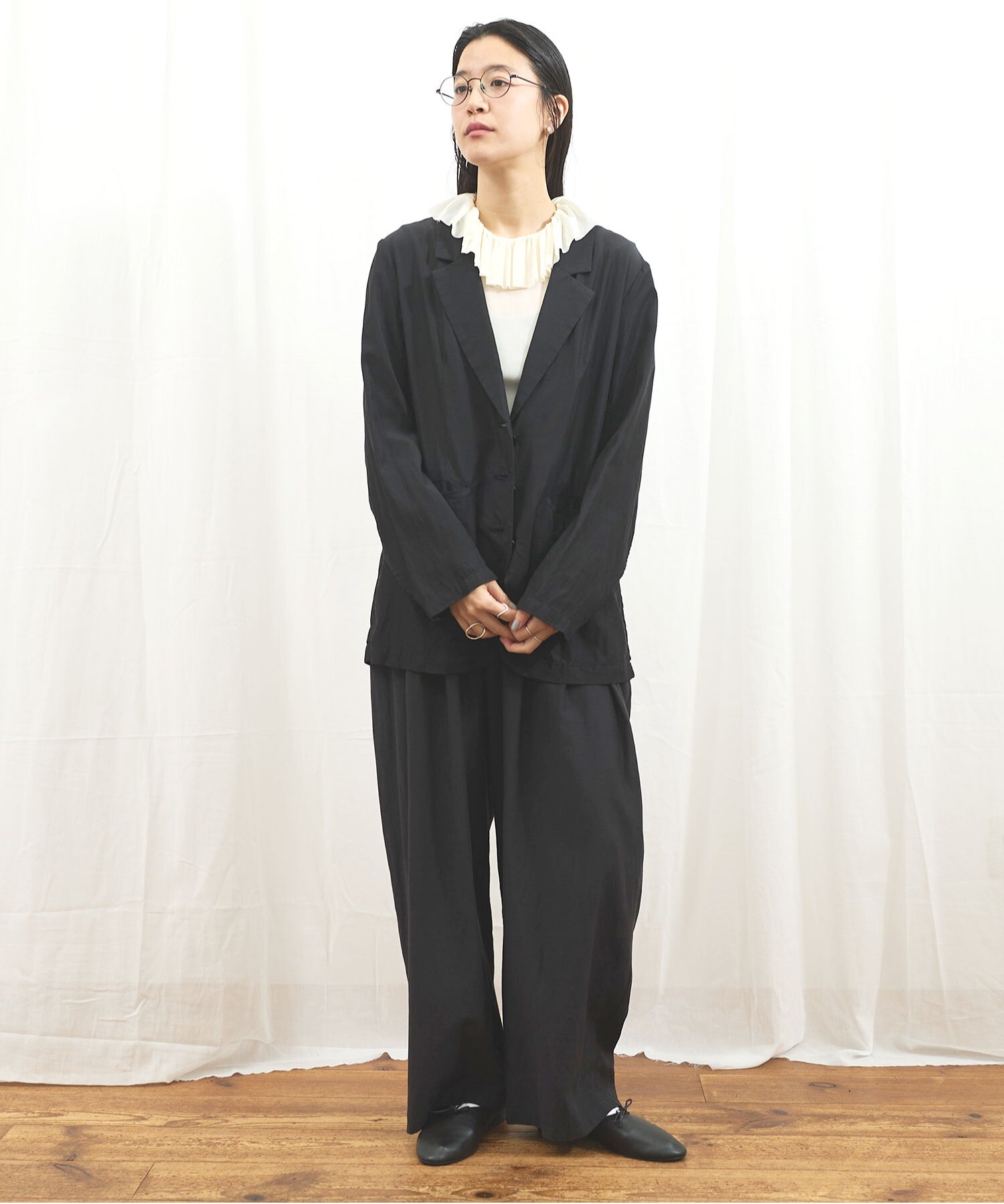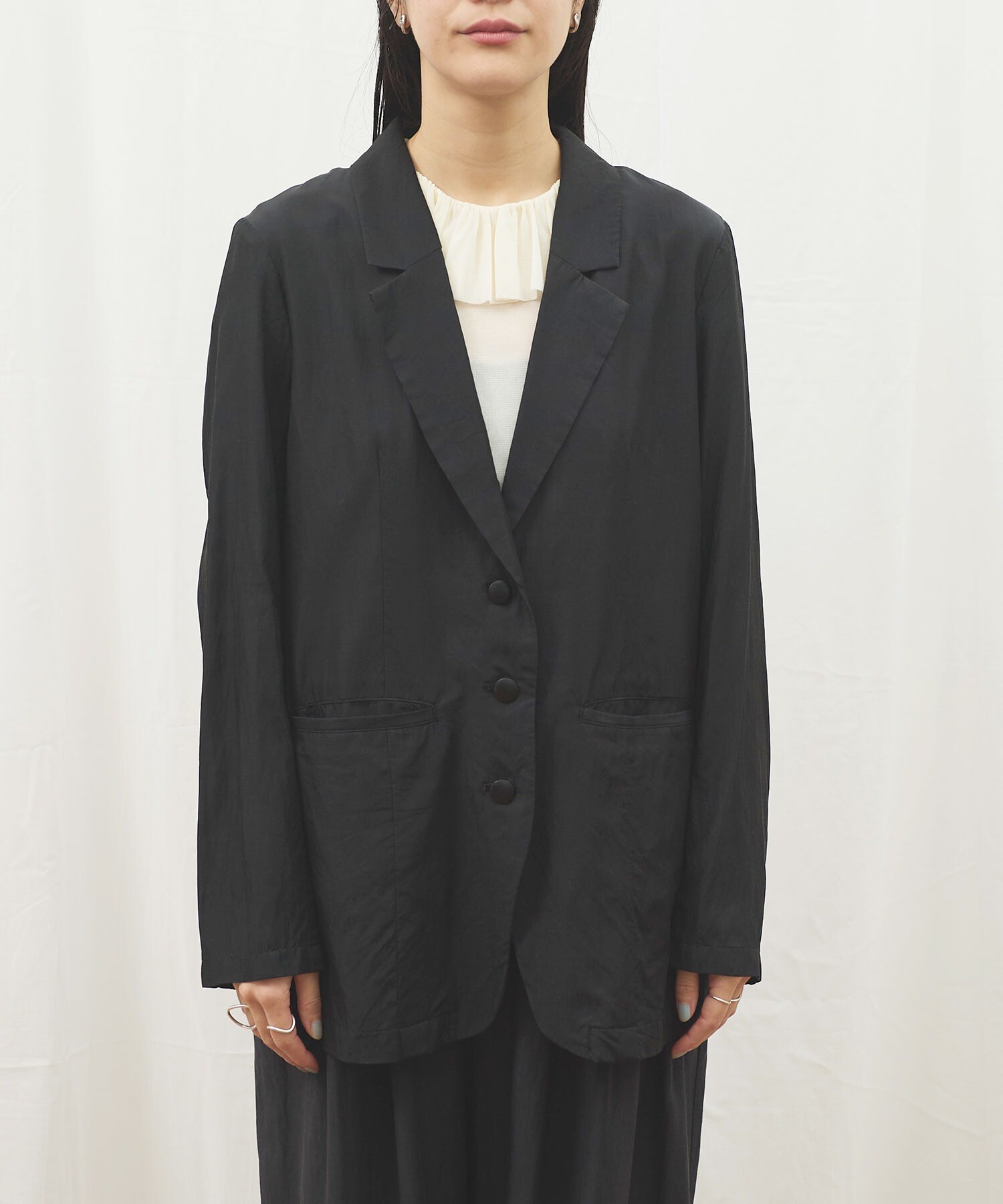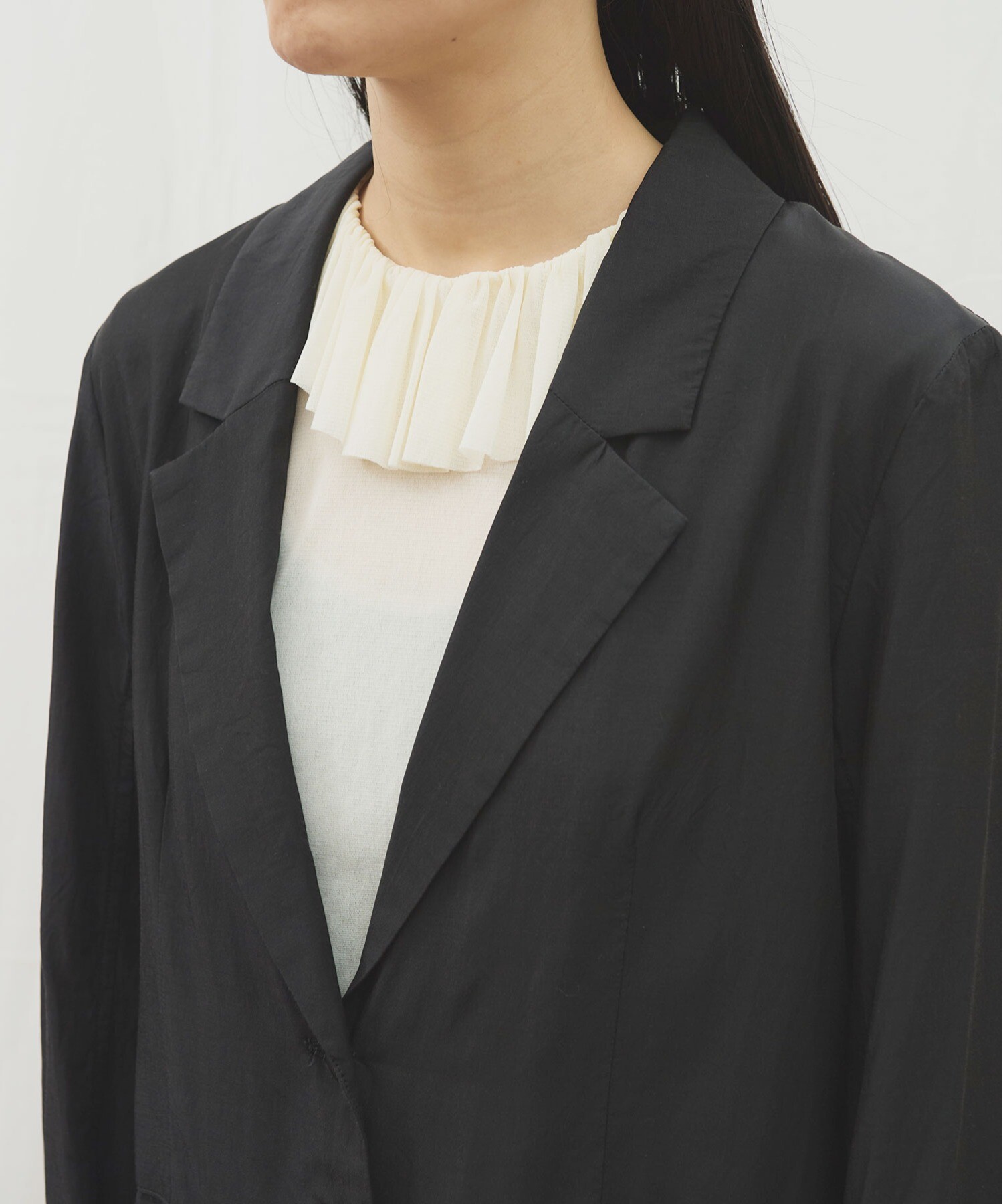 きりりとした雰囲気ではあるものの、肌触りがさらりとしていて軽く、まるでシャツのように日常で着たくなる1枚です。
